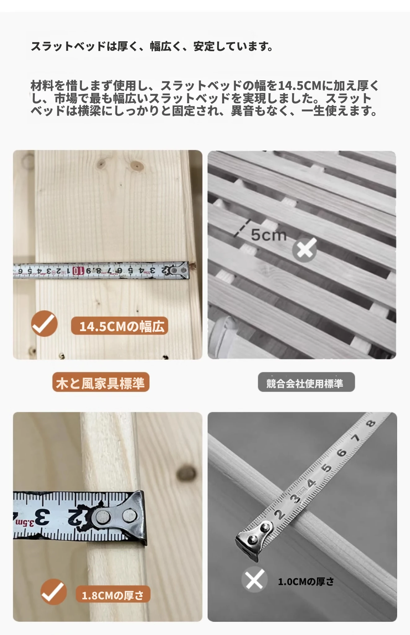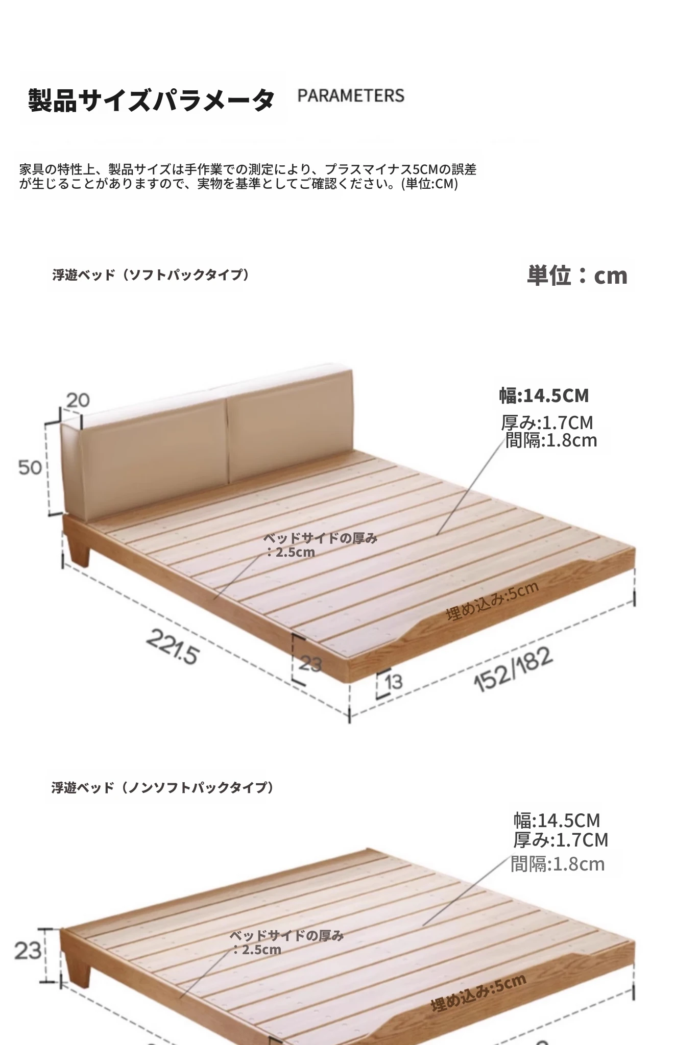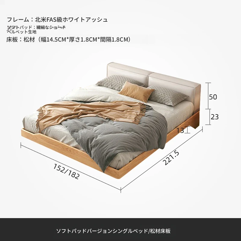 アッシュ材ベッド ソフトパックなし(2cm厚松材プランク)【70%の人が選択】
