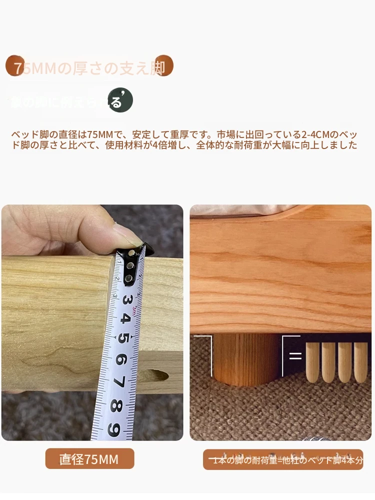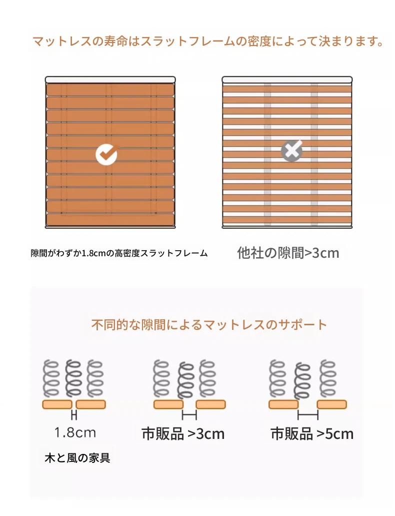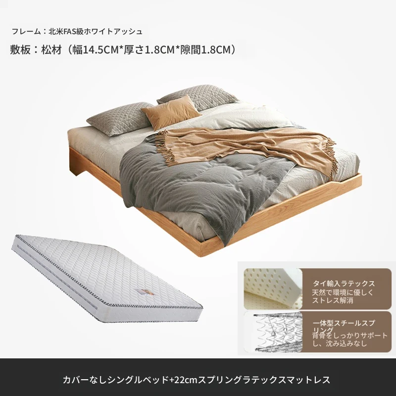 アッシュ材ベッド ソフトパックなし(2cm厚ブナ材プランク)+22cmラテックススプリングマットレス