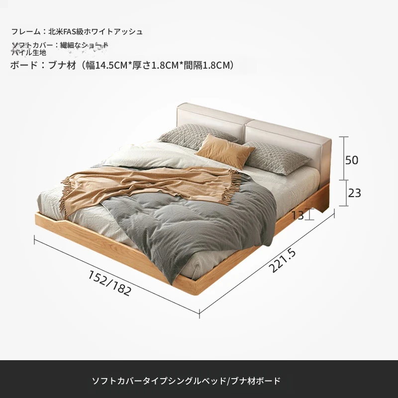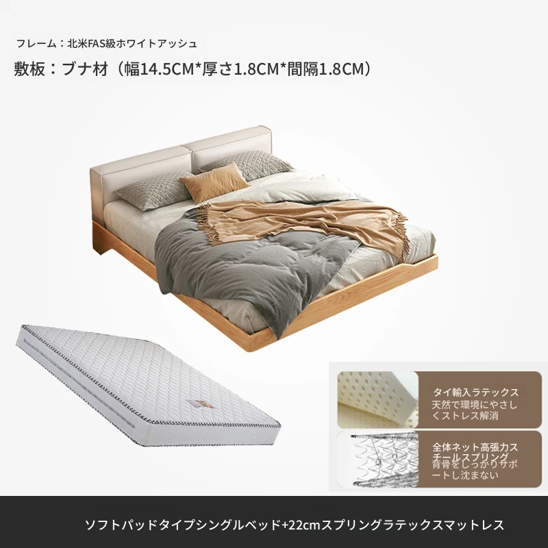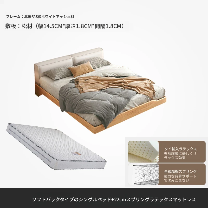 アッシュ材ベッド ソフトパック付き(2cm厚ブナ材プランク)+22cmラテックススプリングマットレス