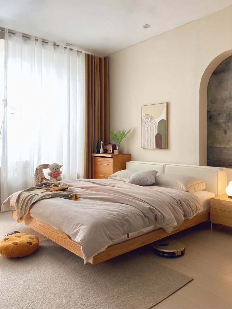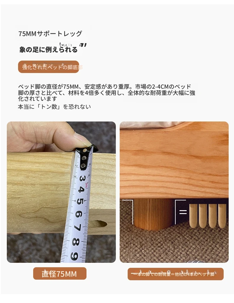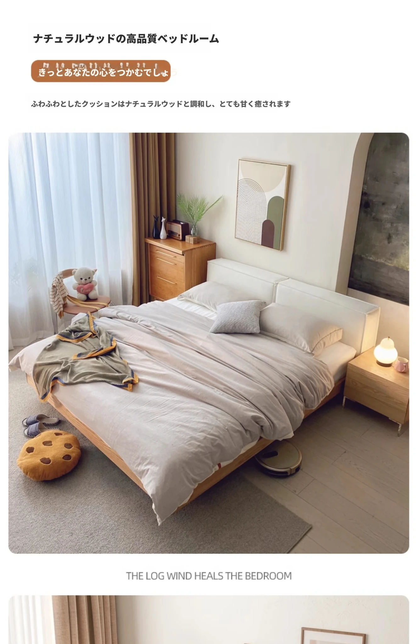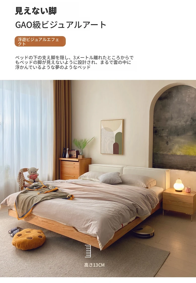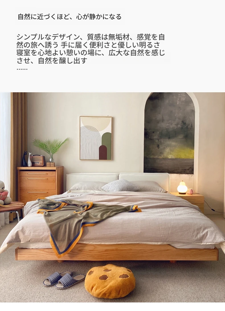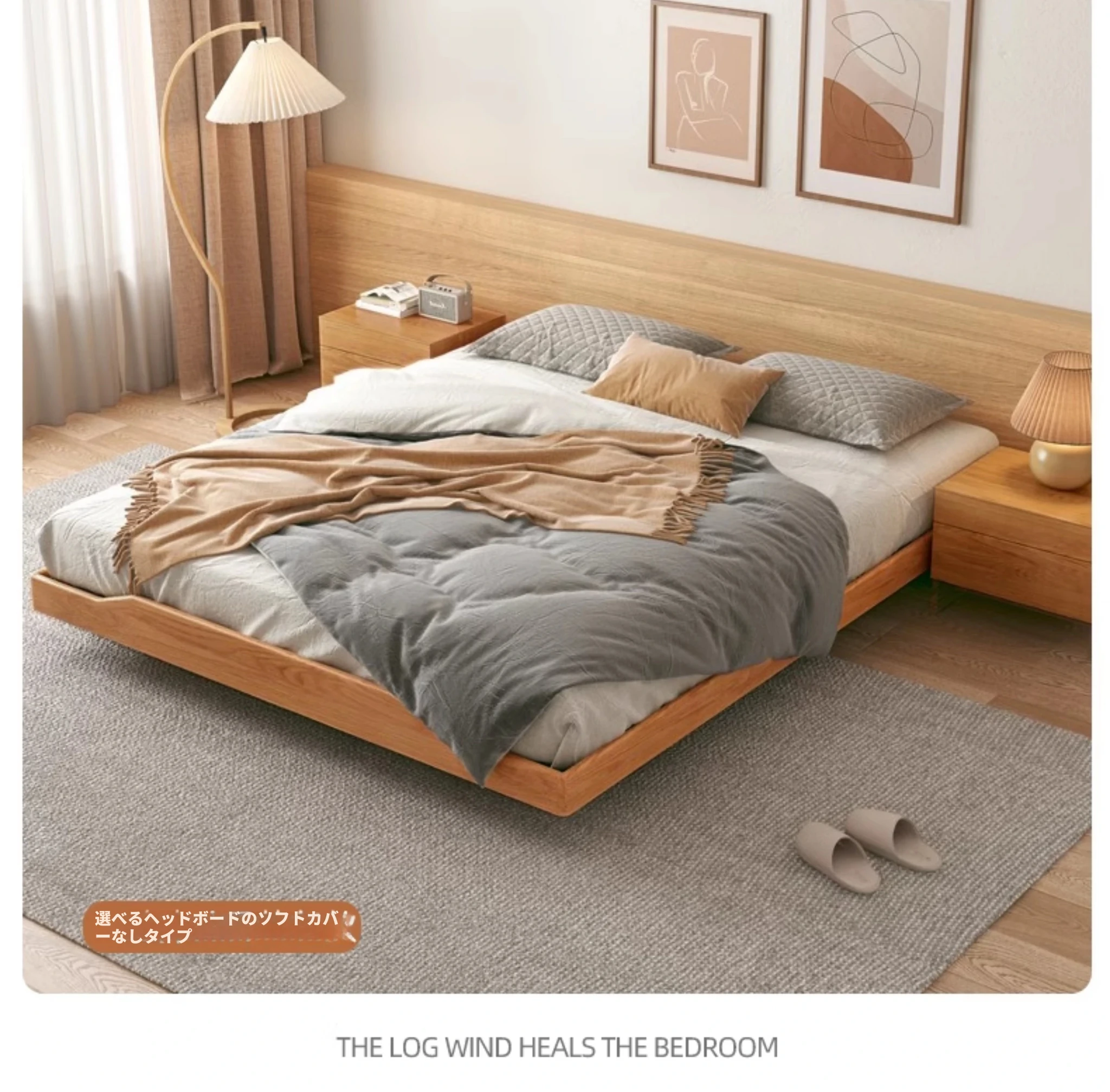 和風天然木タタミ風豆腐ブロック:侘寂風民宿向け小型主寝室の無垢材ベッド、ソフトパッド付き浮遊式フロアベッド - 日本の美を融合したデザイン、心を癒す快適空間を実現!