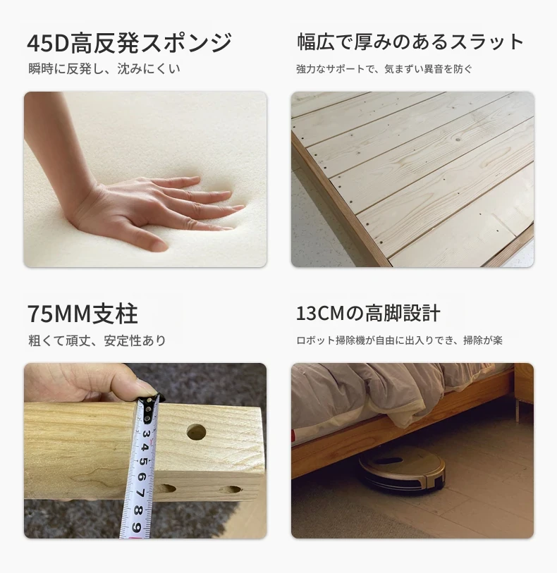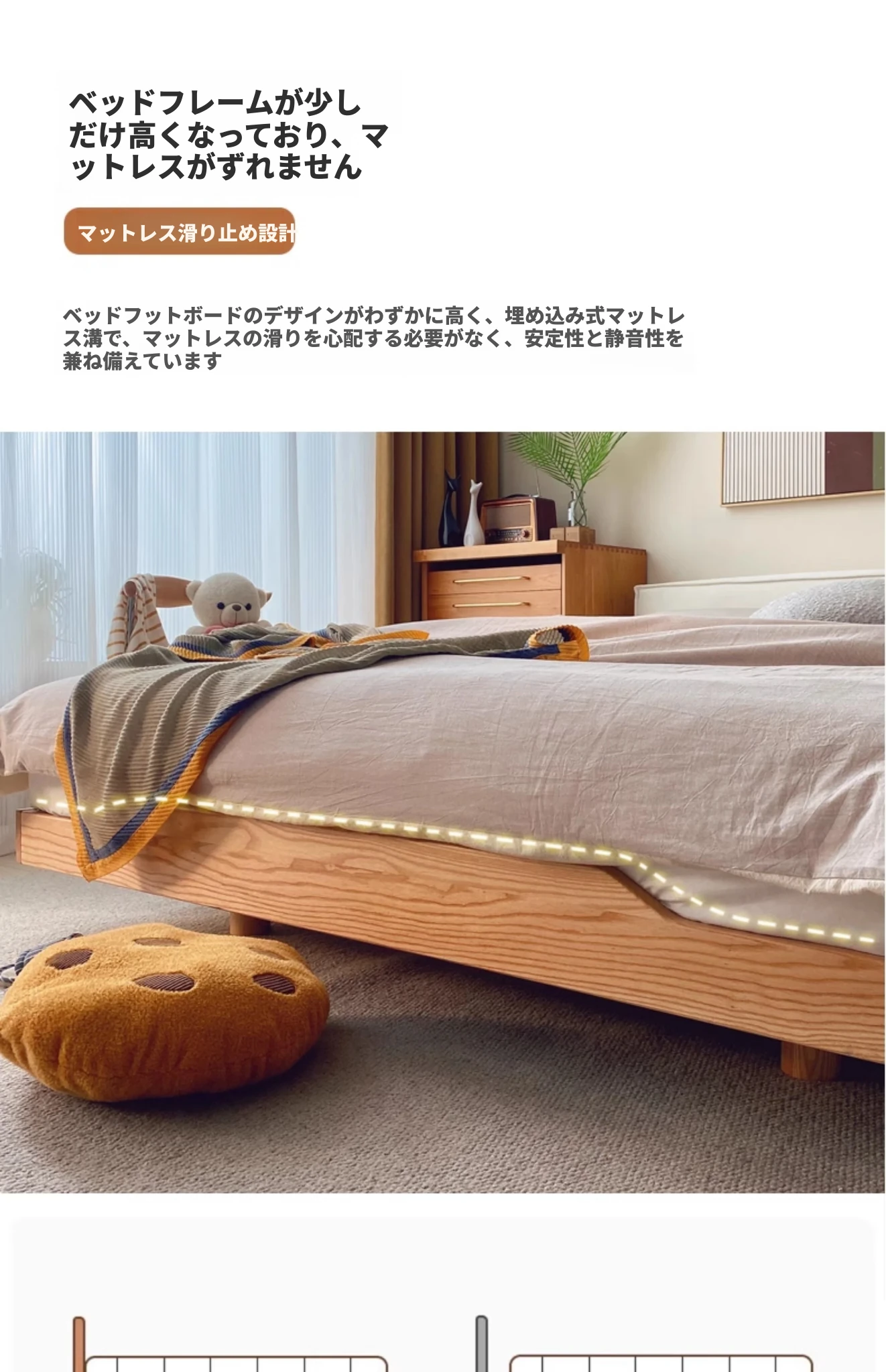 アッシュ材ベッド ソフトパックなし(2cm厚松材プランク)+22cmラテックススプリングマットレス