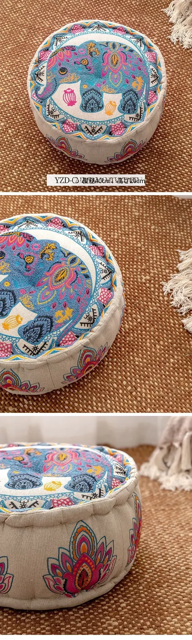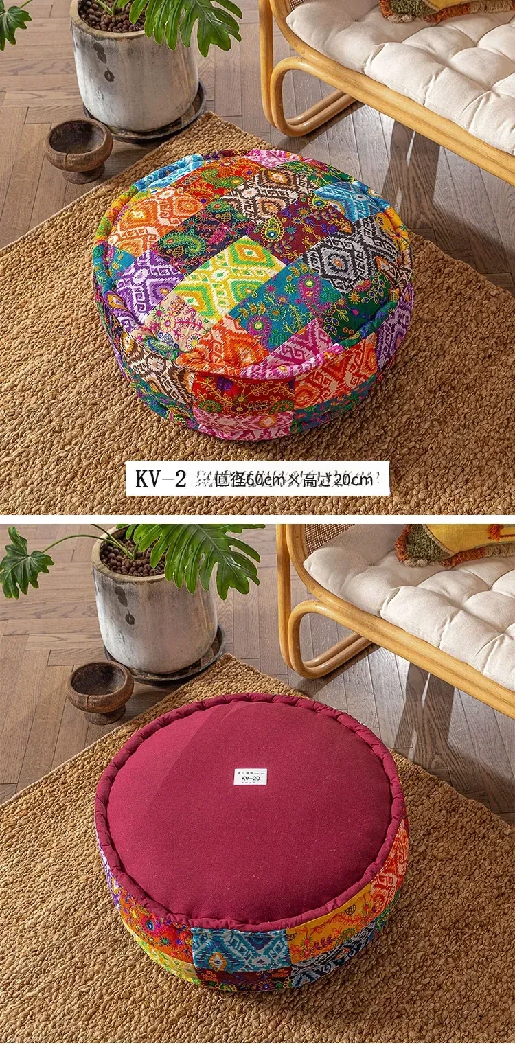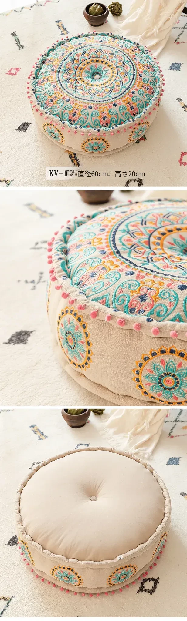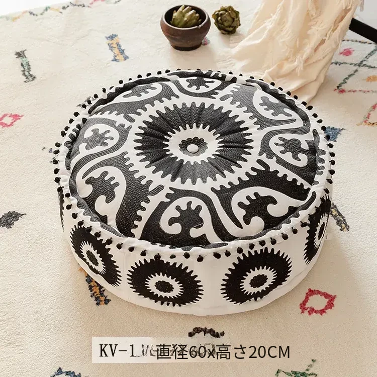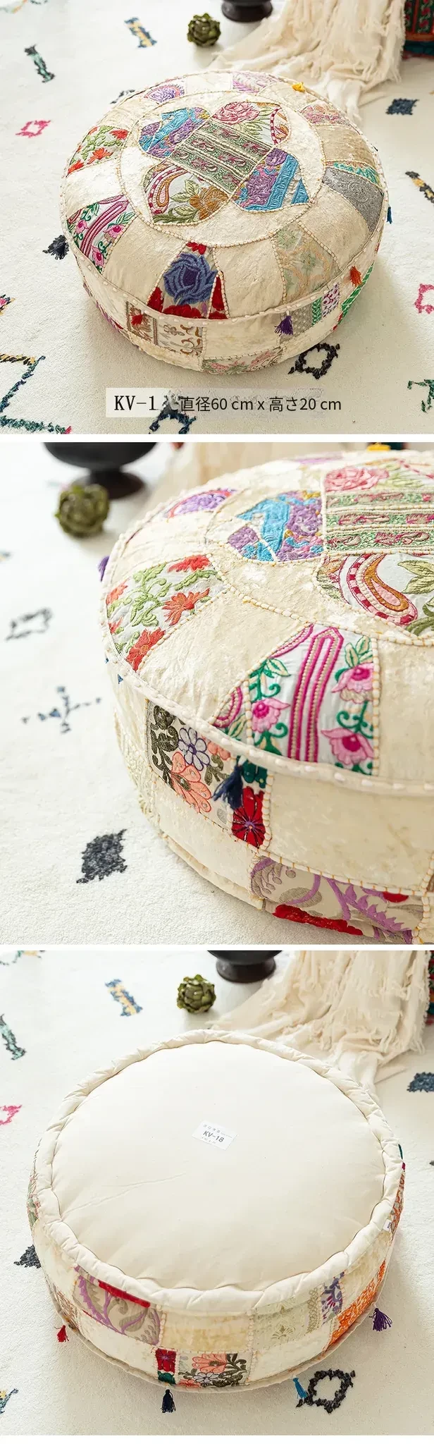 インド直輸入!厚手布製の大サイズ円形座布団 - 瞑想・座禅・ヨガに最適なタタミスタイルの座椅子。心地よい座り心地で、リラックスしたひとときをお届けします。