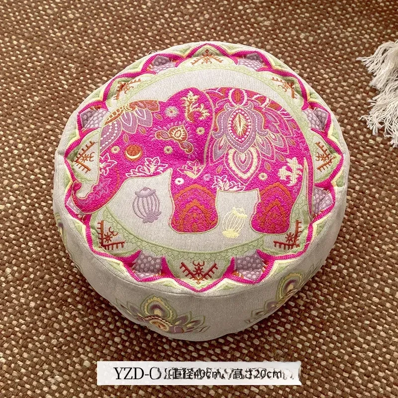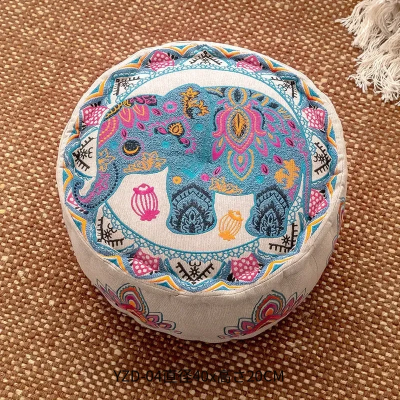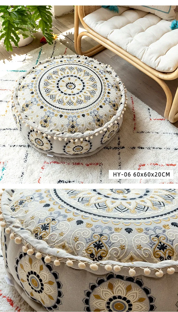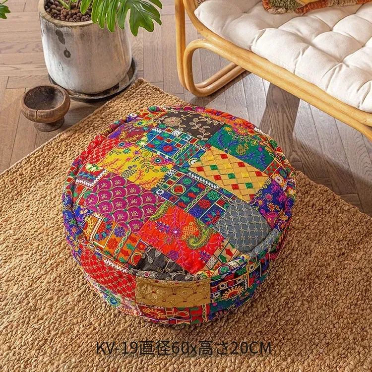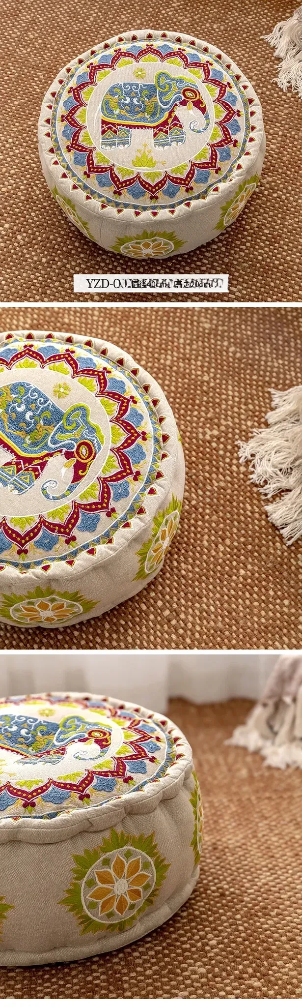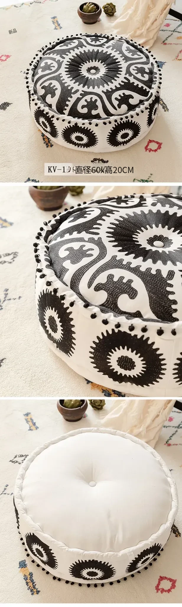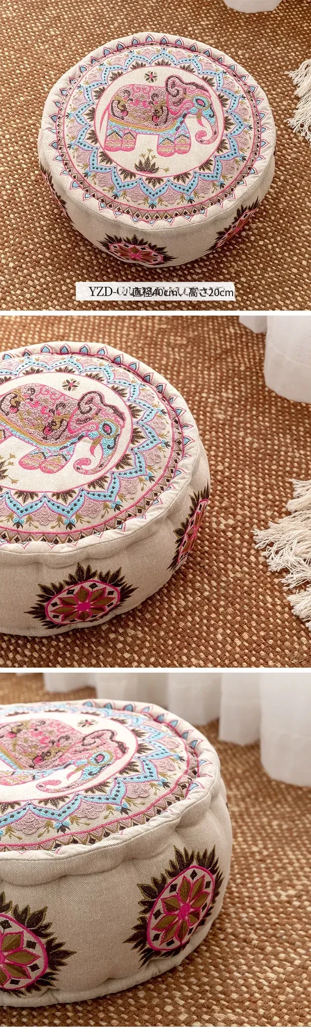 インド直輸入!厚手布製の大サイズ円形座布団 - 瞑想・座禅・ヨガに最適なタタミスタイルの座椅子。心地よい座り心地で、リラックスしたひとときをお届けします。
