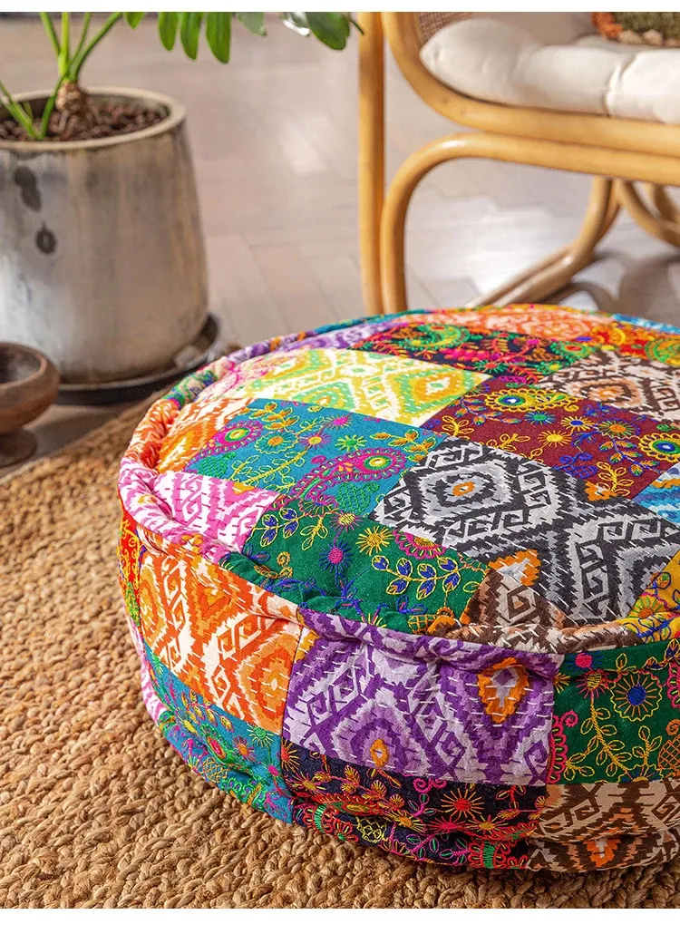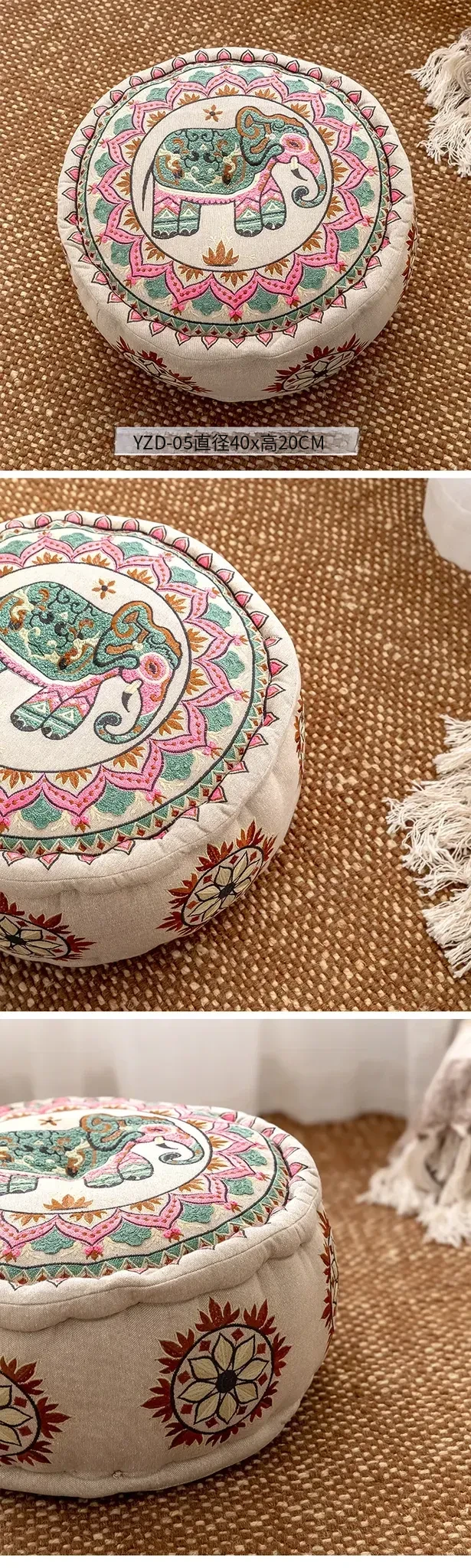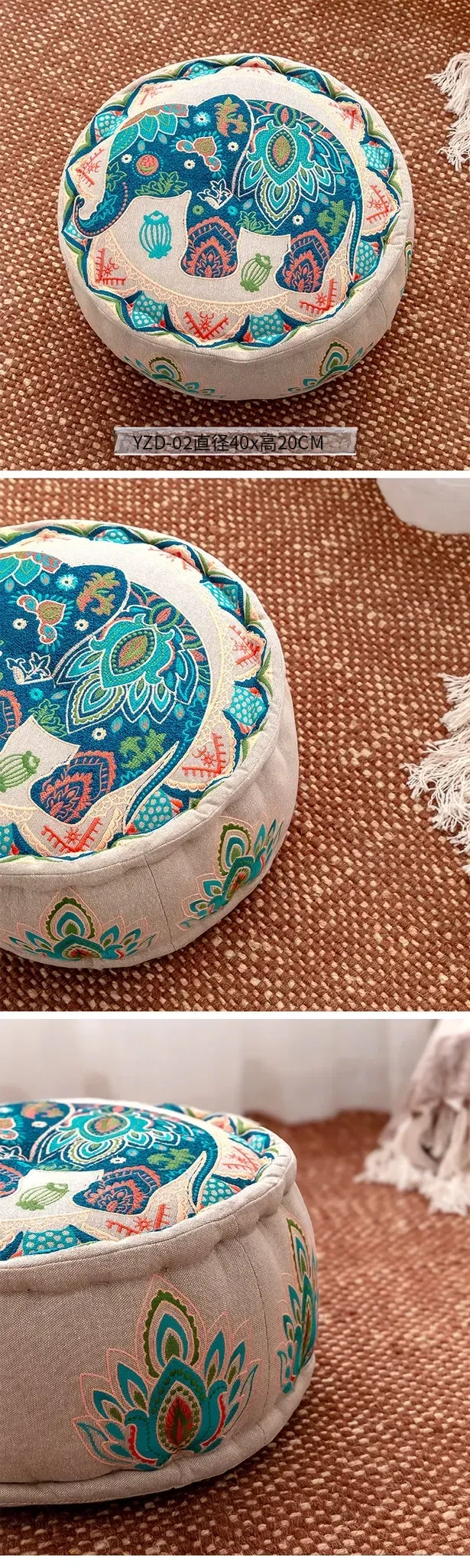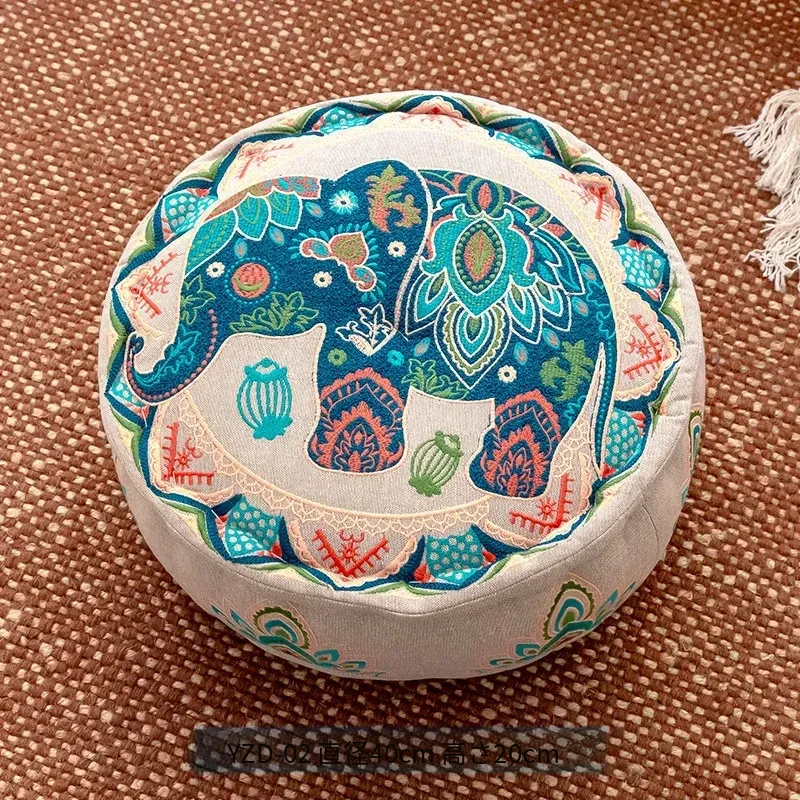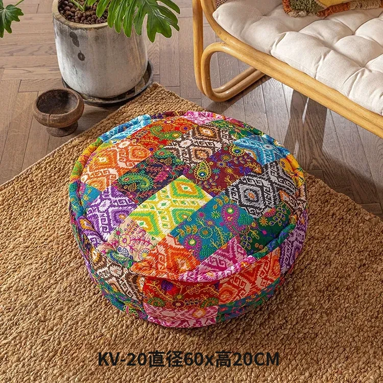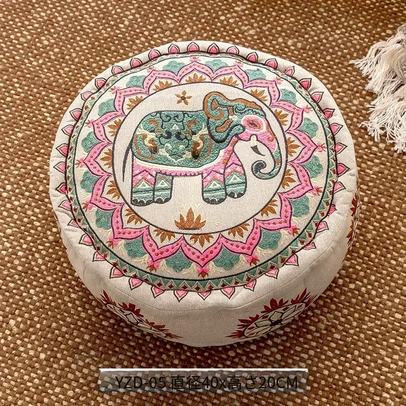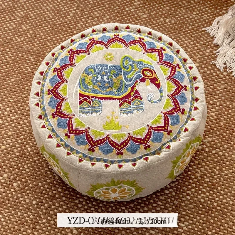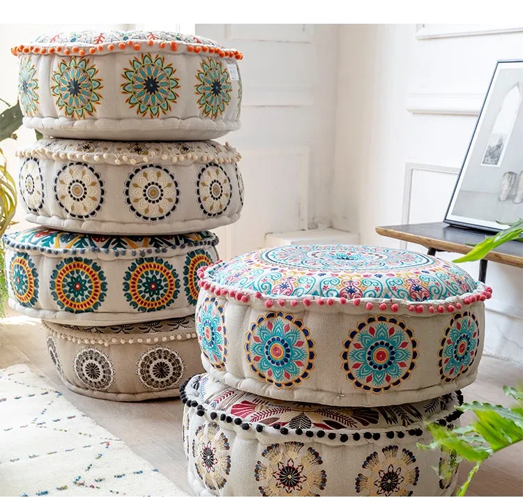 インド直輸入!厚手布製の大サイズ円形座布団 - 瞑想・座禅・ヨガに最適なタタミスタイルの座椅子。心地よい座り心地で、リラックスしたひとときをお届けします。