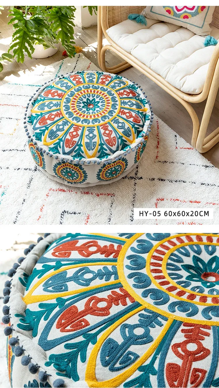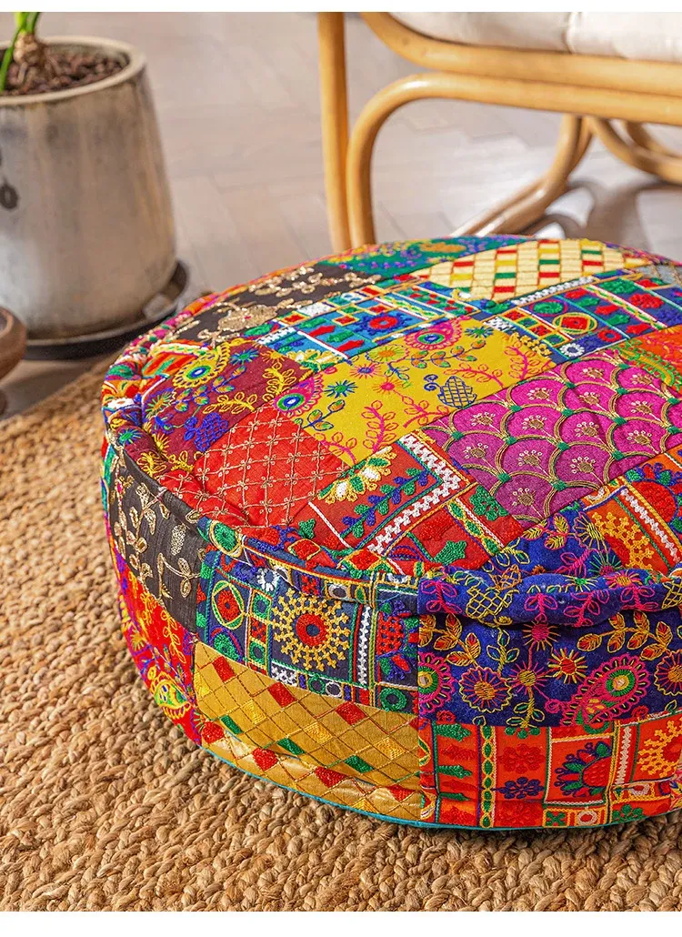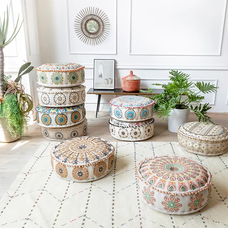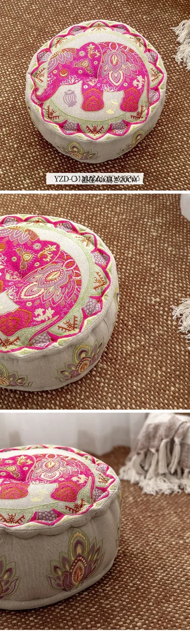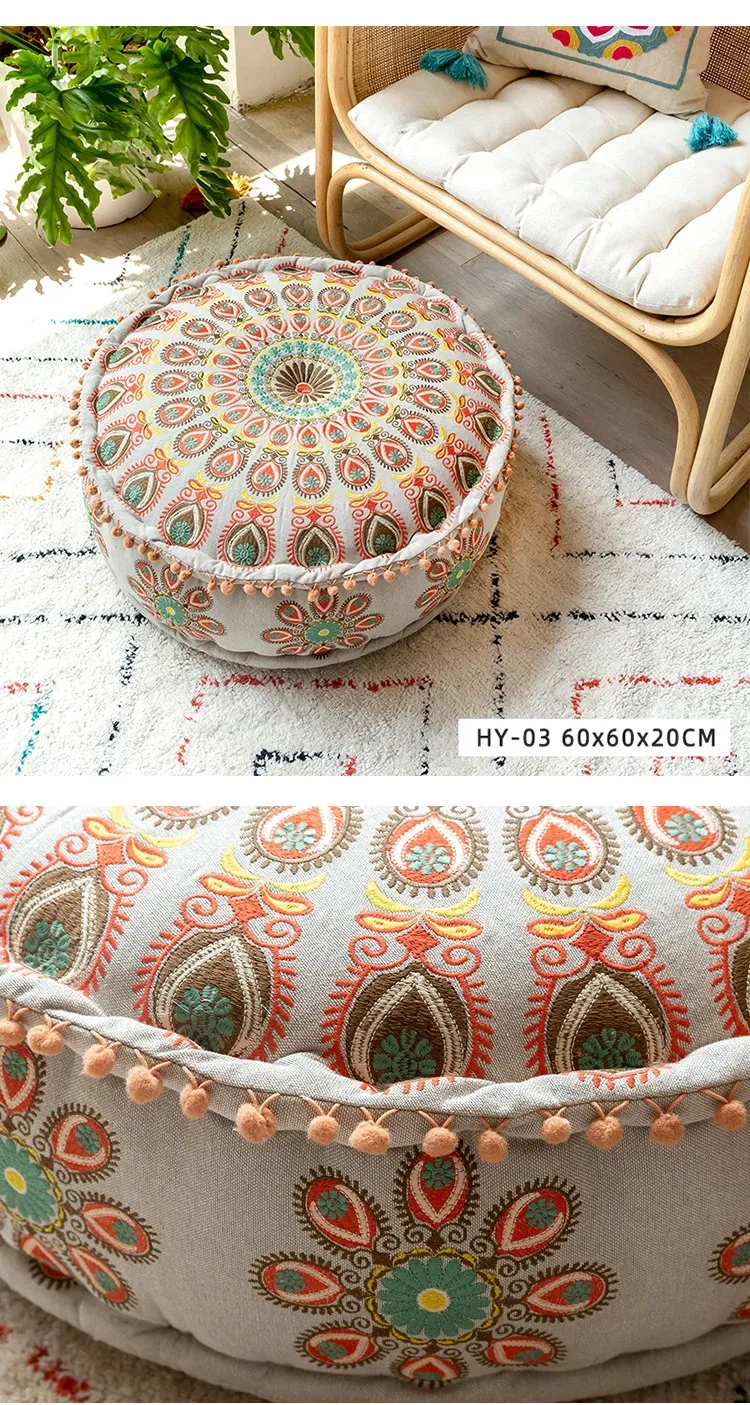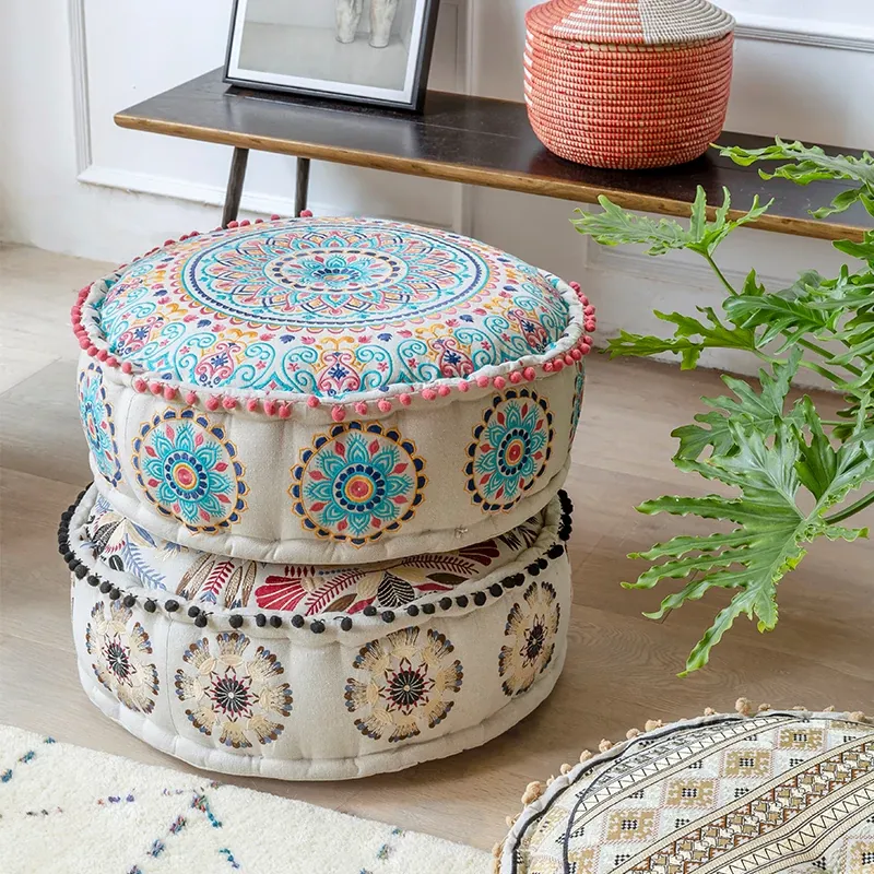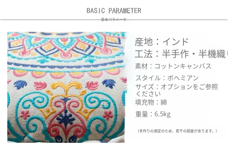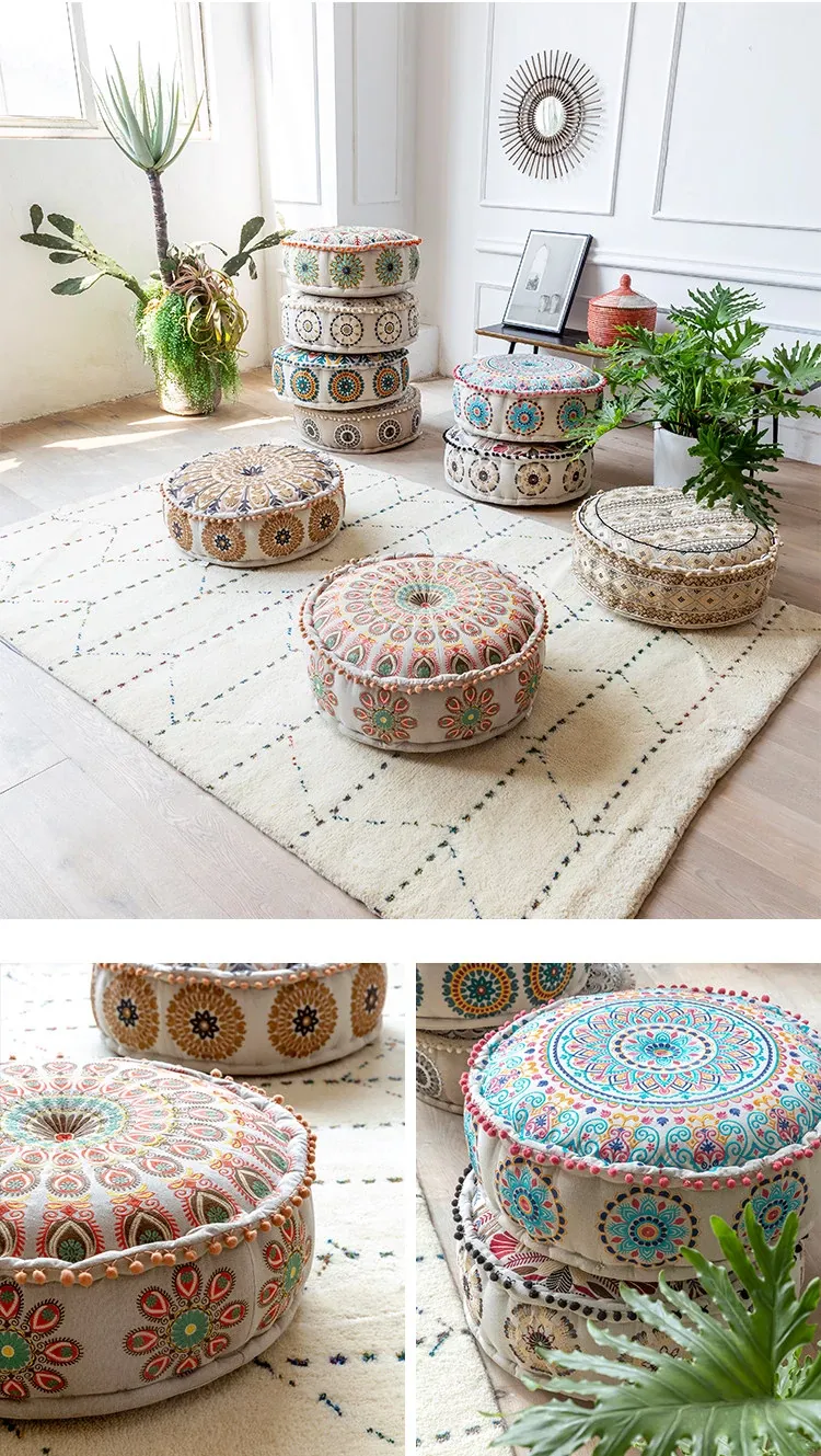 インド直輸入!厚手布製の大サイズ円形座布団 - 瞑想・座禅・ヨガに最適なタタミスタイルの座椅子。心地よい座り心地で、リラックスしたひとときをお届けします。