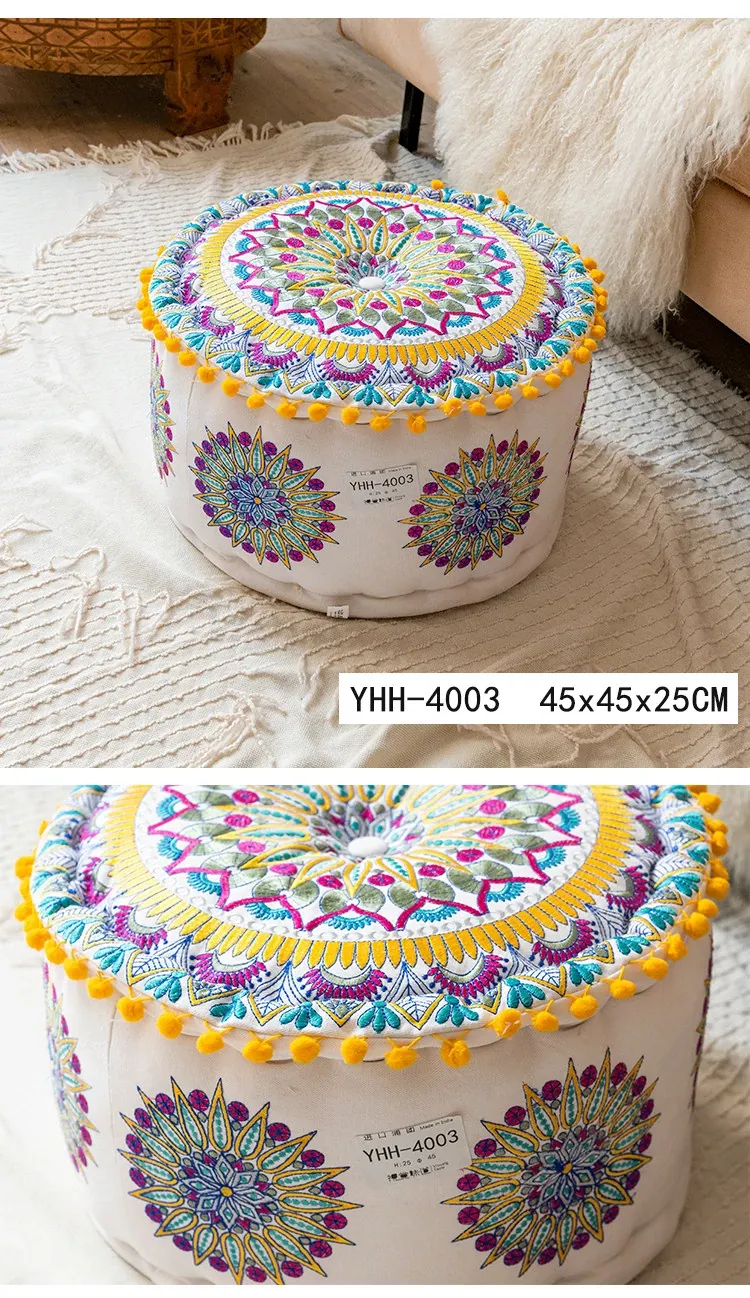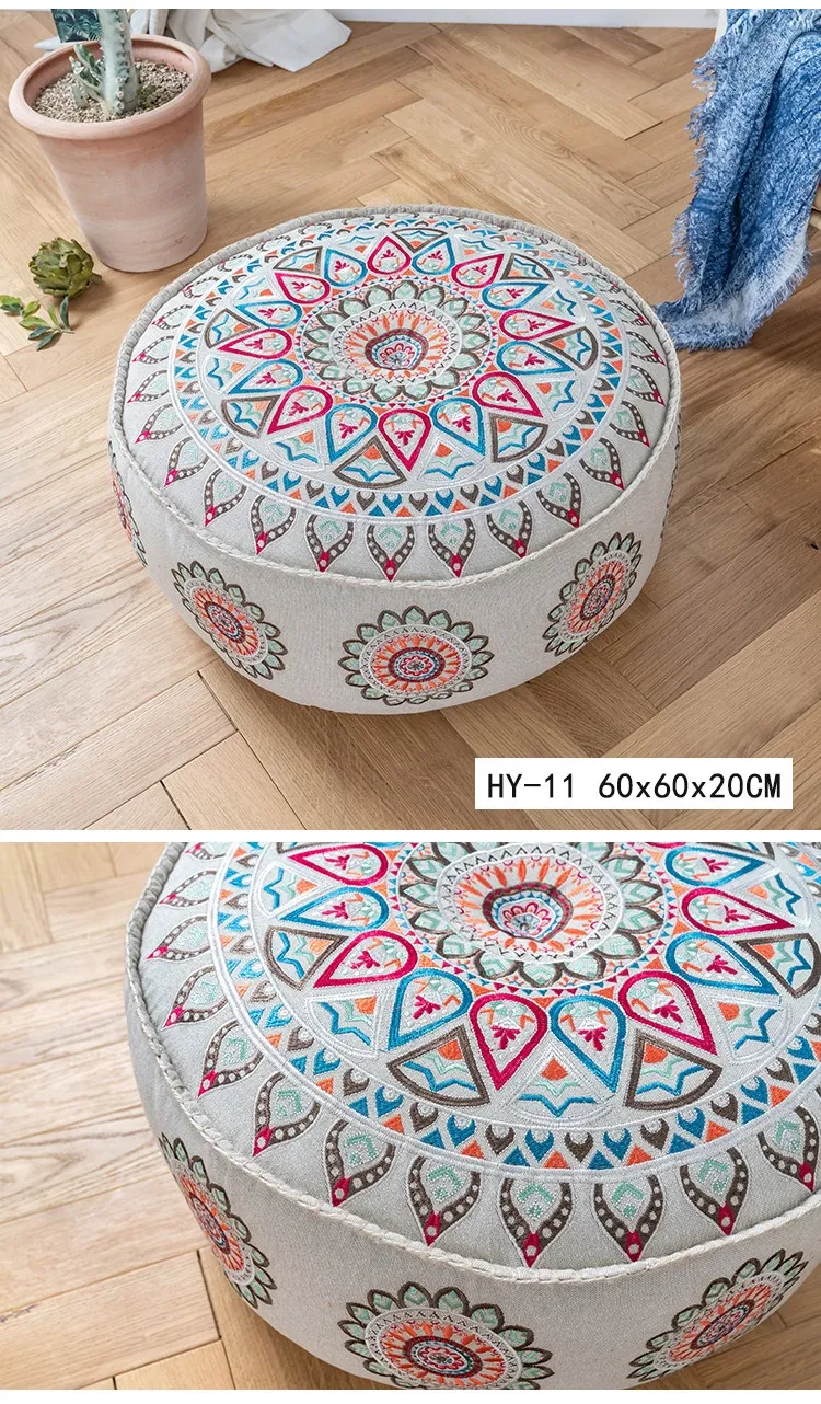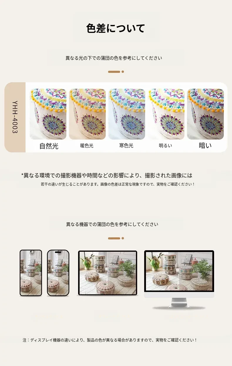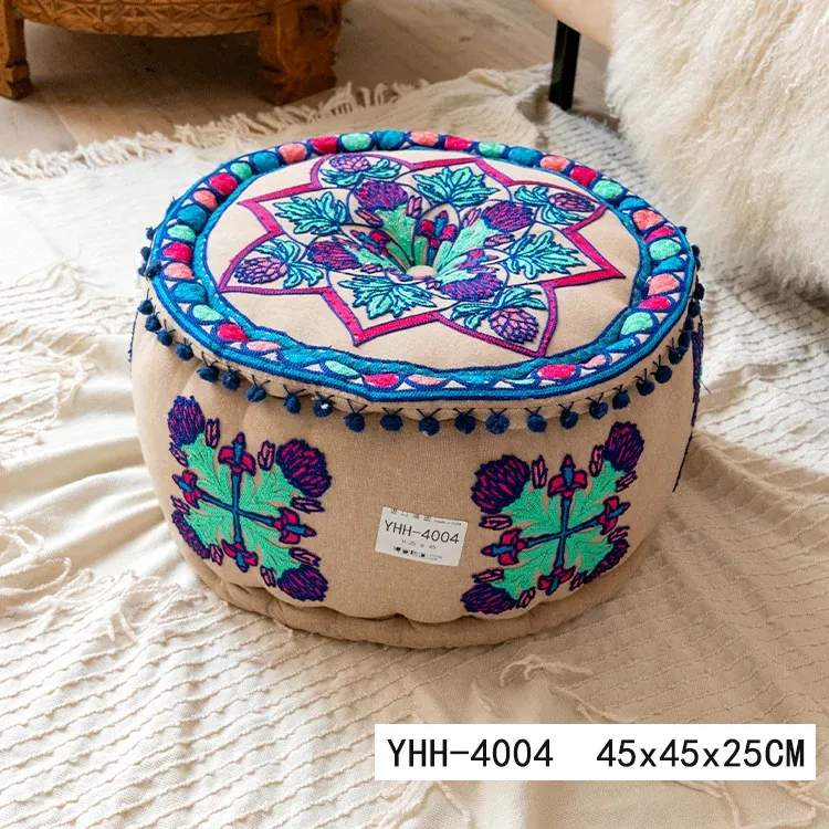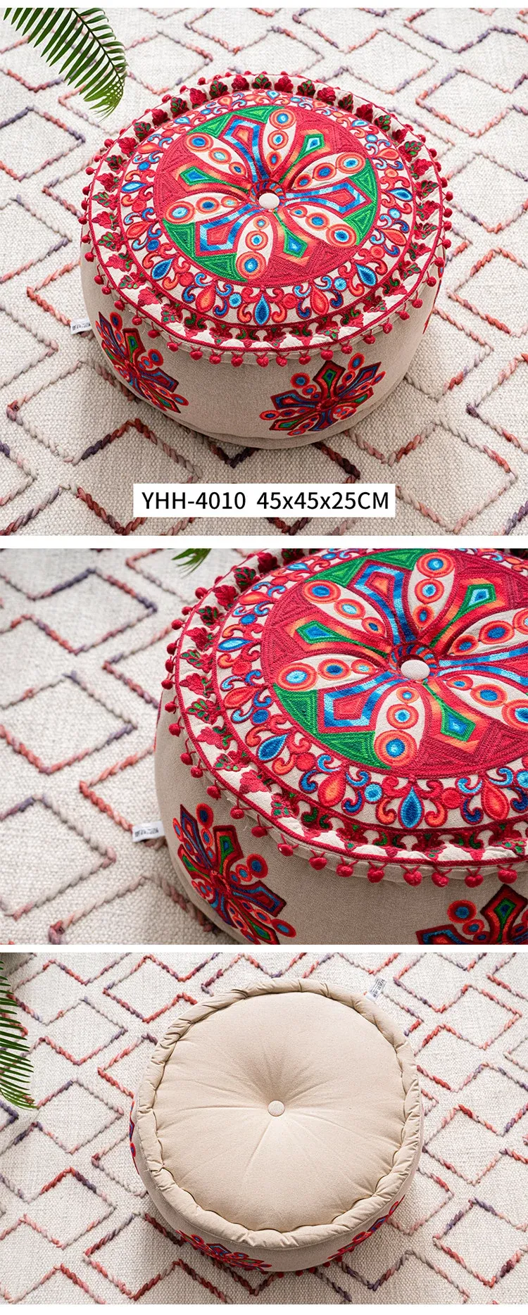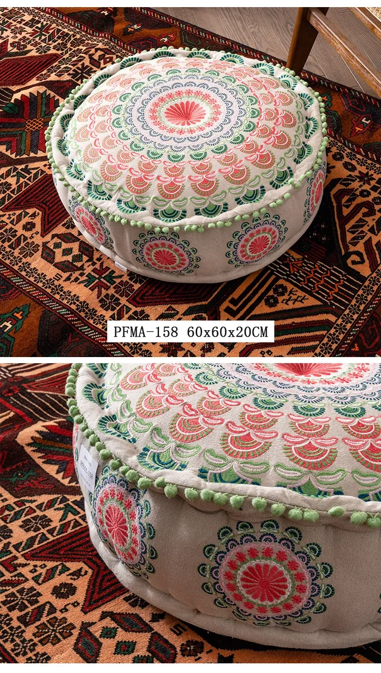 インド直輸入!厚手布製の大サイズ円形座布団 - 瞑想・座禅・ヨガに最適なタタミスタイルの座椅子。心地よい座り心地で、リラックスしたひとときをお届けします。