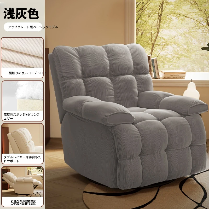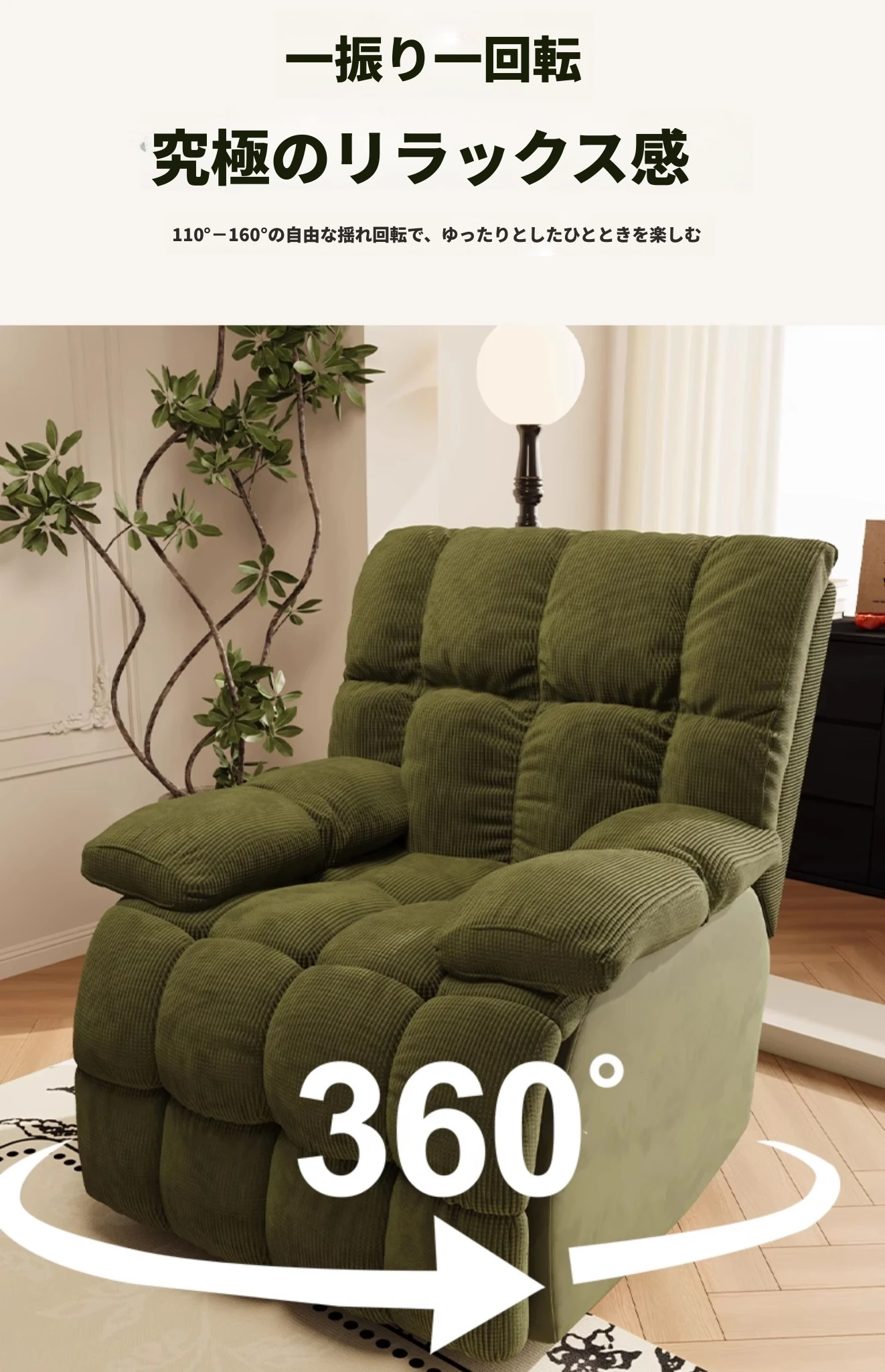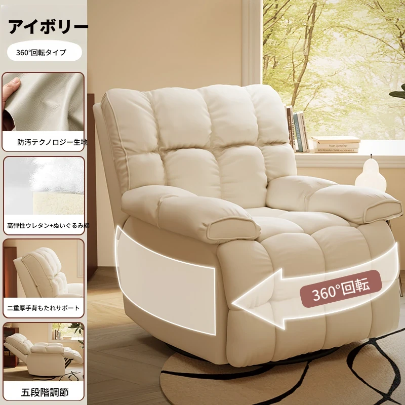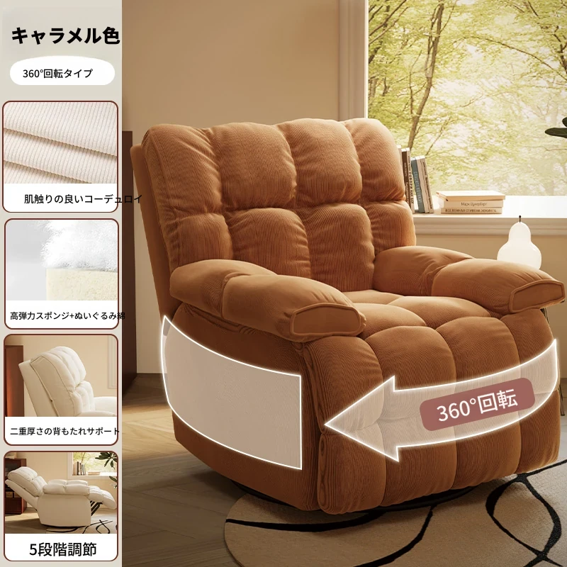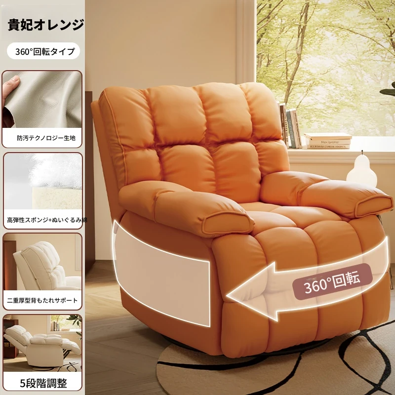 リラックスソファ|寝転がれる!一人用ソファ|リビング・寝室に最適なコンパクト設計|多機能回転チェアで快適なひとときを!