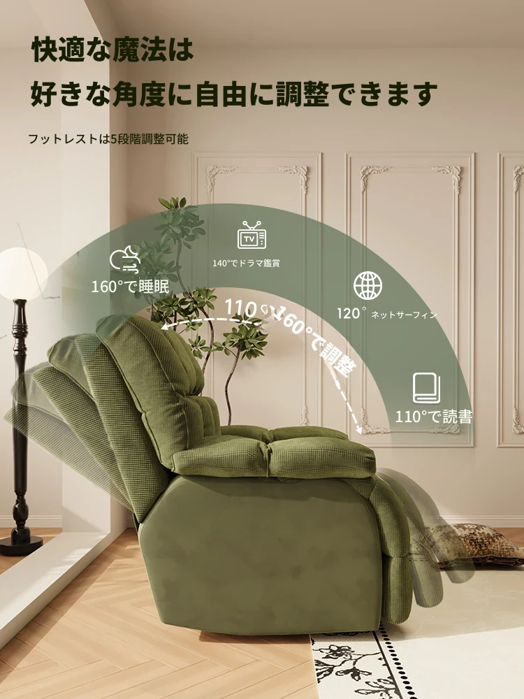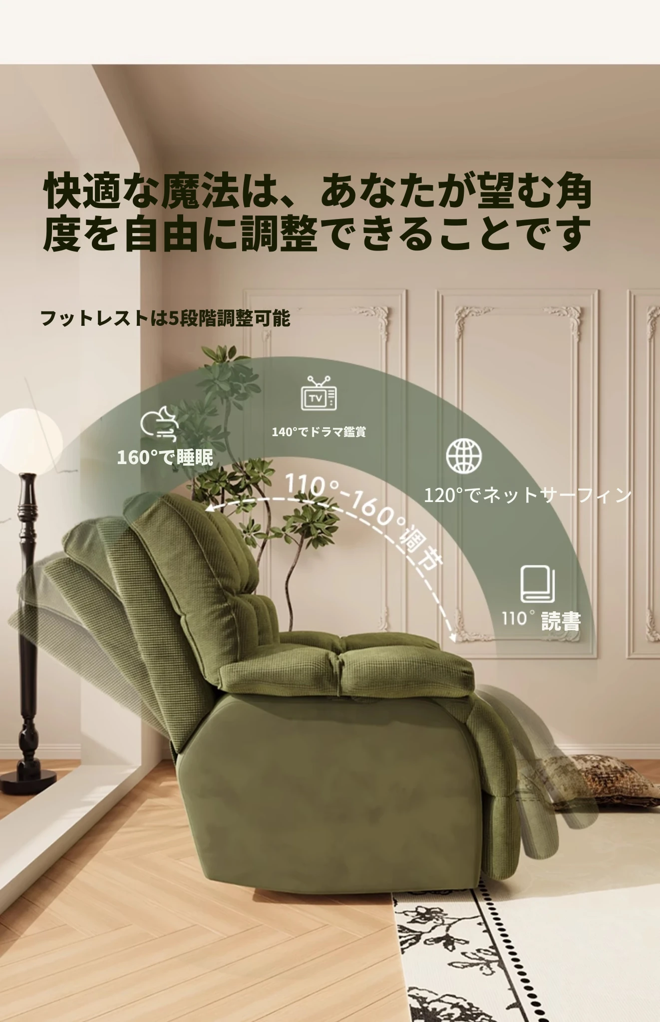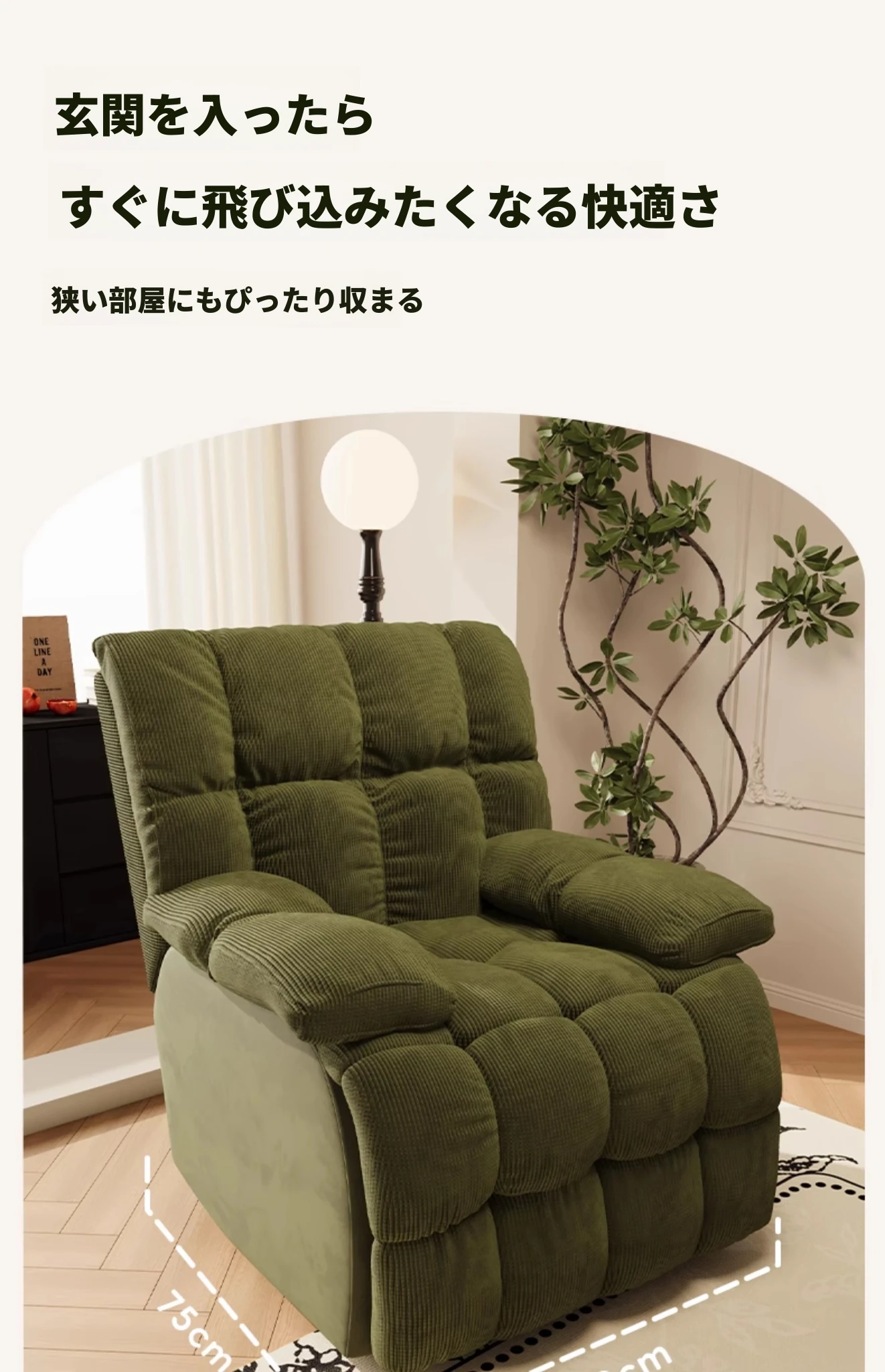 リラックスソファ|寝転がれる!一人用ソファ|リビング・寝室に最適なコンパクト設計|多機能回転チェアで快適なひとときを!