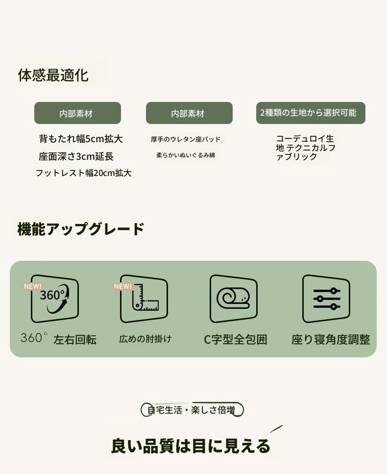 アップグレード360°回転モデル【肌触りの良いコーデュロイ-5段調整】クリームホワイト
