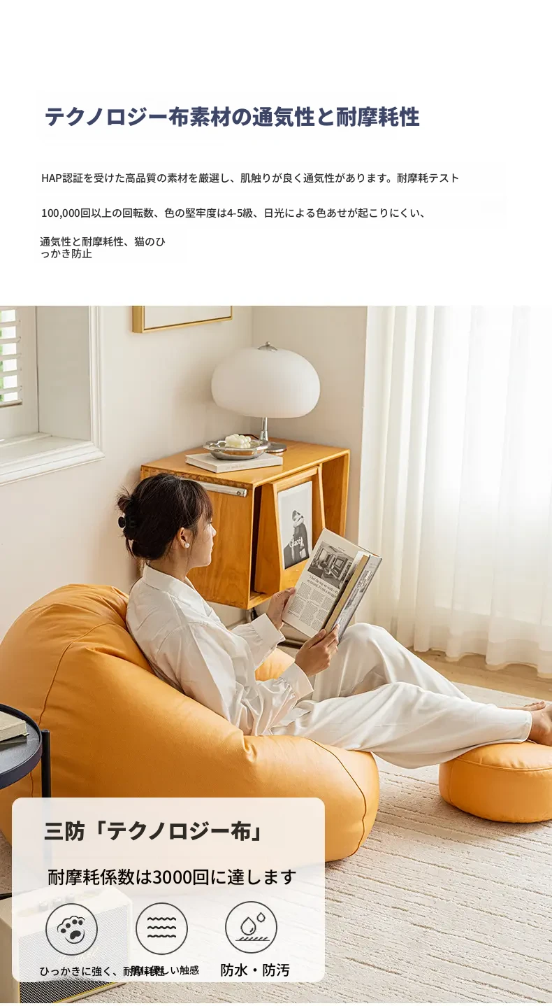 活力オレンジソファカバー+フットスツールアップグレードスキンフィールジャイアントサイズ120*140【ソファカバー 内クッションなし】