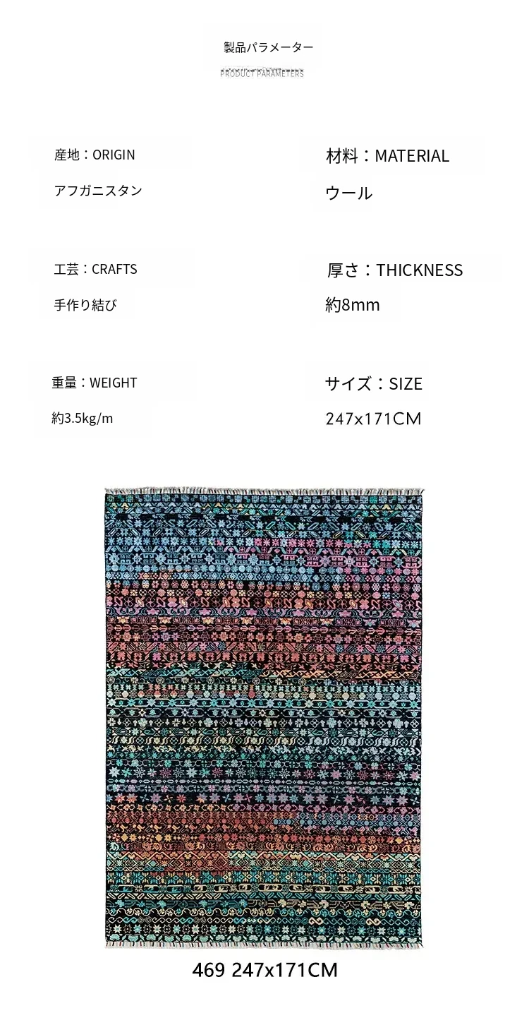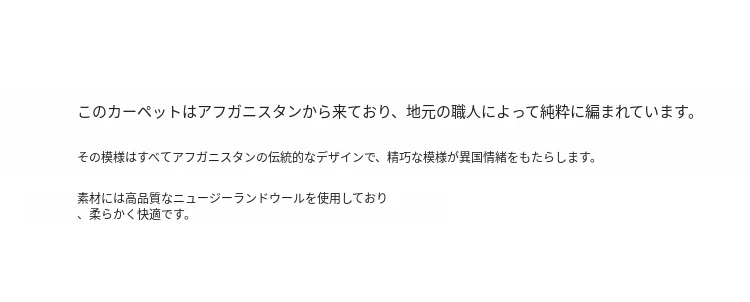 視覚と味覚が調和したアフガニスタン直輸入手織りウールラグ。贅沢なヴィラにぴったりの音を吸収するリビングルーム用、寝室のベッドサイドマットとしても最適です。