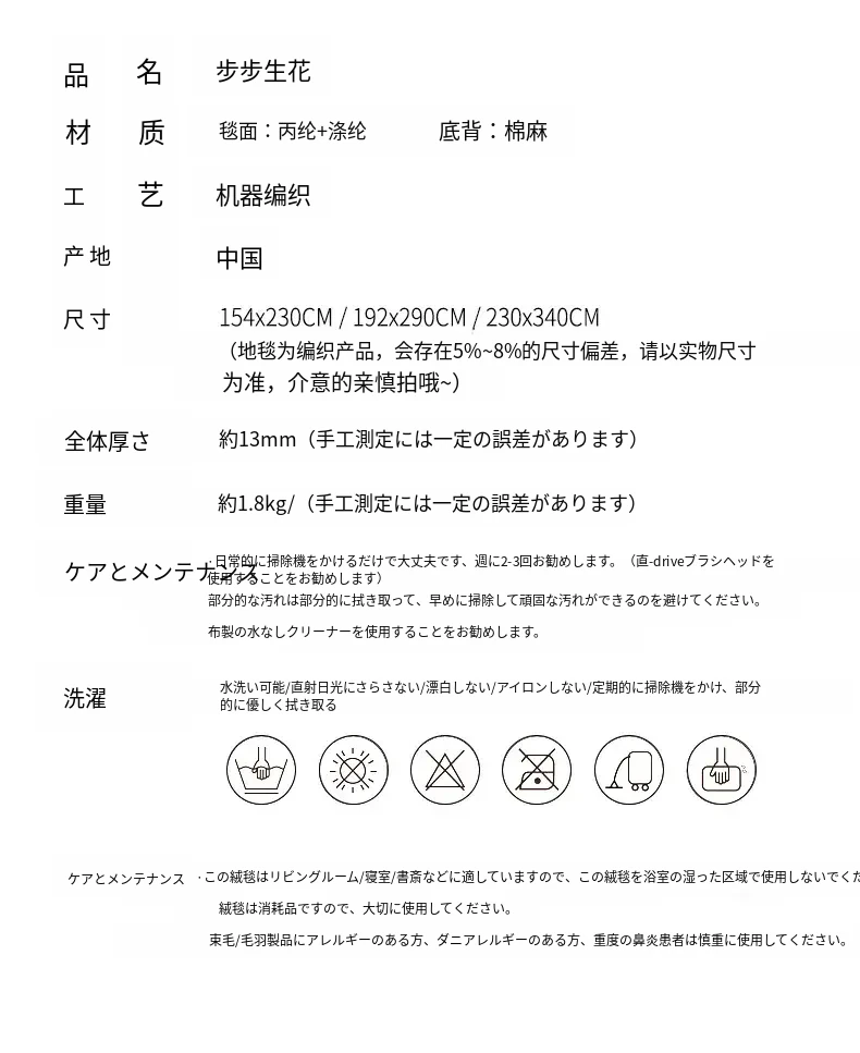 240X340CM(L字型、4人ソファまたは2メートル幅のベッドの足元に合わせて)