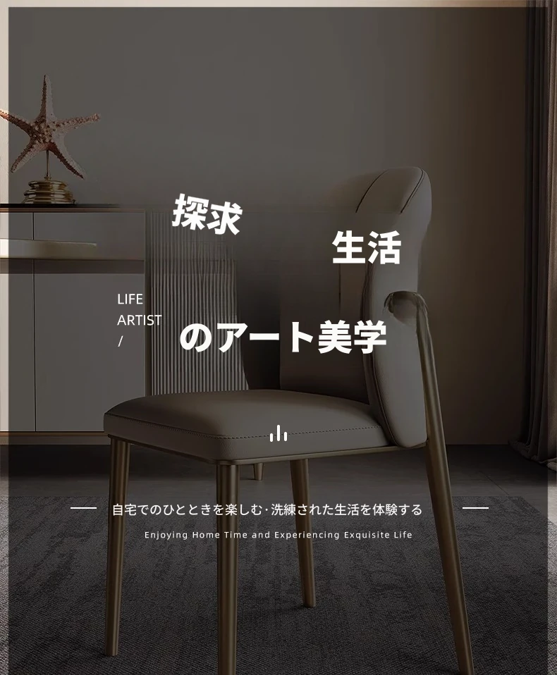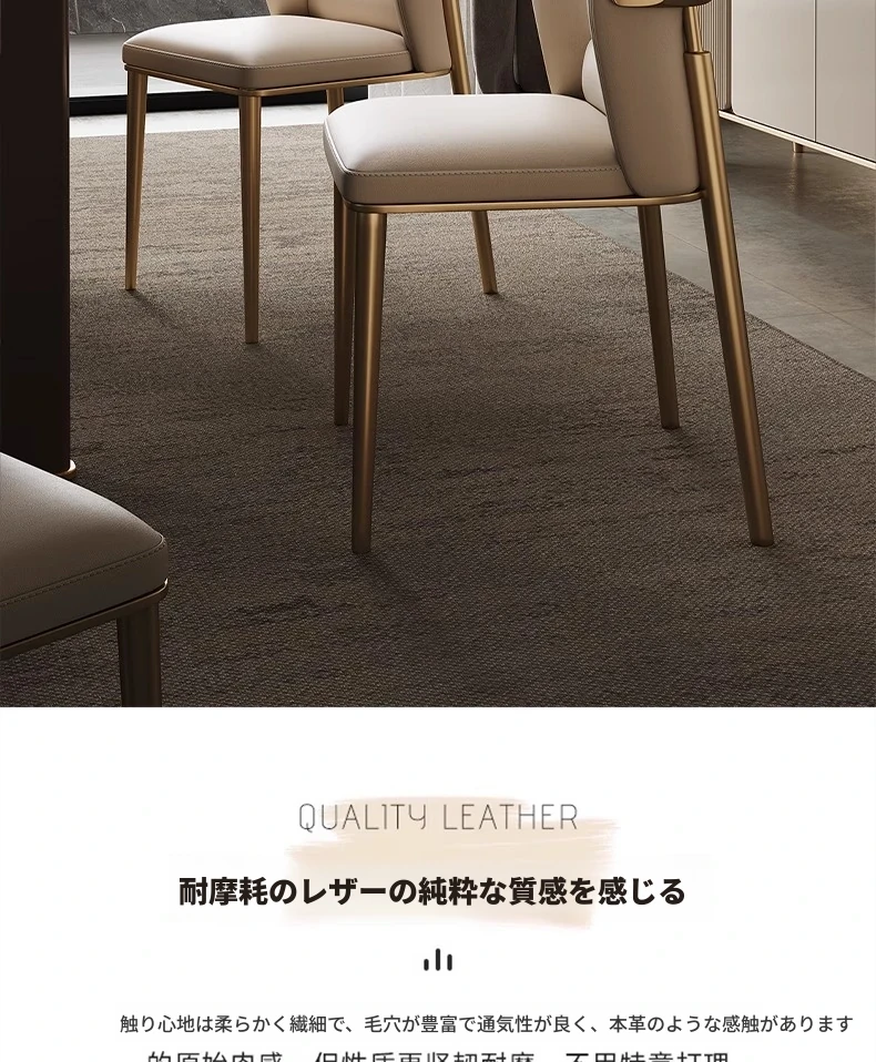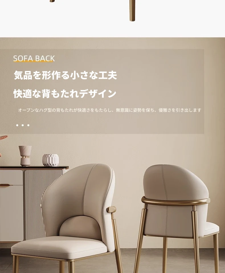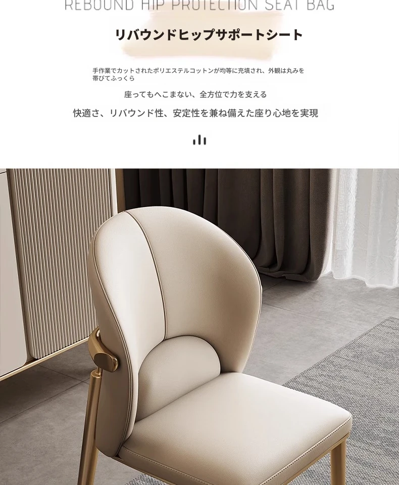 軽奢感溢れる本革ダイニングチェア|デザイナーズ背もたれで快適な座り心地|モダンでシンプルなリビングやレストランに最適|高級牛革使用のスタイリッシュな一品!