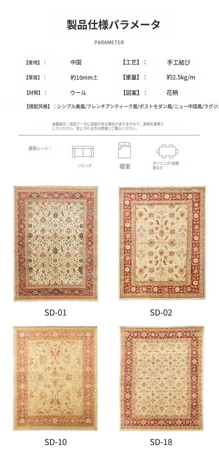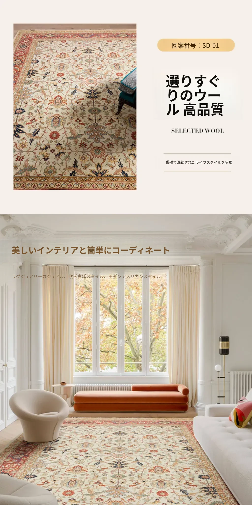 視覚と味覚を魅了する輸入ヴィラ羊毛カーペット!ペルシャの手織り、アメリカンスタイルのリビングルームや寝室、書斎にぴったりの高級感あふれるラグ。上質な空間を演出します!