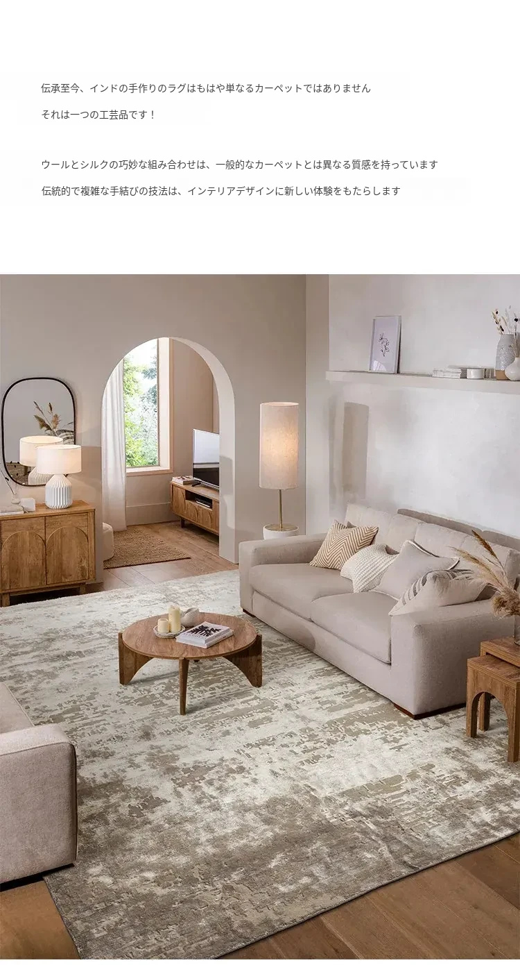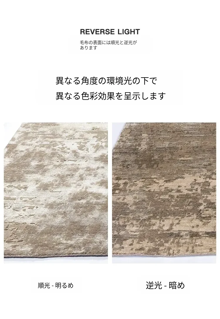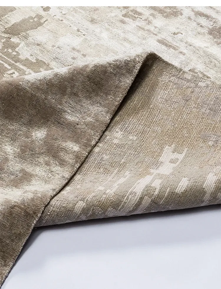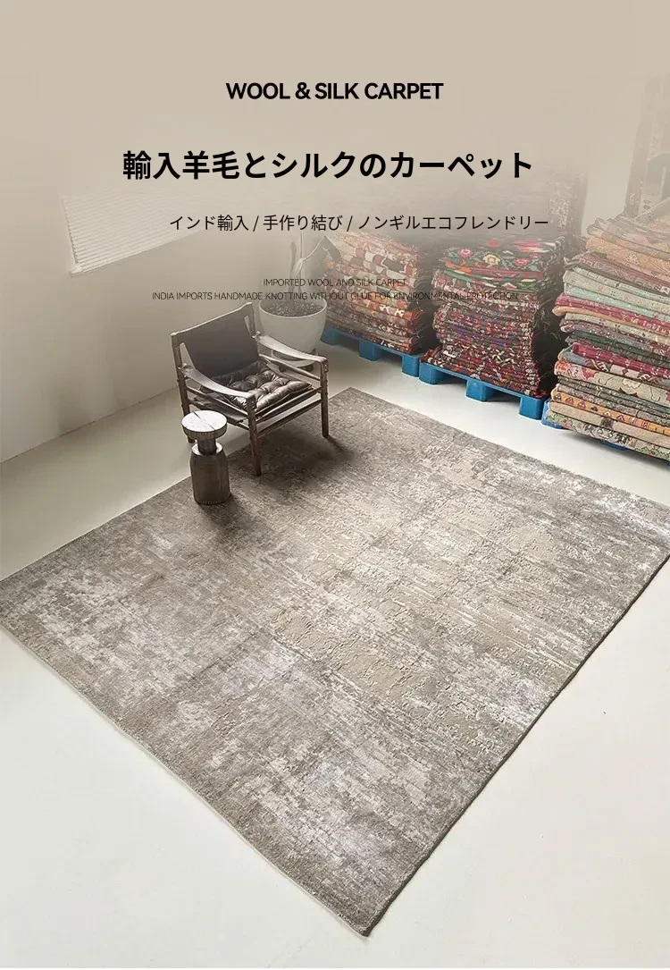 視覚と味覚で楽しむ!輸入高級手作り結びウールシルク混合ラグ。アメリカン&中華スタイルのヴィラにぴったりなリビングルームやベッドサイドに最適なラグで、上質な軽奢さを演出します。