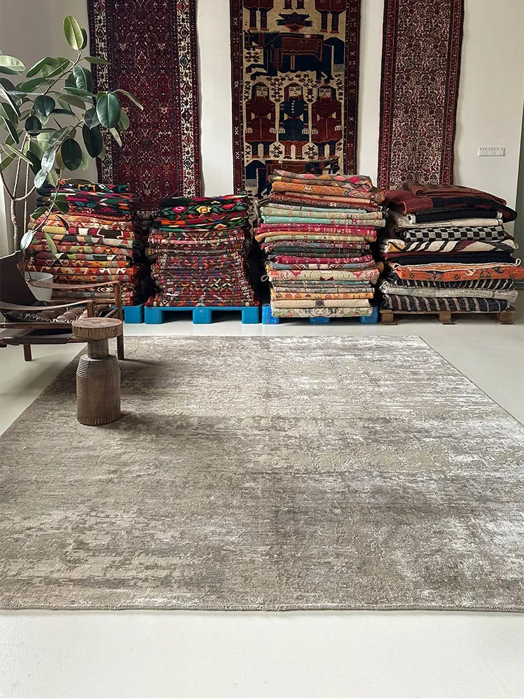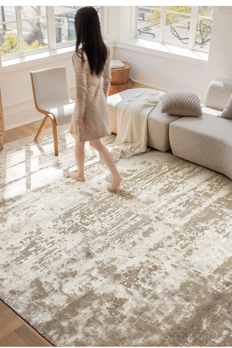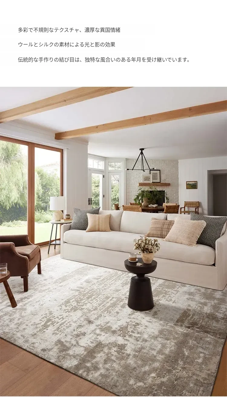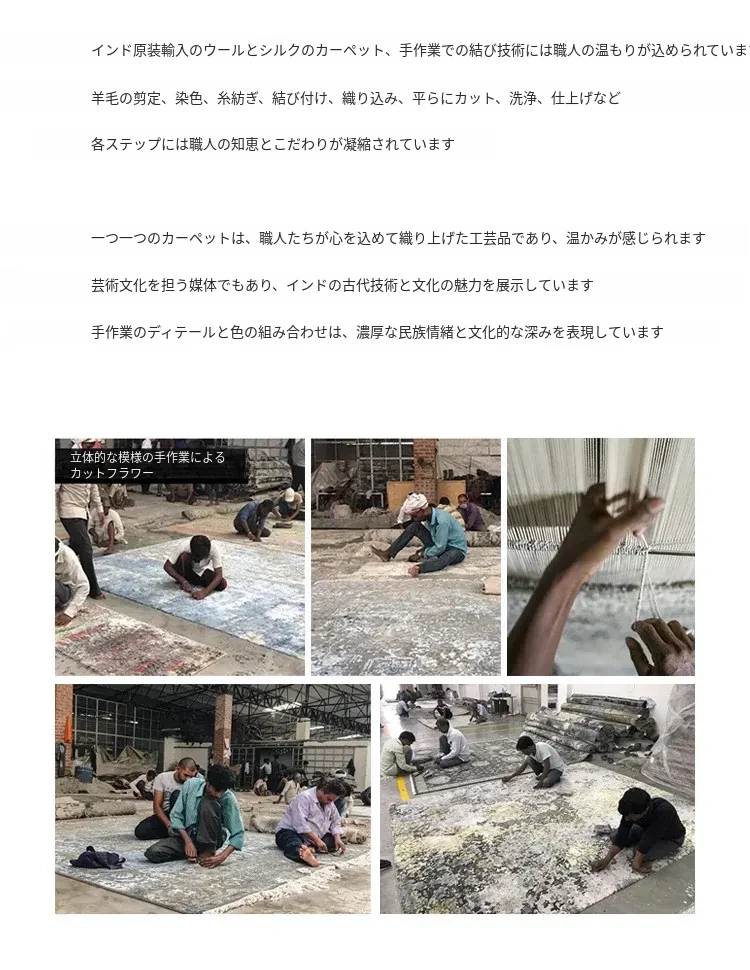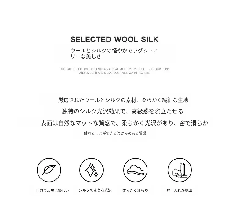 視覚と味覚で楽しむ!輸入高級手作り結びウールシルク混合ラグ。アメリカン&中華スタイルのヴィラにぴったりなリビングルームやベッドサイドに最適なラグで、上質な軽奢さを演出します。