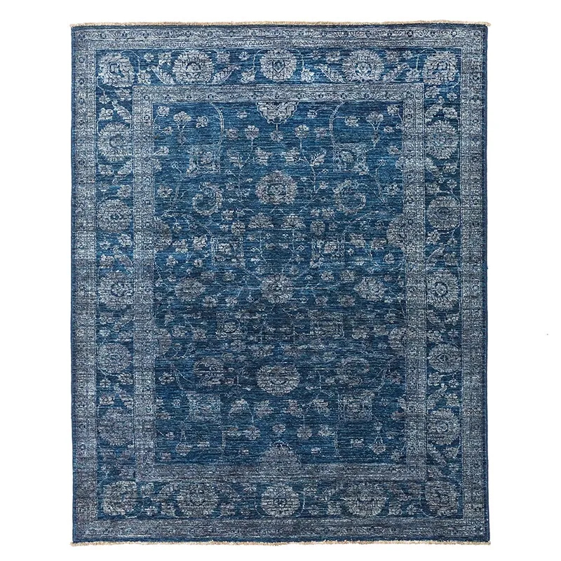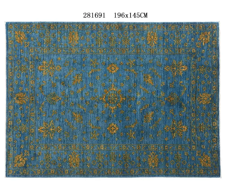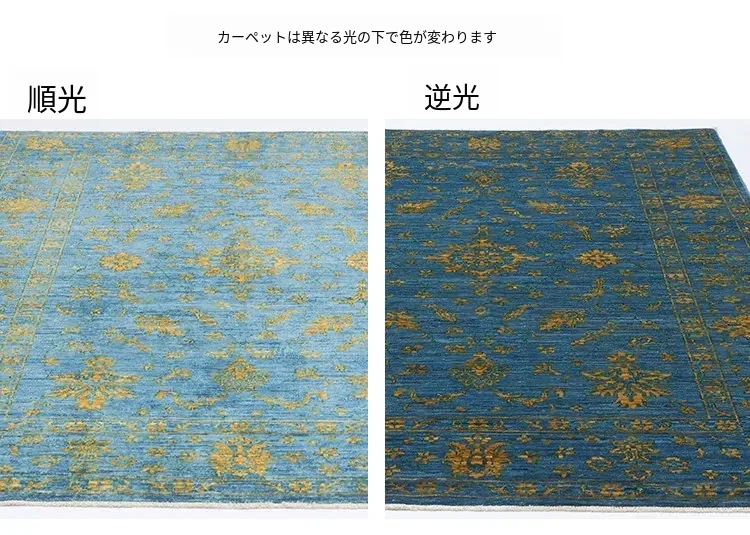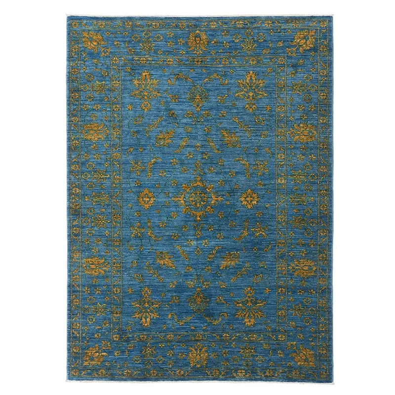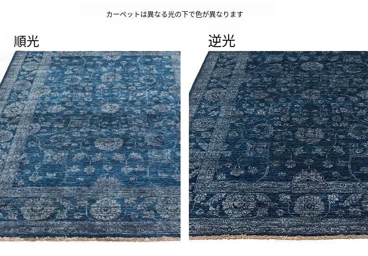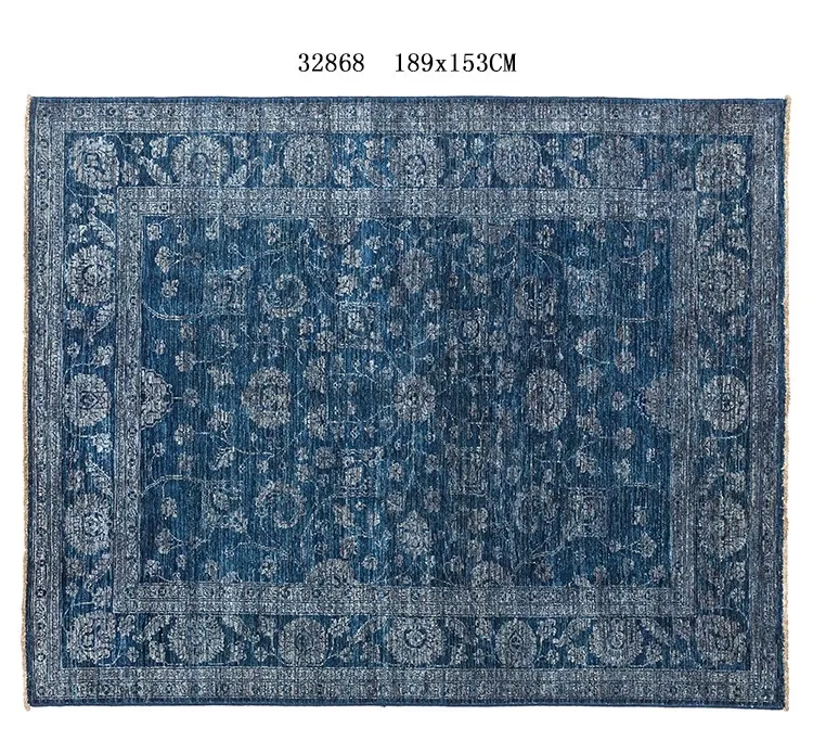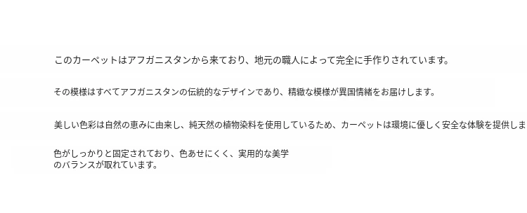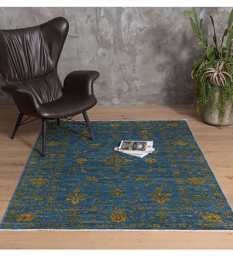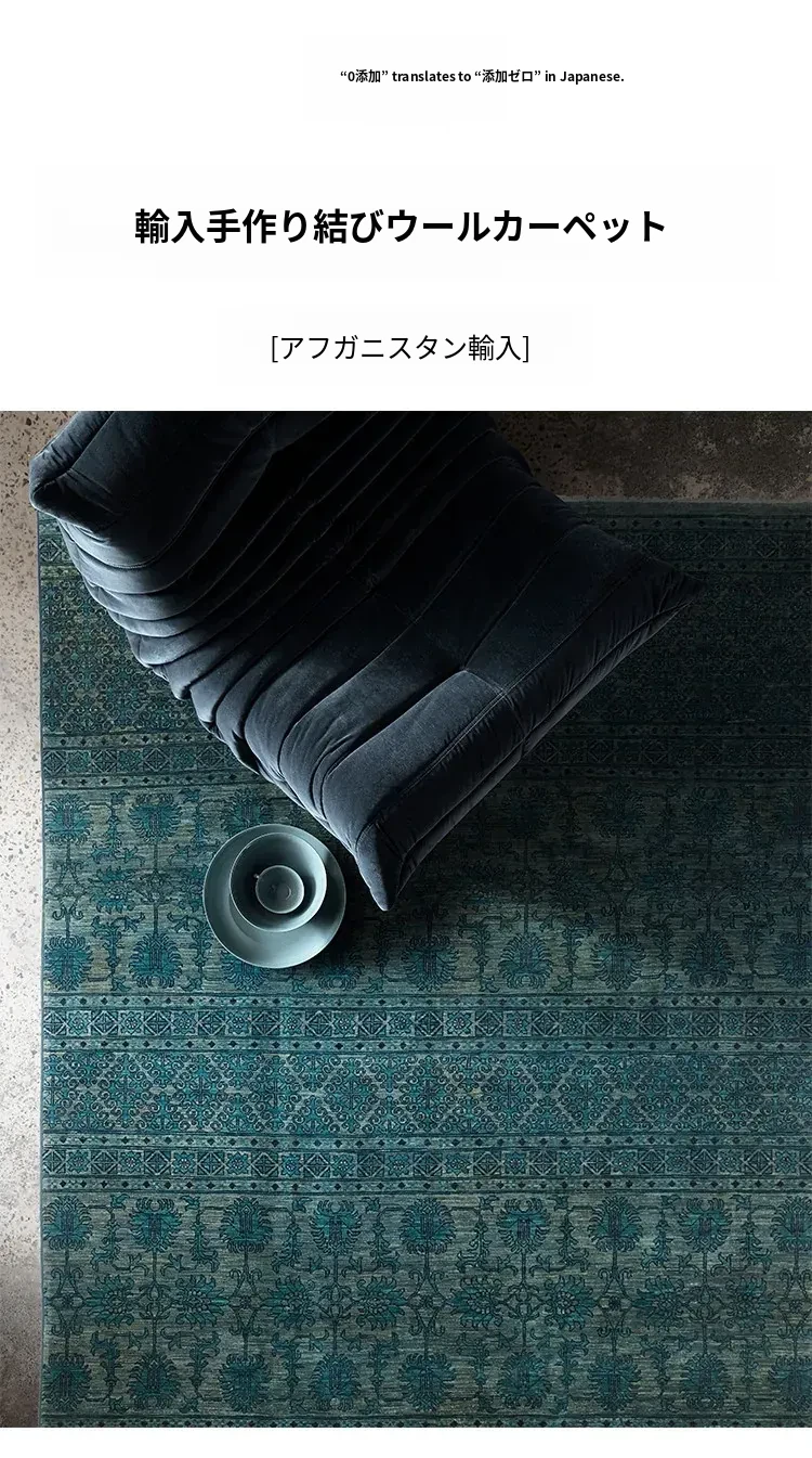 アフガニスタン直輸入の新古典スタイル、豪華なブルー系手織りウールラグ。高級感溢れるヴィンテージデザインで、あなたの空間を優雅に演出します。手作りの温もりを感じる特別な一枚をお楽しみください。