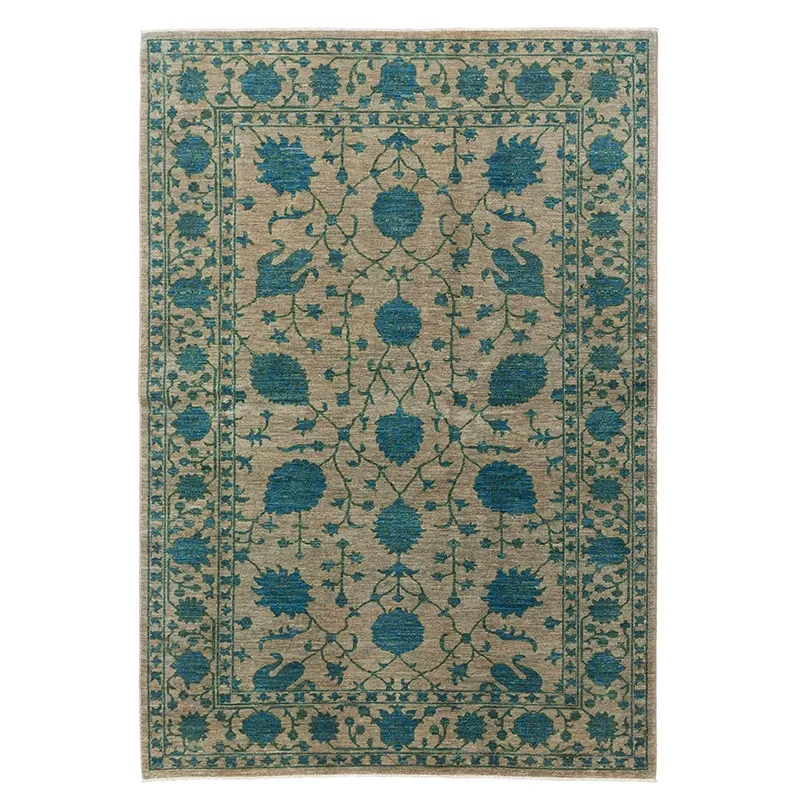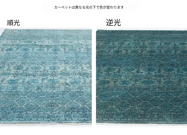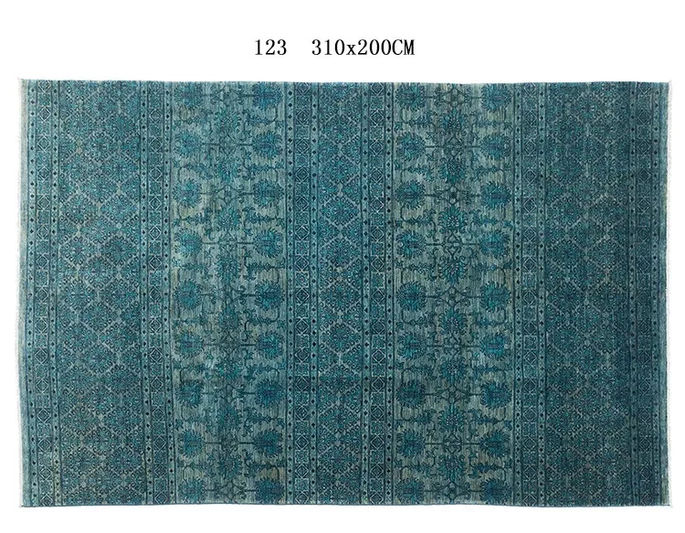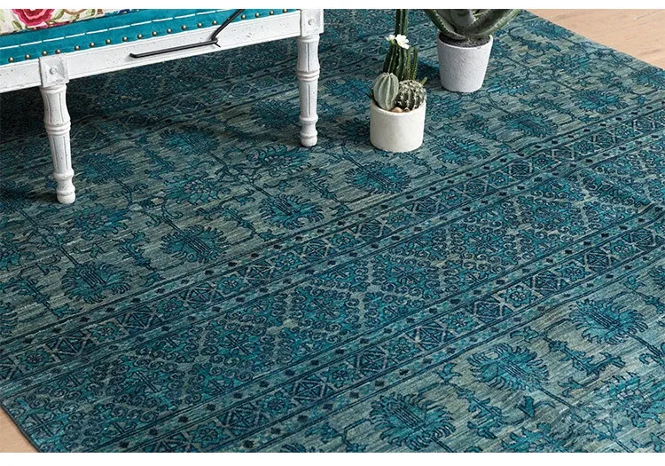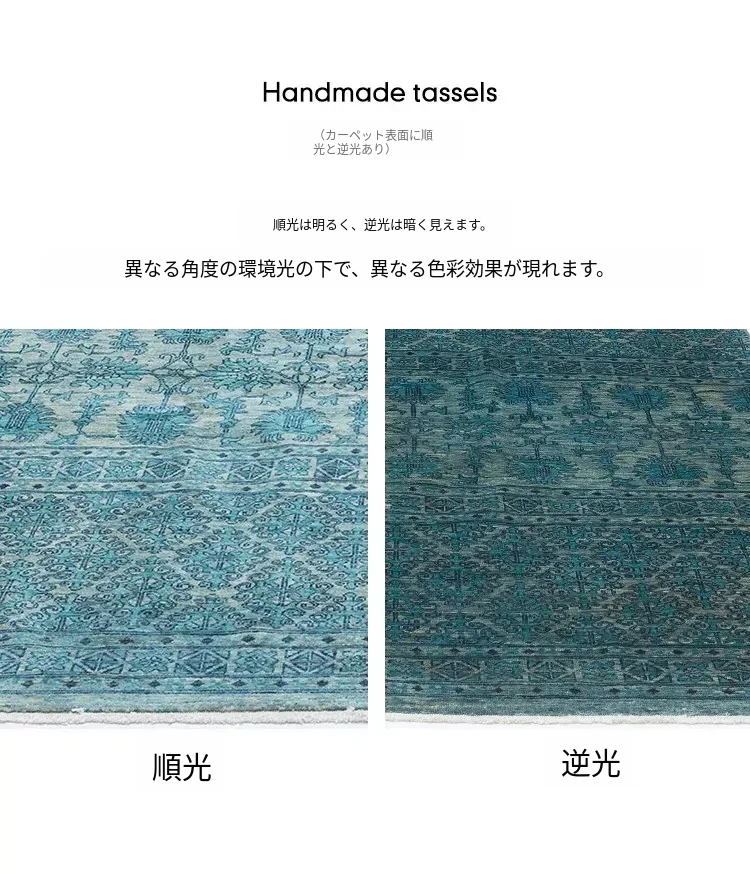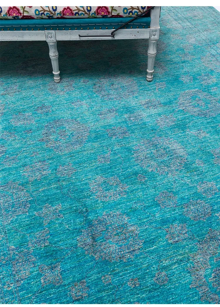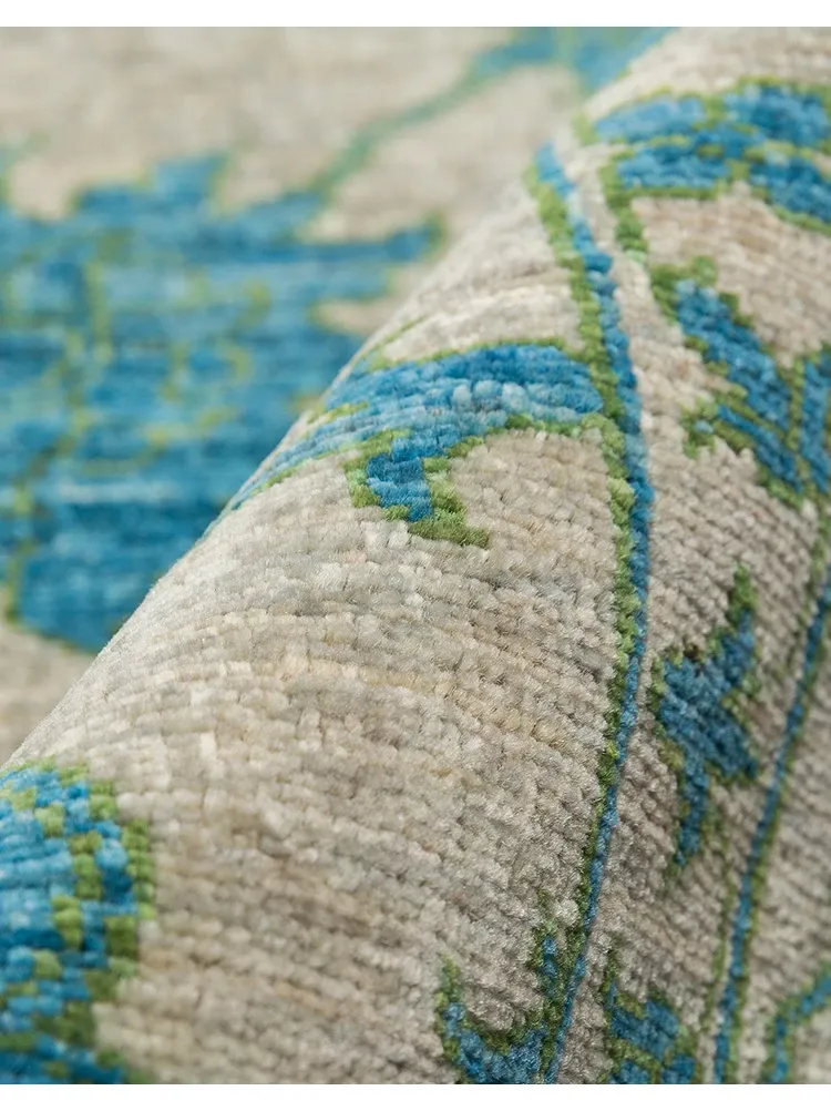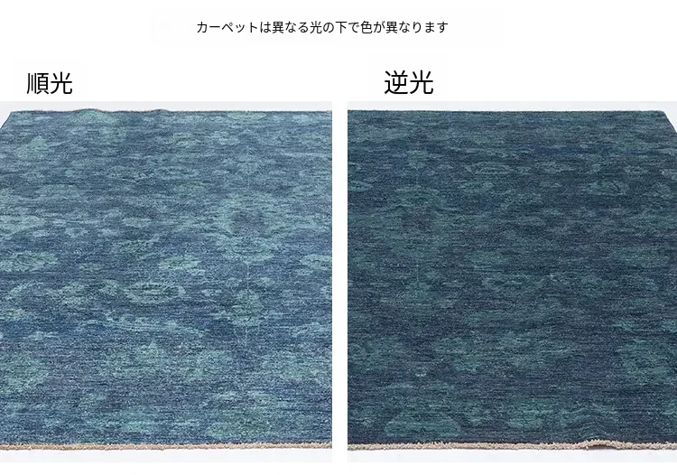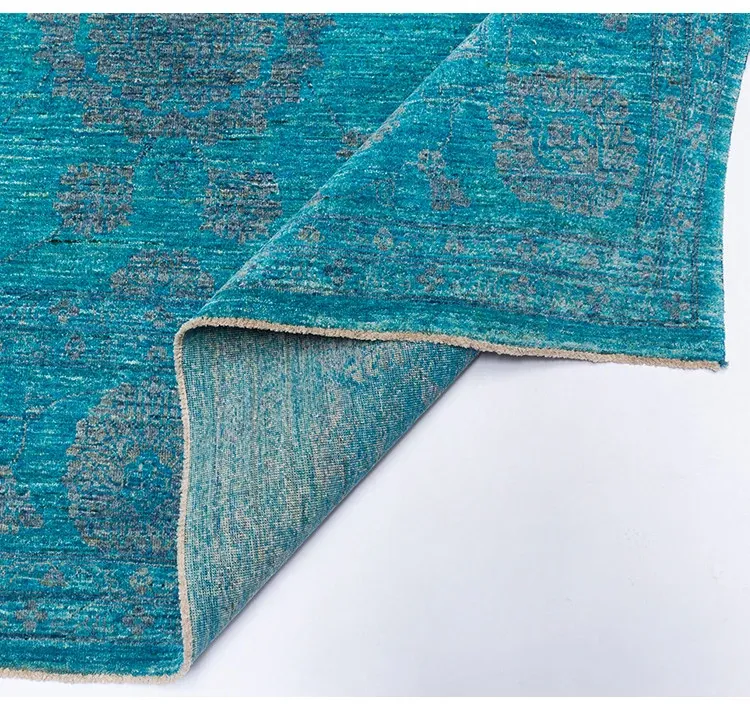 アフガニスタン直輸入の新古典スタイル、豪華なブルー系手織りウールラグ。高級感溢れるヴィンテージデザインで、あなたの空間を優雅に演出します。手作りの温もりを感じる特別な一枚をお楽しみください。