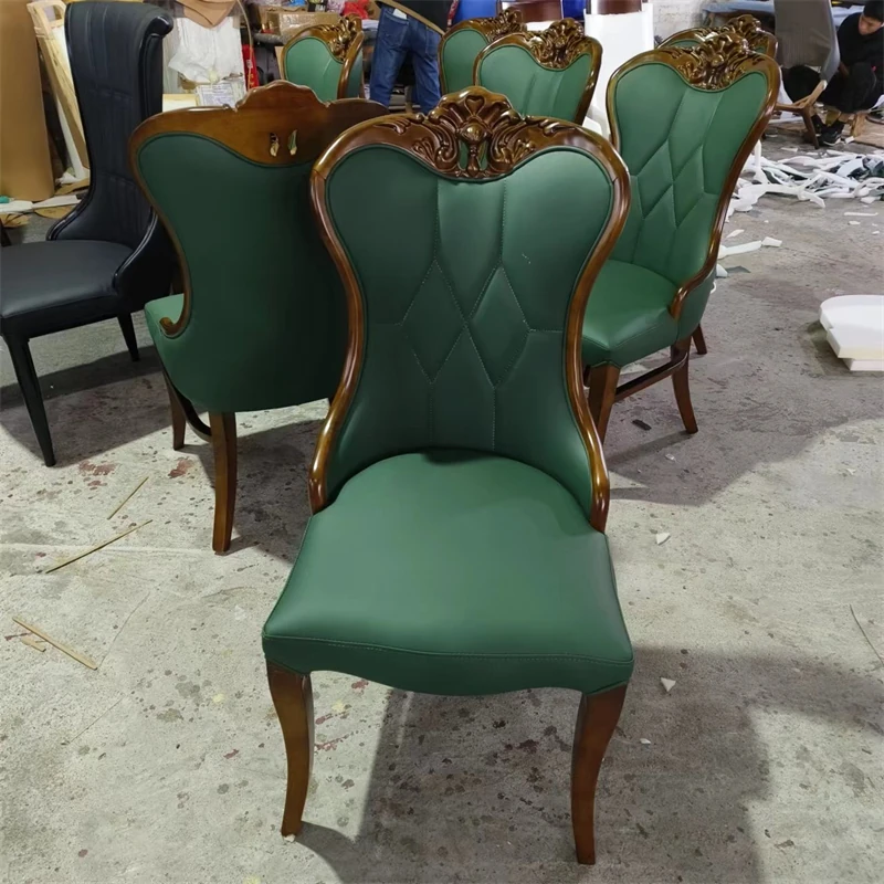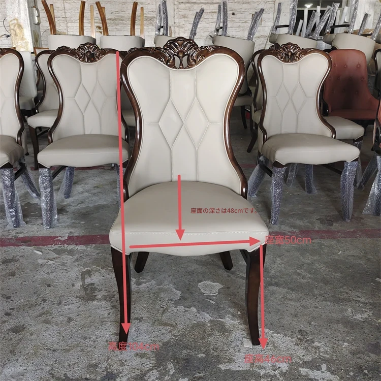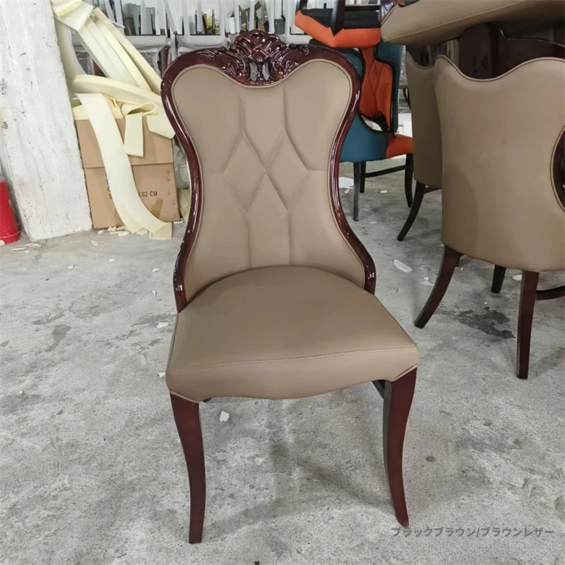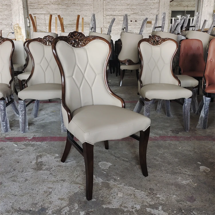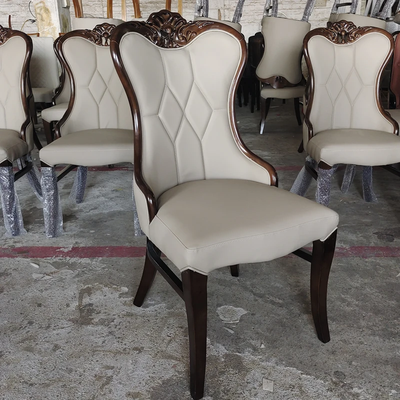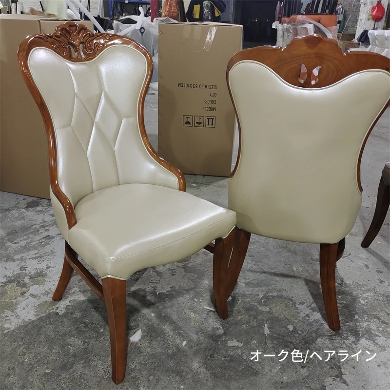高級アメリカンスタイル彫刻デザインのソフトバックレストダイニングチェア - 家庭やホテルの個室に最適なPUレザー使用の高級感あふれる椅子!