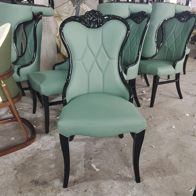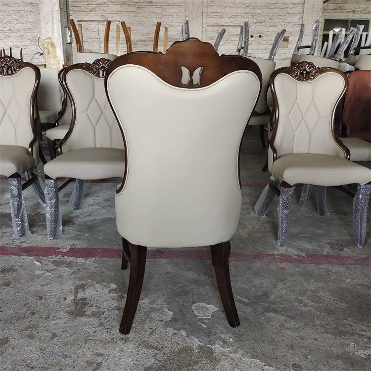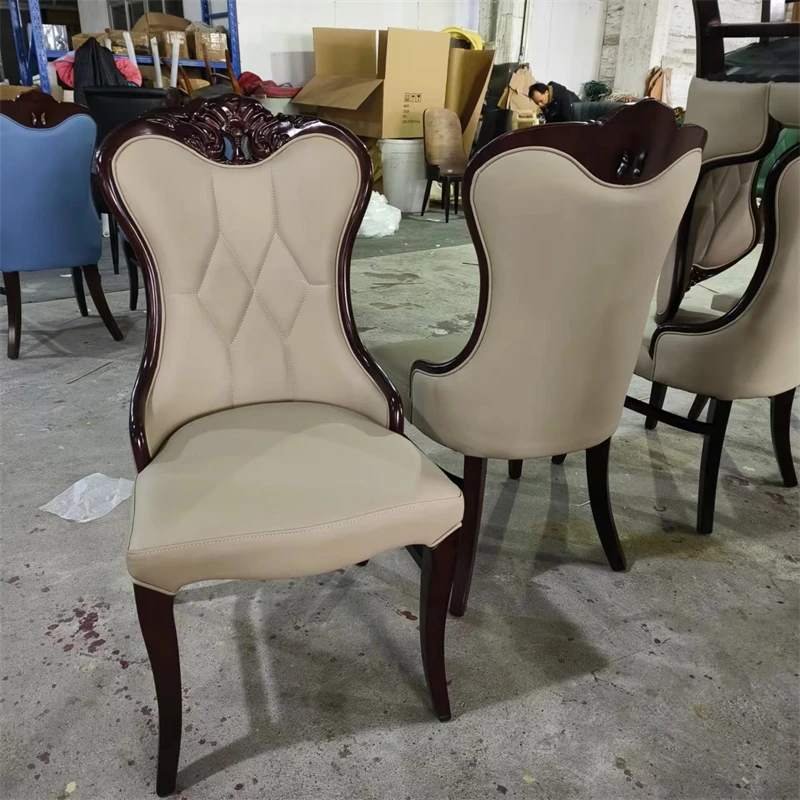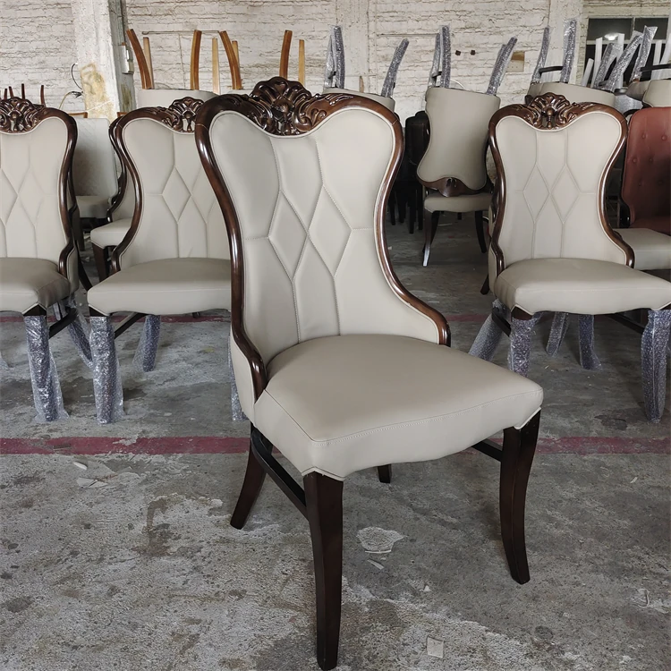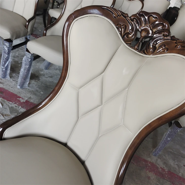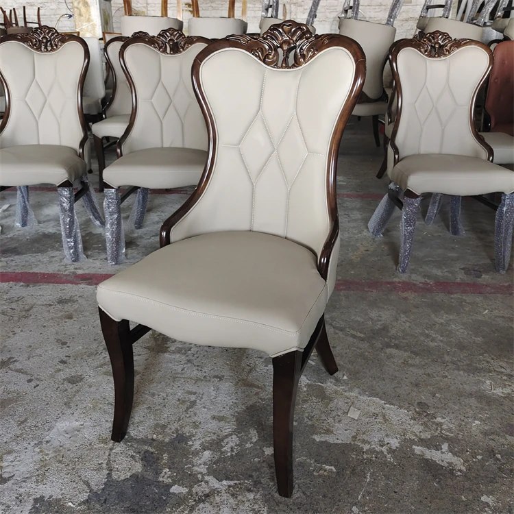 高級アメリカンスタイル彫刻デザインのソフトバックレストダイニングチェア - 家庭やホテルの個室に最適なPUレザー使用の高級感あふれる椅子!