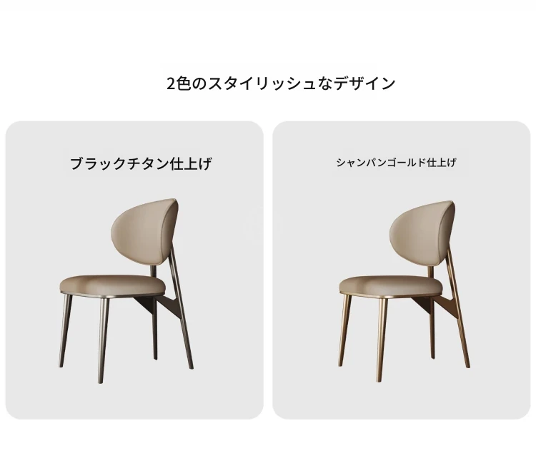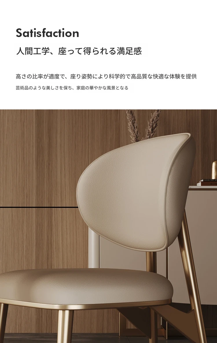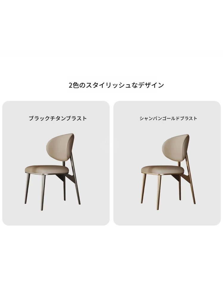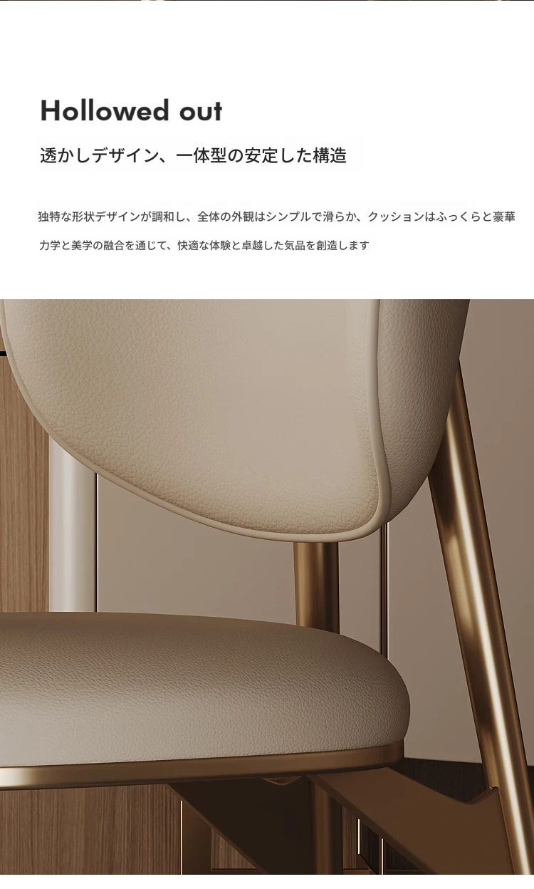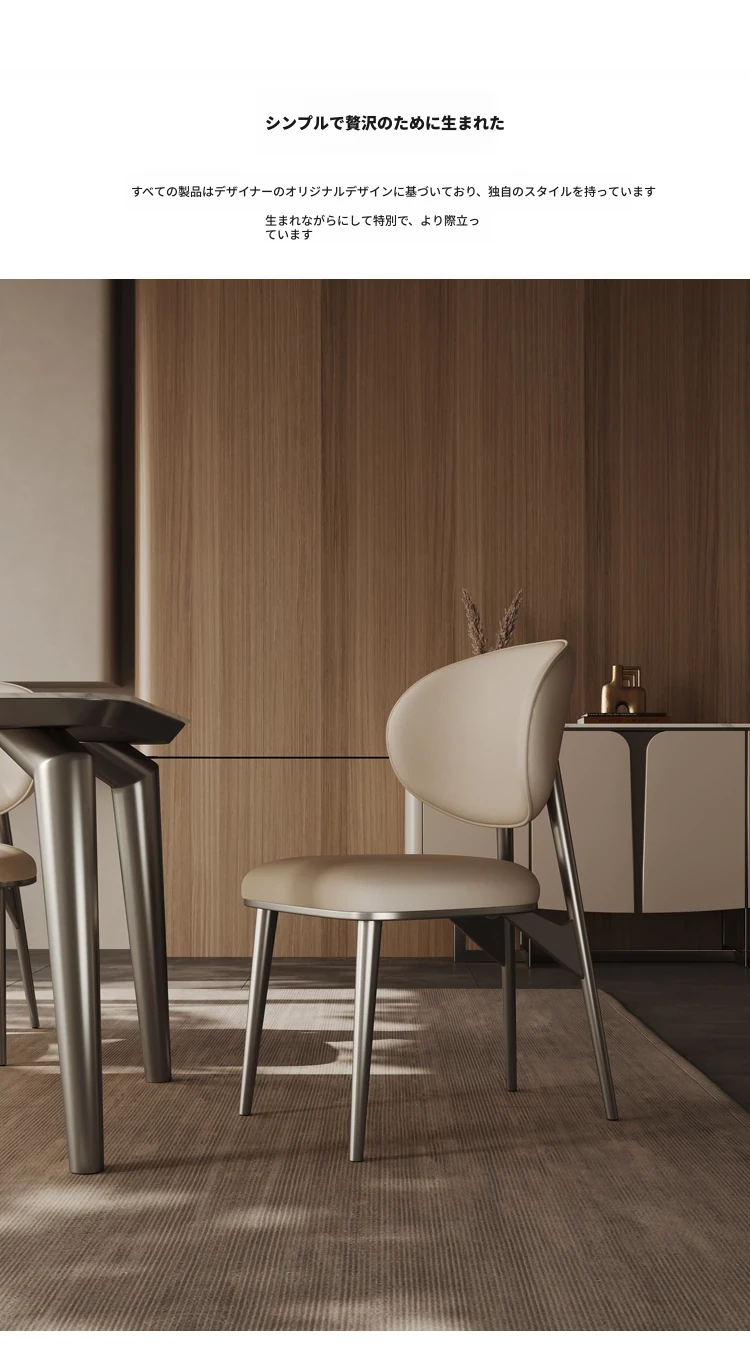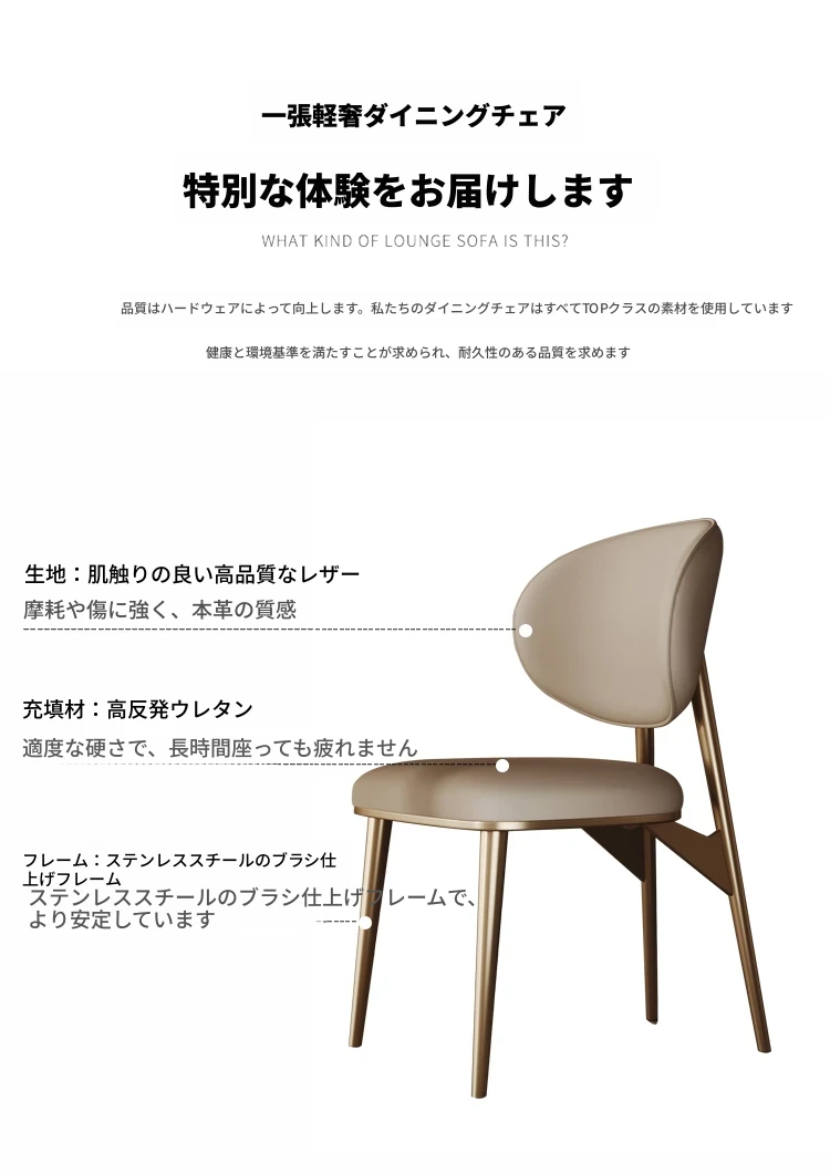 高級感溢れる軽奢ダイニングチェア|本革の牛革使用|コンパクト設計で小さなお部屋にも最適|スタイリッシュな背もたれとステンレス製脚部で現代的なシンプルさを演出!