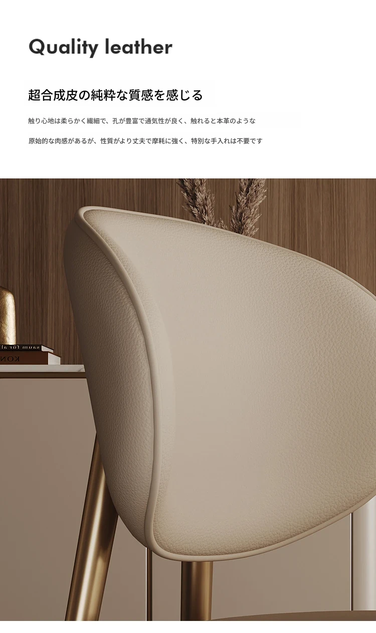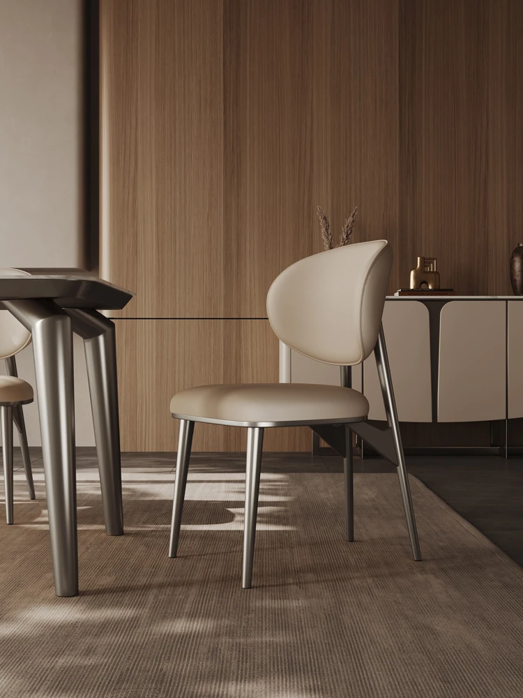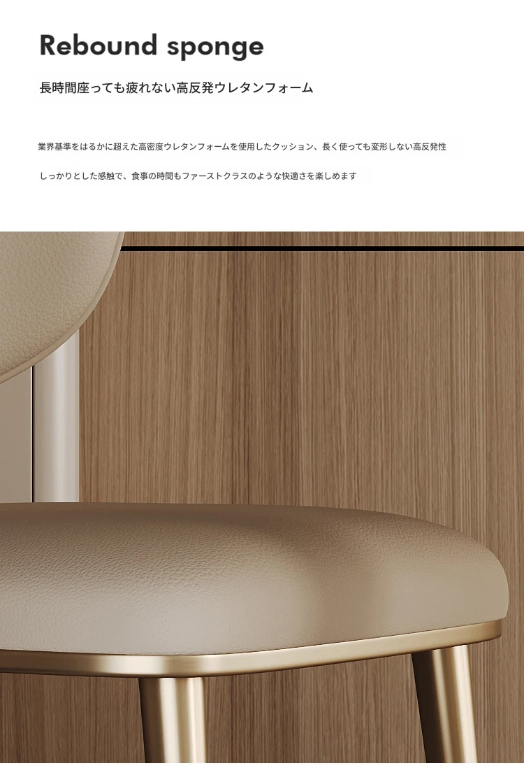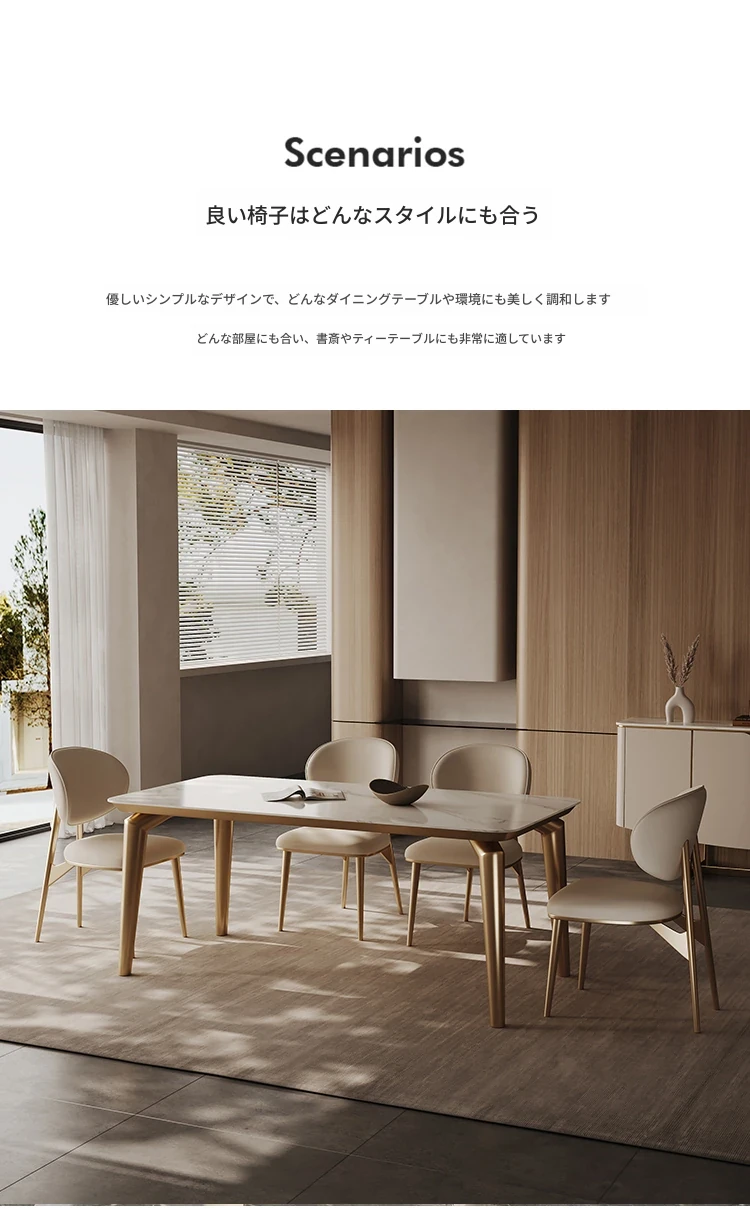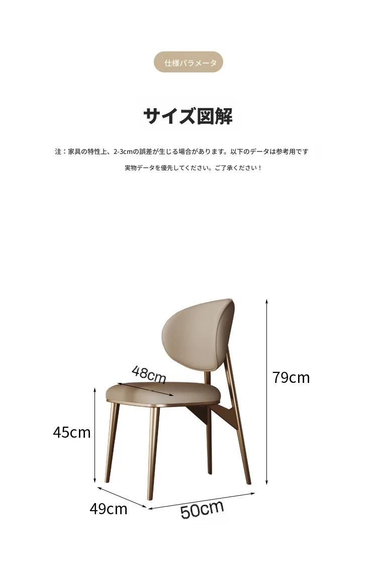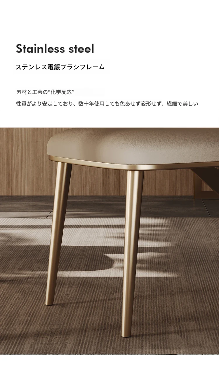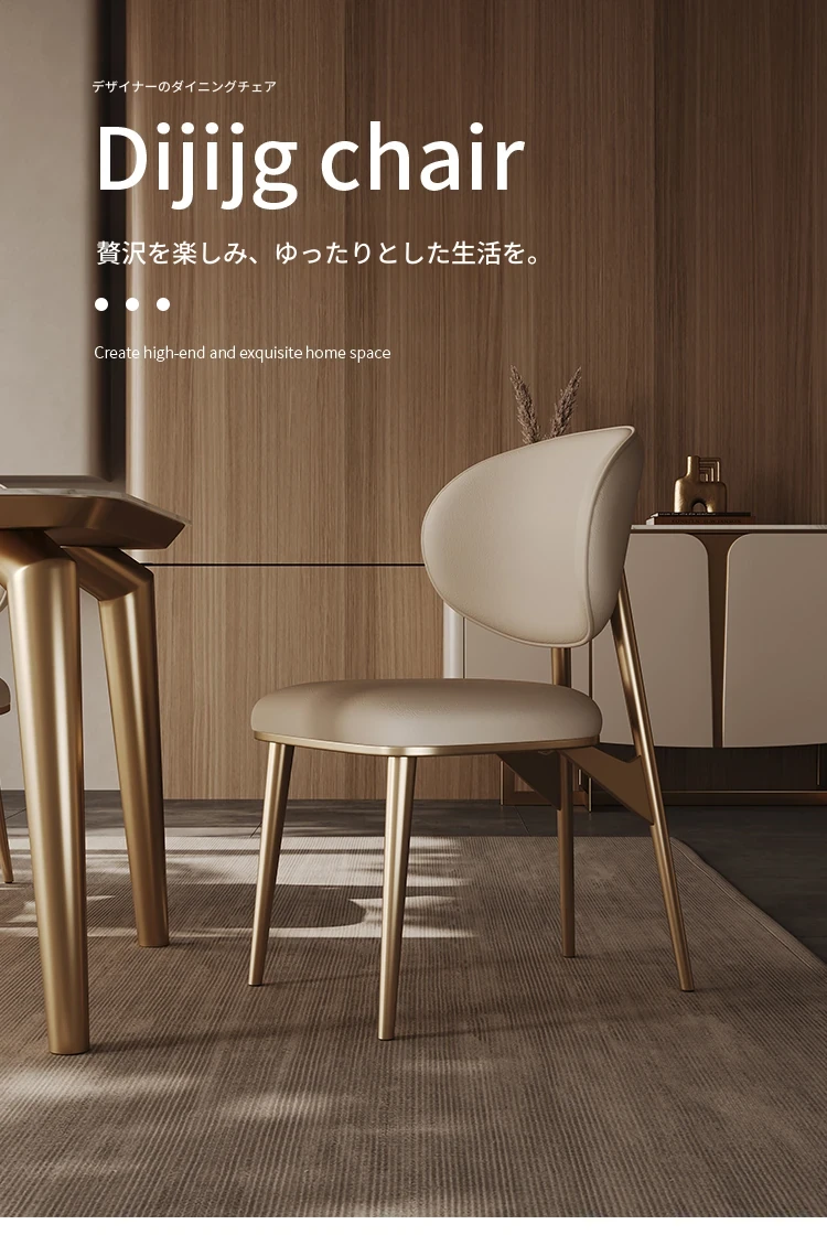 高級感溢れる軽奢ダイニングチェア|本革の牛革使用|コンパクト設計で小さなお部屋にも最適|スタイリッシュな背もたれとステンレス製脚部で現代的なシンプルさを演出!