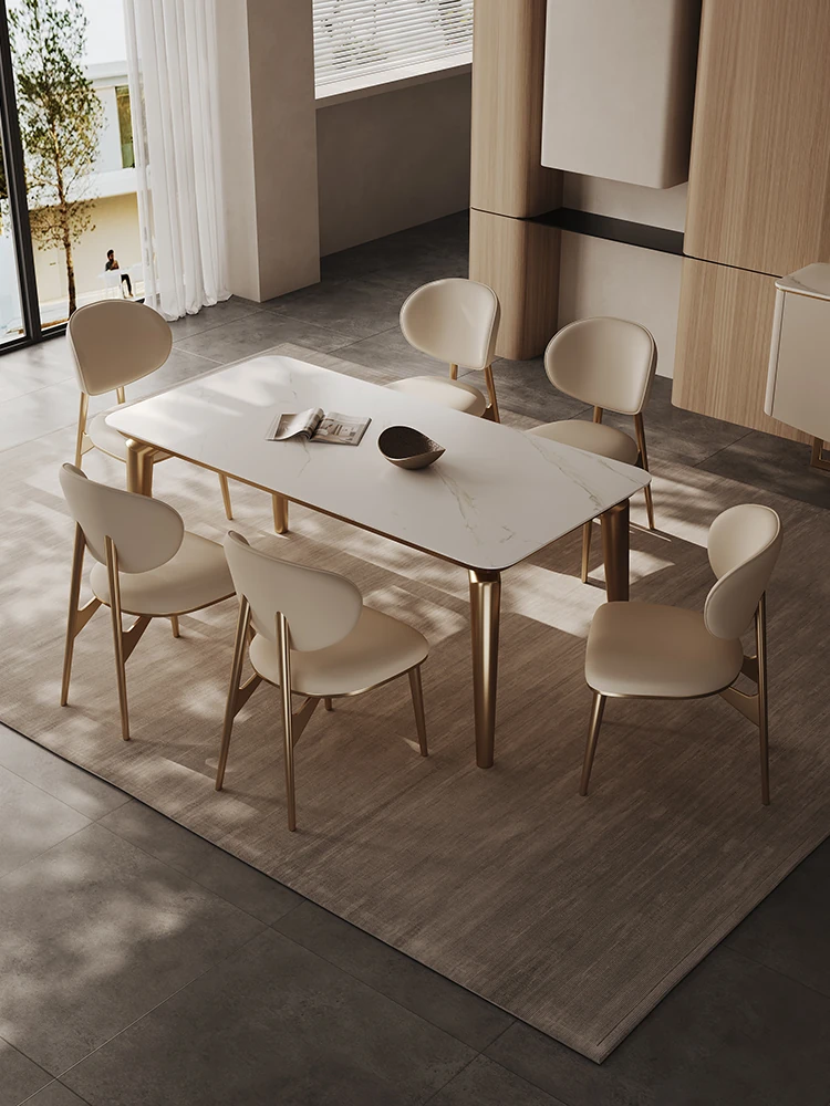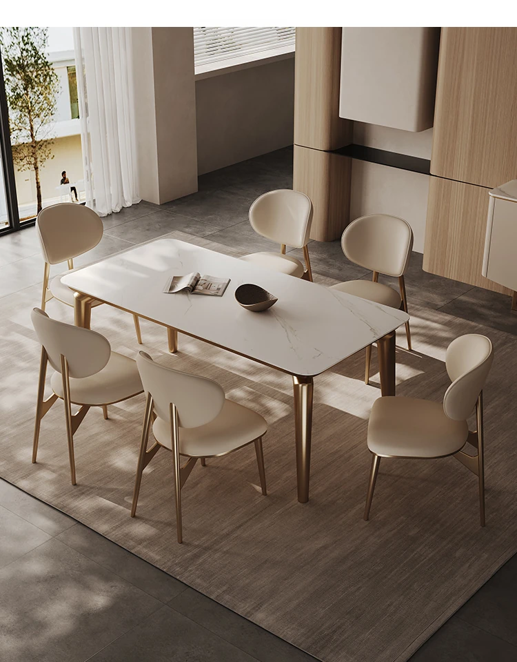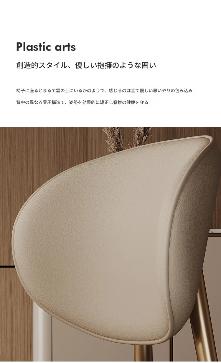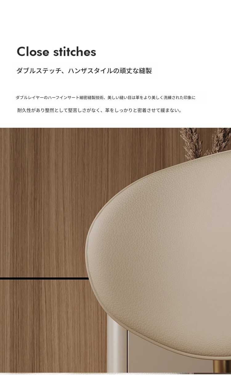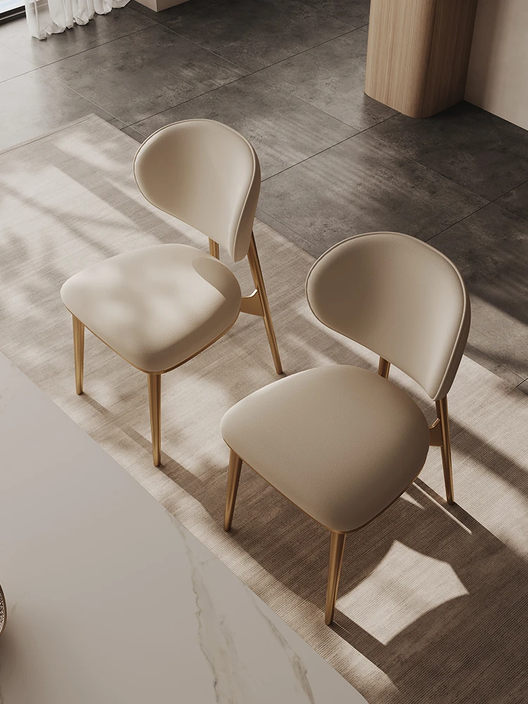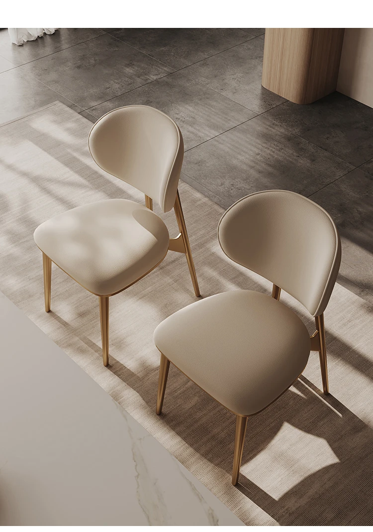 高級感溢れる軽奢ダイニングチェア|本革の牛革使用|コンパクト設計で小さなお部屋にも最適|スタイリッシュな背もたれとステンレス製脚部で現代的なシンプルさを演出!