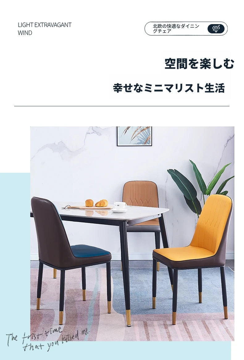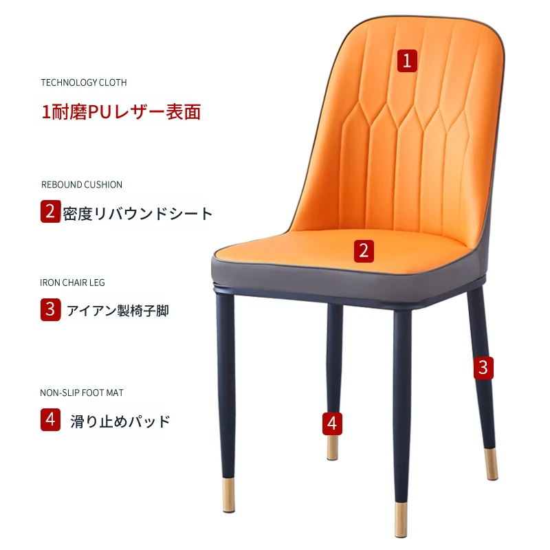 高級感溢れるレザーソフトパックダイニングチェア|厚手で頑丈、家庭でもホテルでも使える快適な背もたれ付き椅子|食卓に華やかさを添える一品!