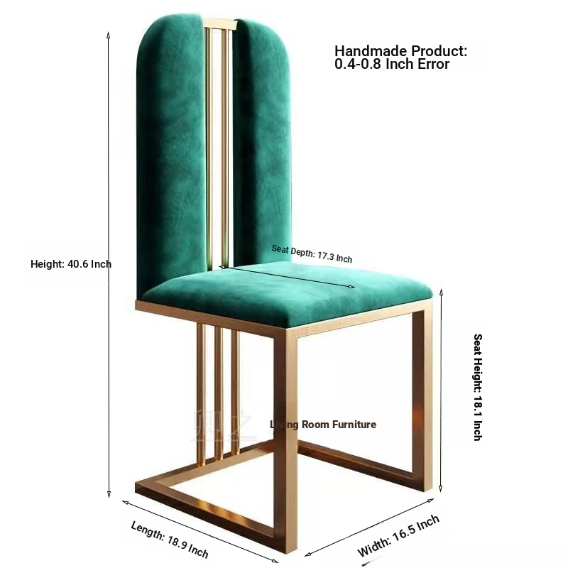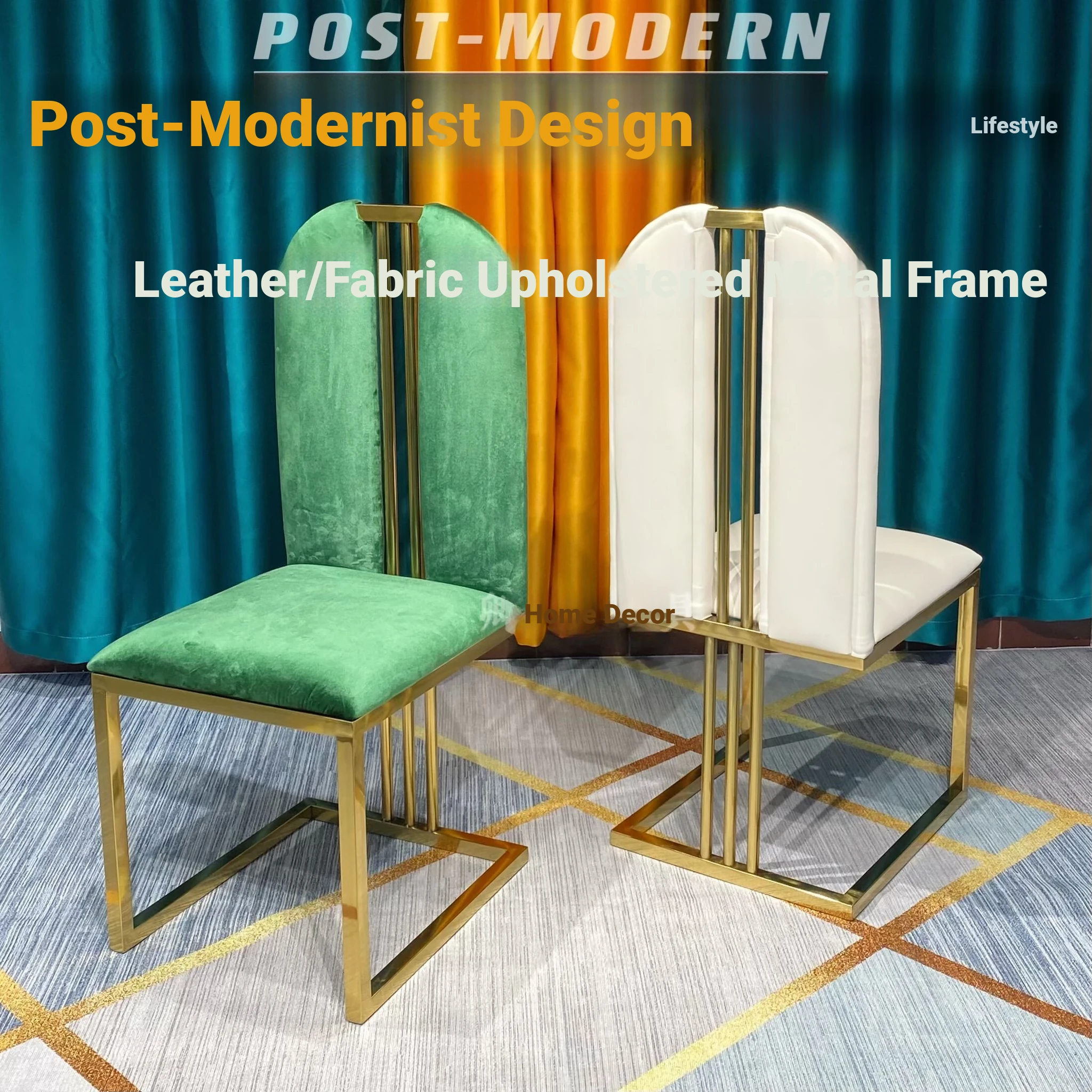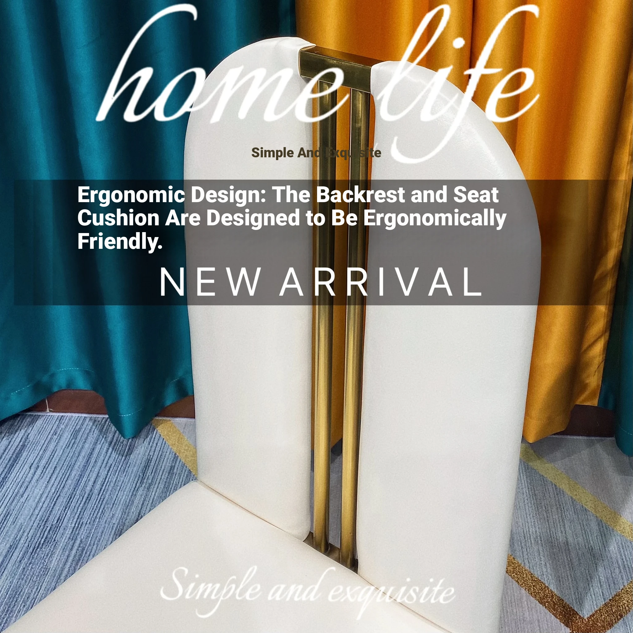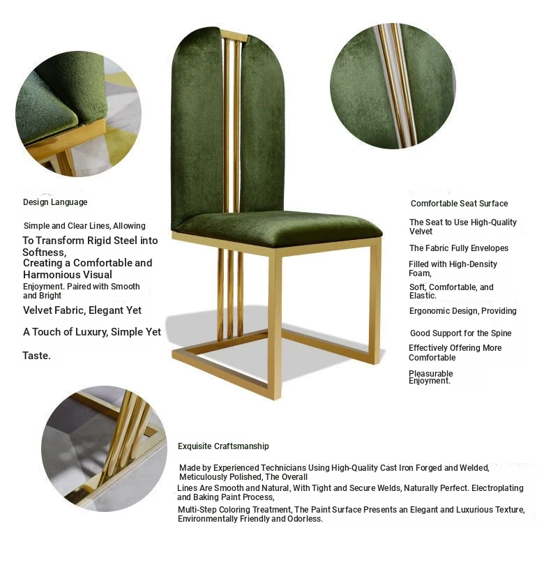 Luxury Stainless Steel Gold Fabric Dining Chair - Stylish and Elegant Design for Creative Cafés and Home Use, Featuring Comfortable Backrest and Ultra-Fine Leather Upholstery.