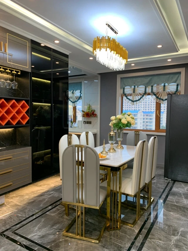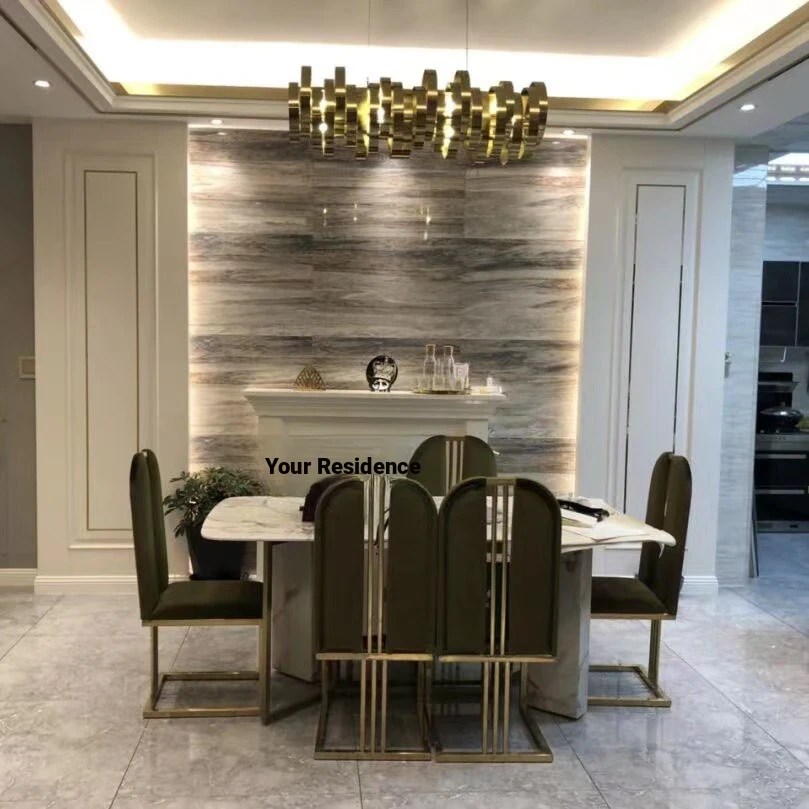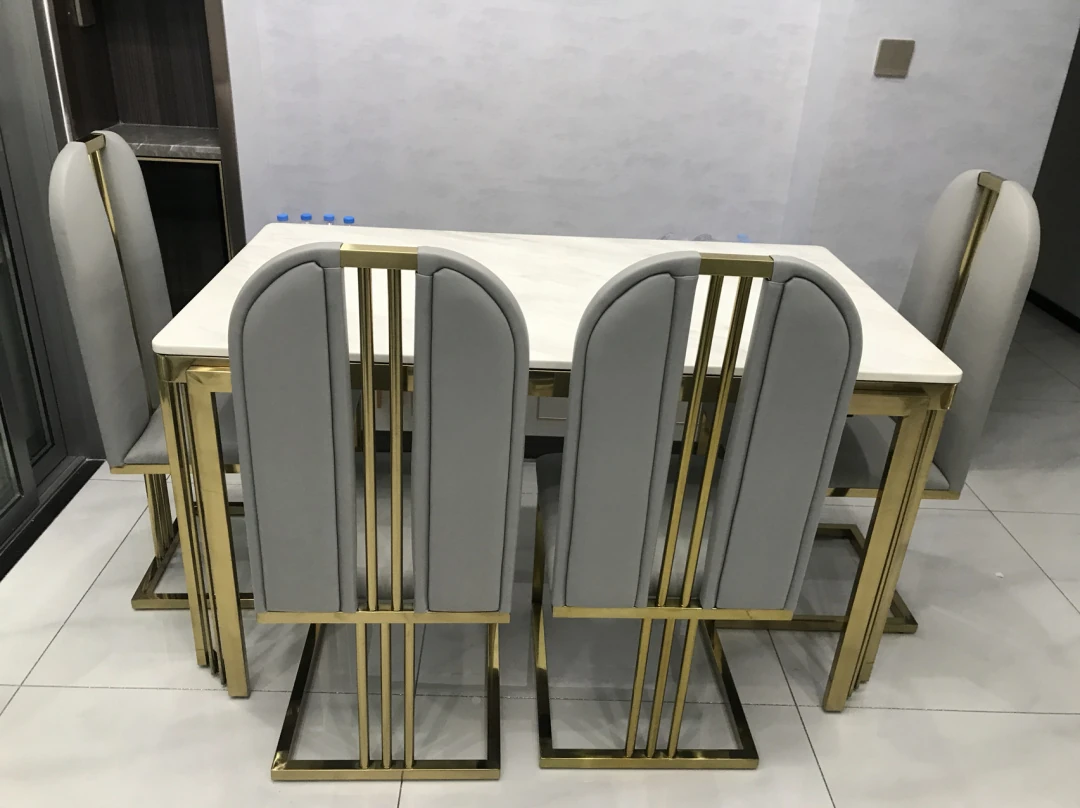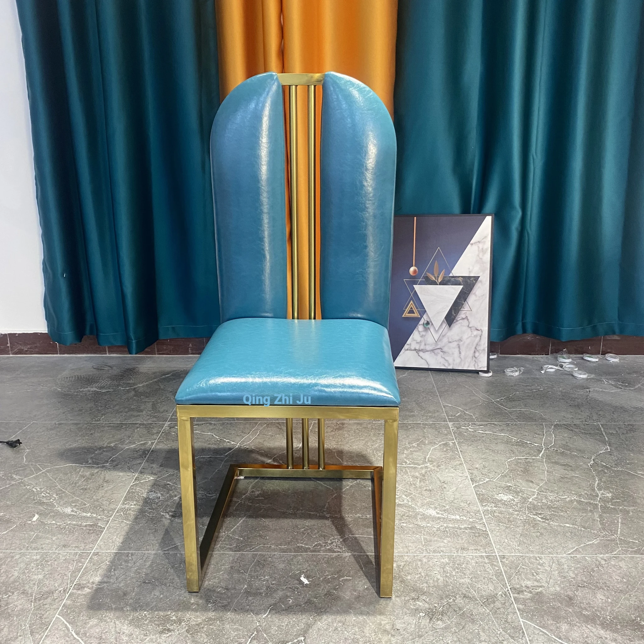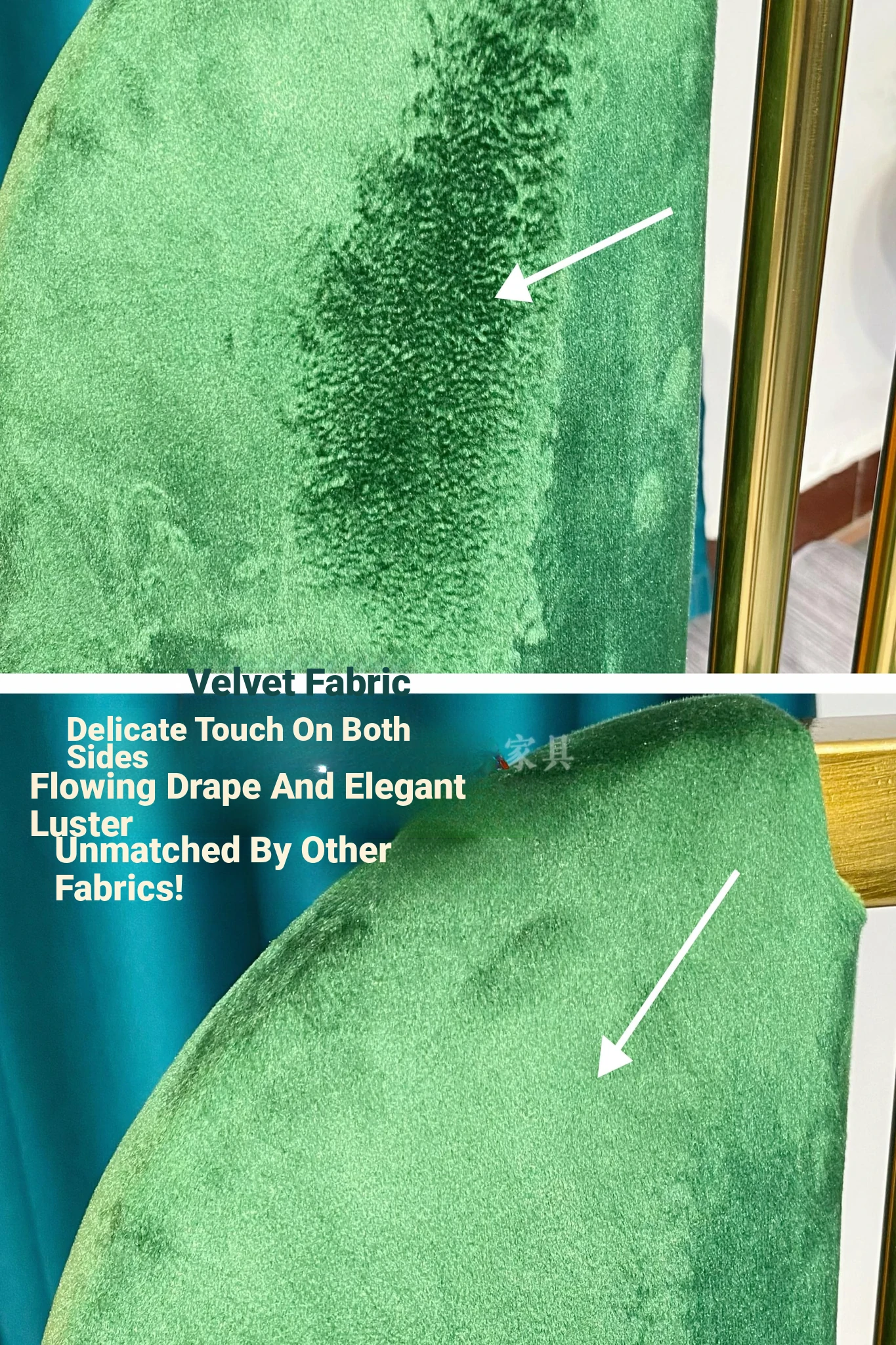 Luxury Stainless Steel Gold Fabric Dining Chair - Stylish and Elegant Design for Creative Cafés and Home Use, Featuring Comfortable Backrest and Ultra-Fine Leather Upholstery.