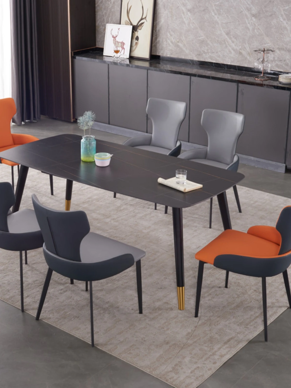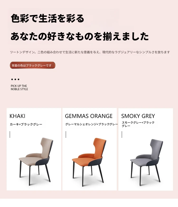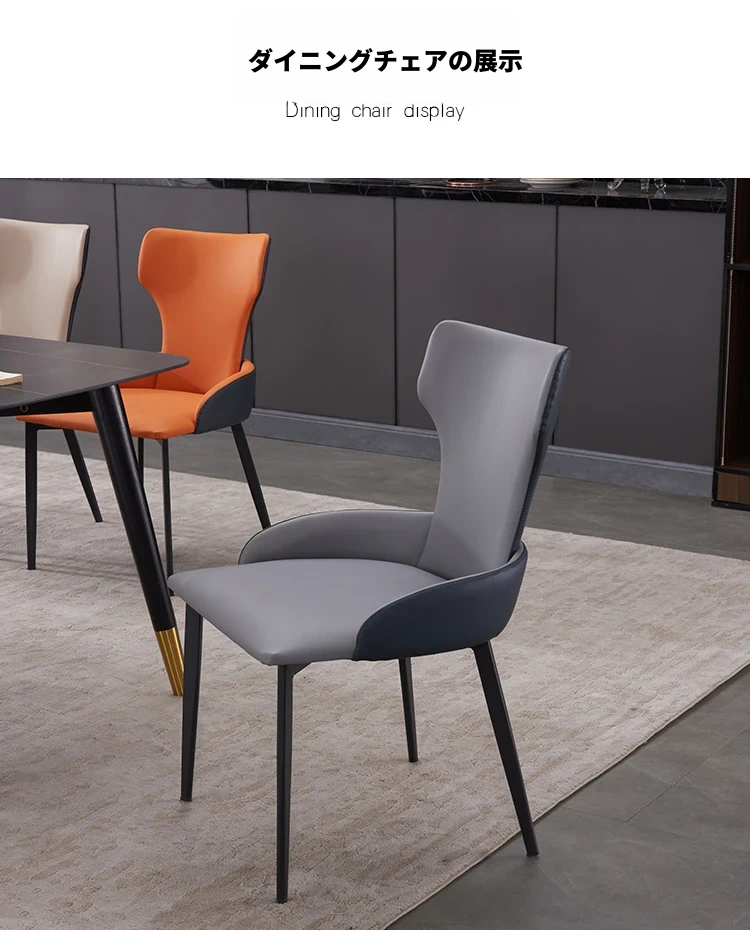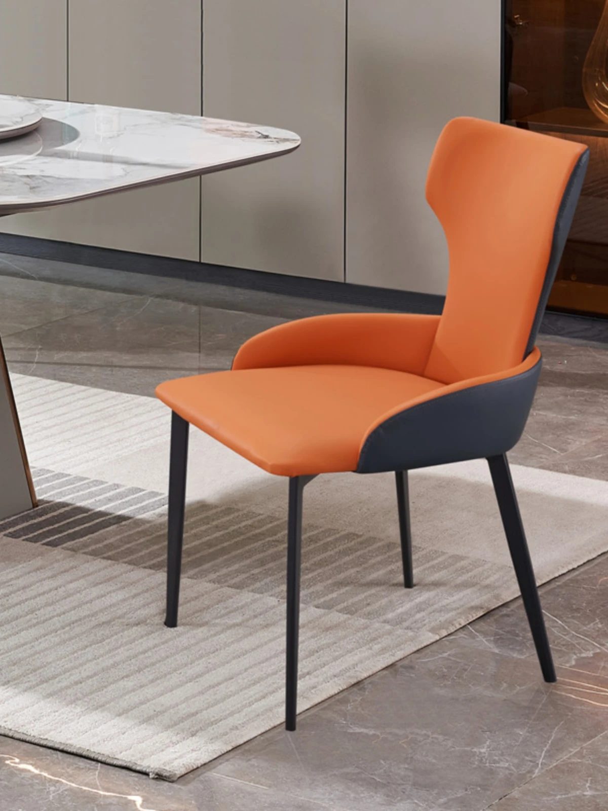 魅力的なミニマリストデザイン!媚奇のオレンジ色の家庭用ダイニングチェア - イタリアンスタイルのラグジュアリーな背もたれ付きで、北欧風の洗練された雰囲気を演出します。おしゃれで快適なひとときをお楽しみください!
