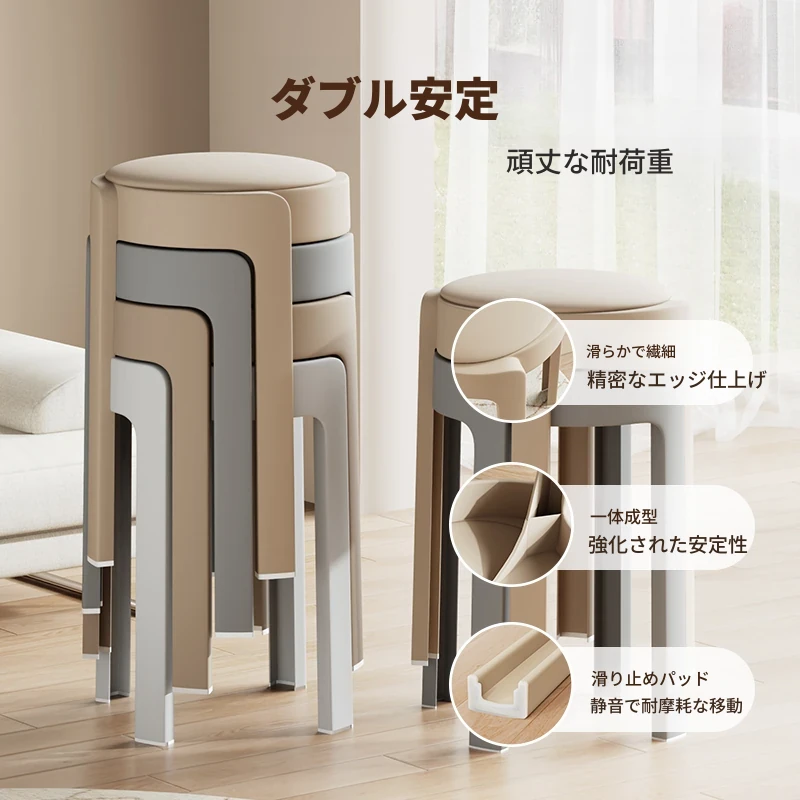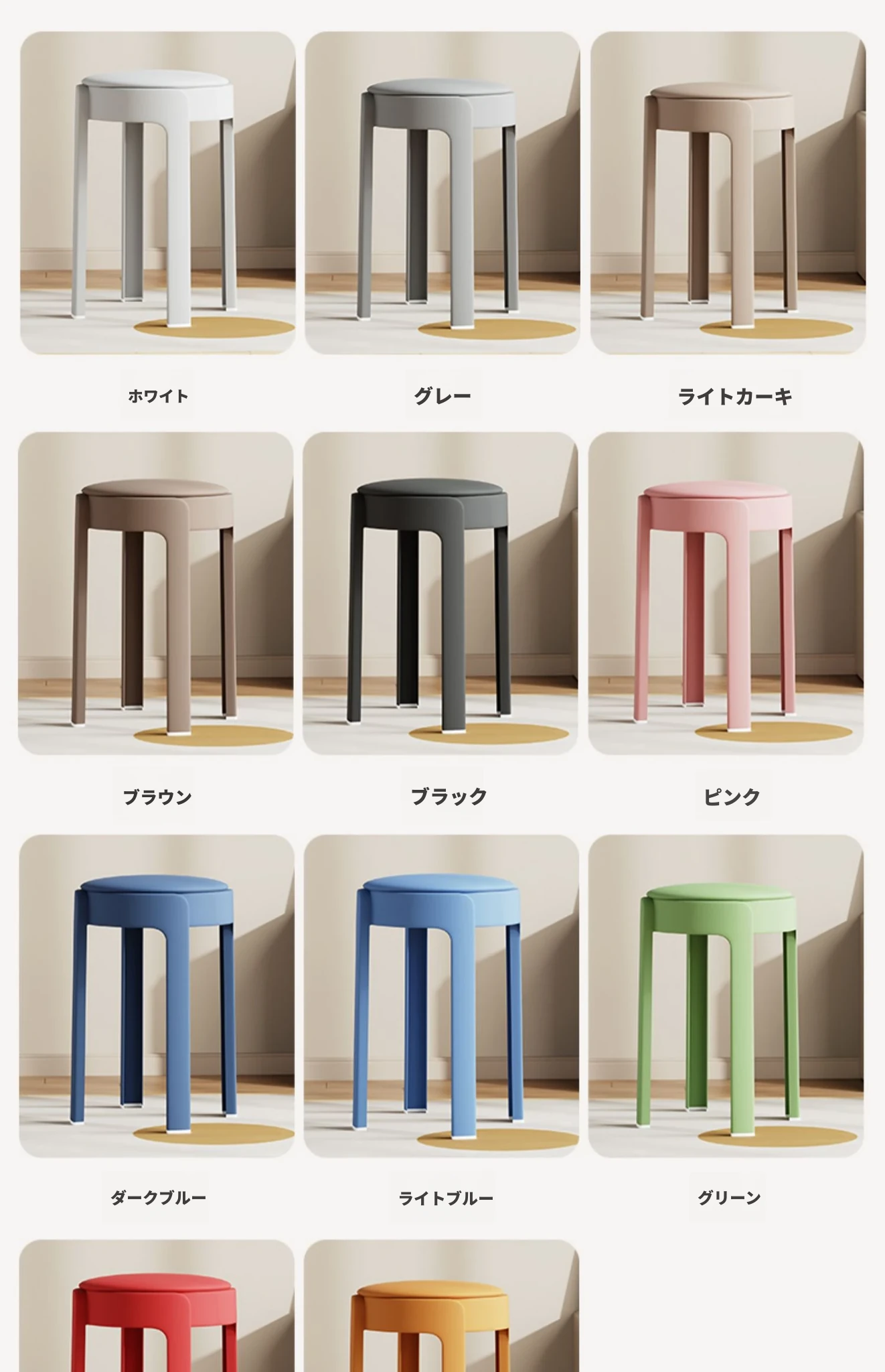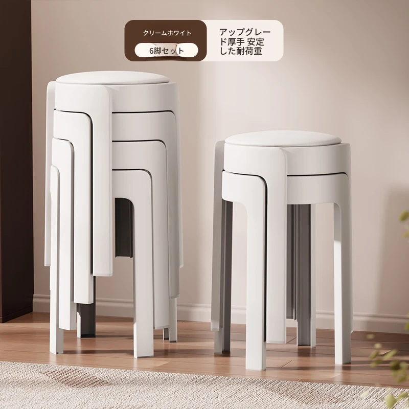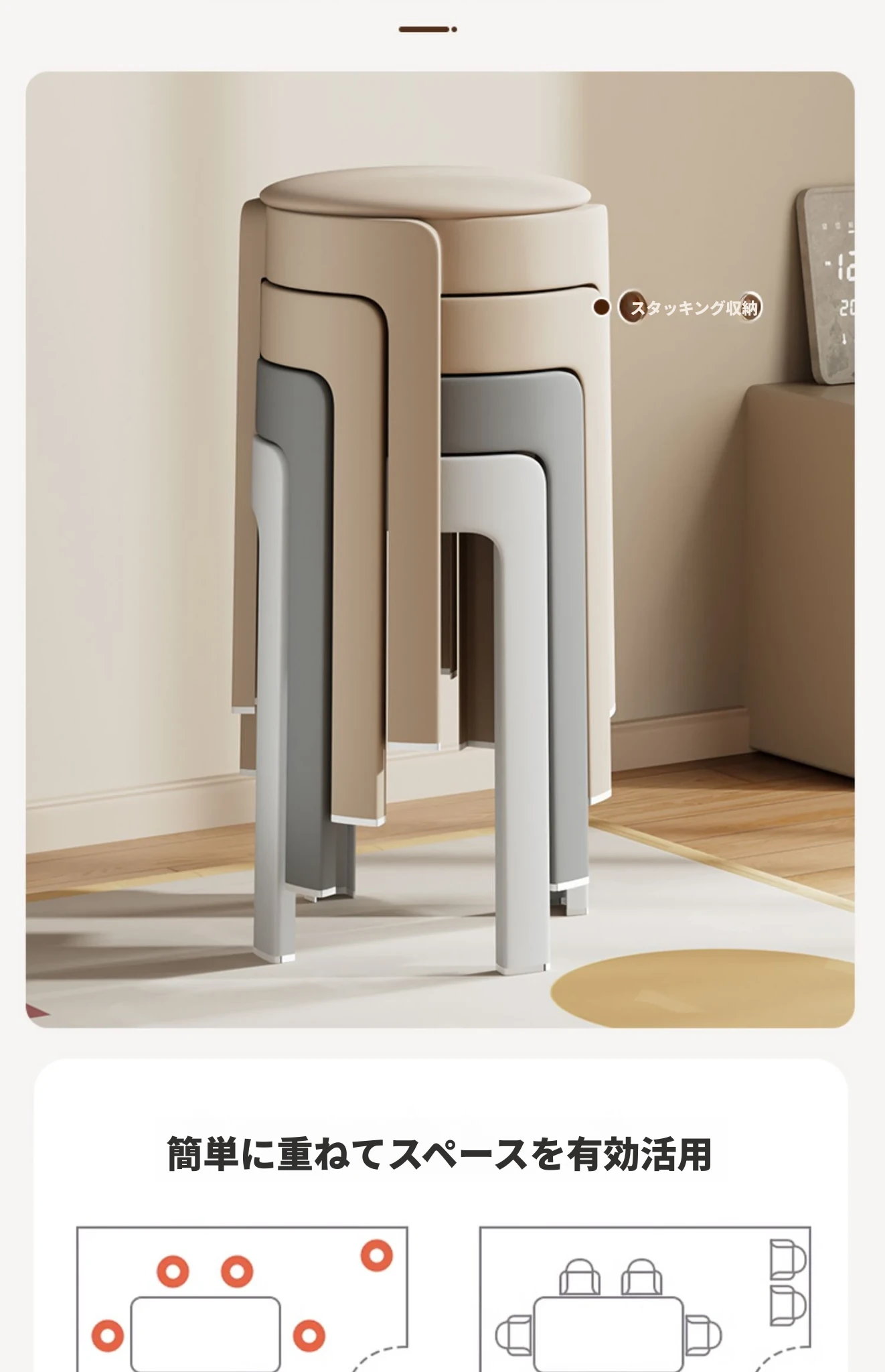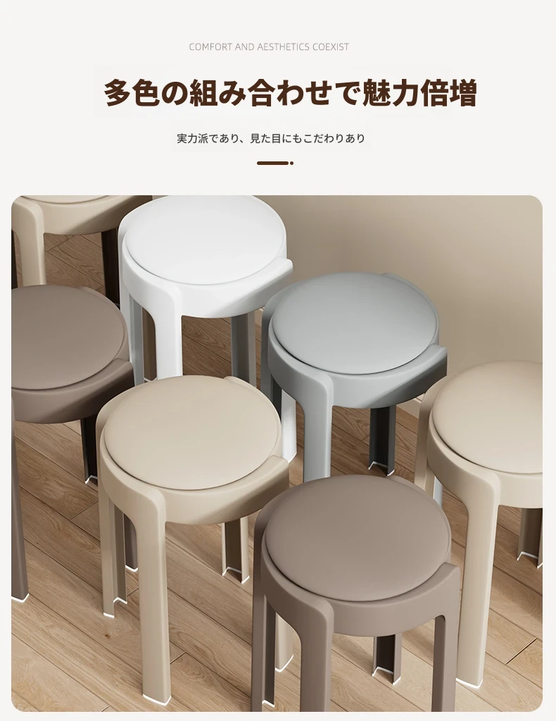 メラードソフトパック旋風プラスチックスツール|スタッキング可能で家庭用に最適!丈夫で耐久性抜群のダイニングチェア、寝室用の補助スツールとしても大活躍!