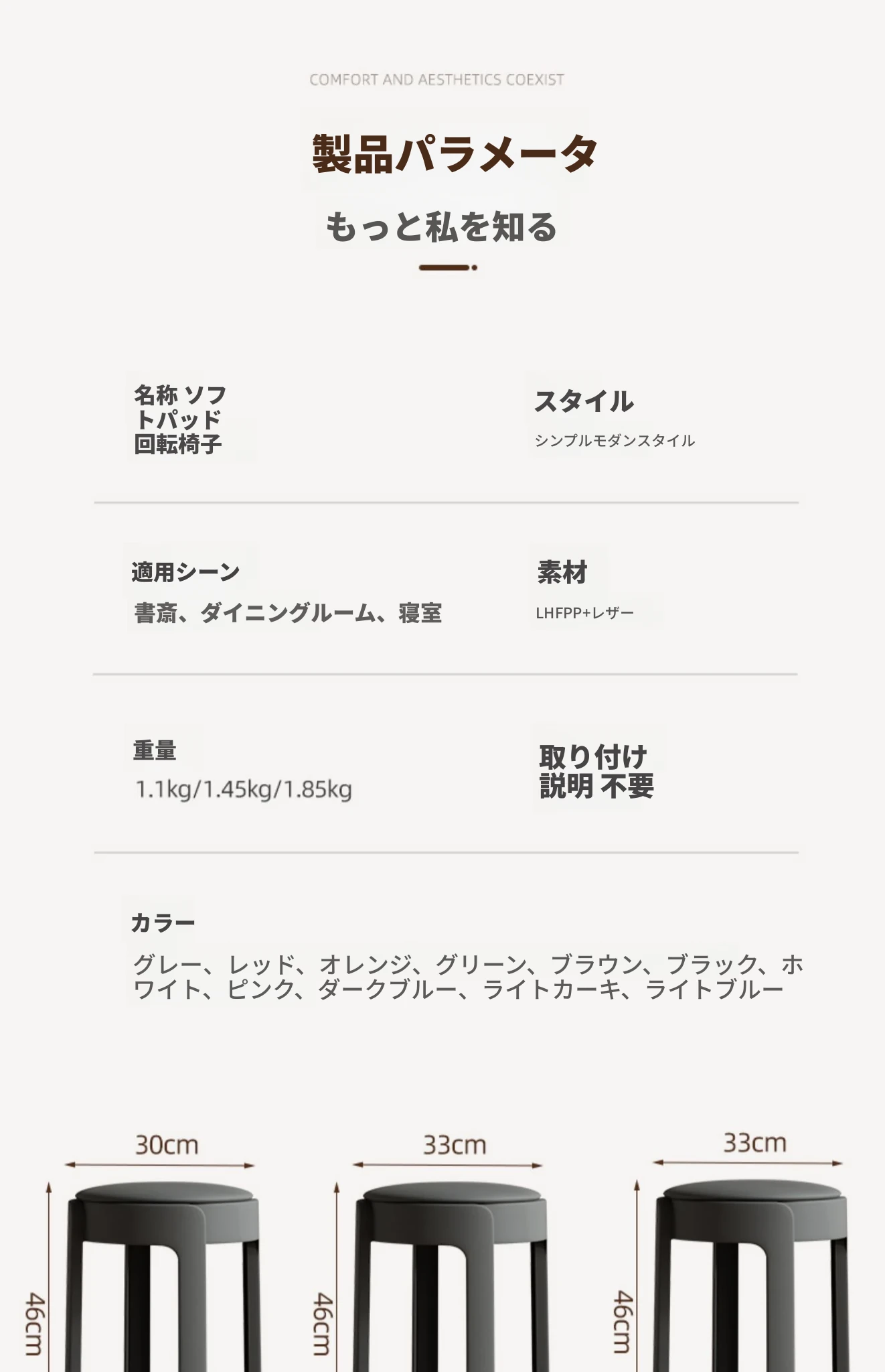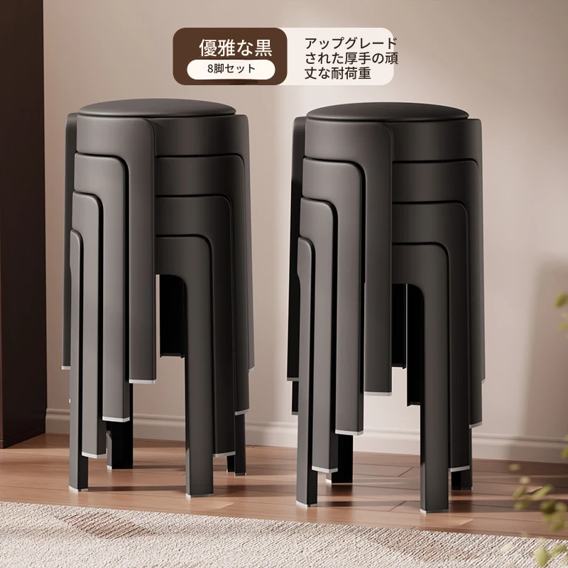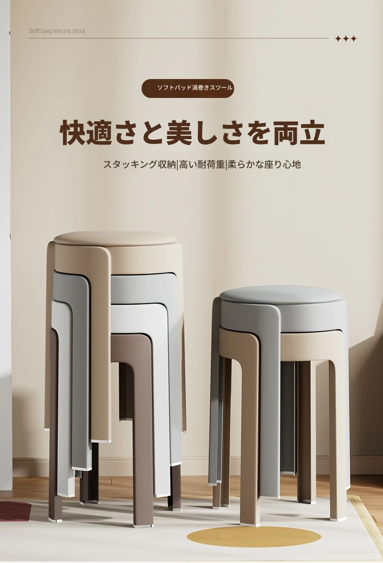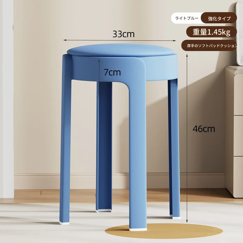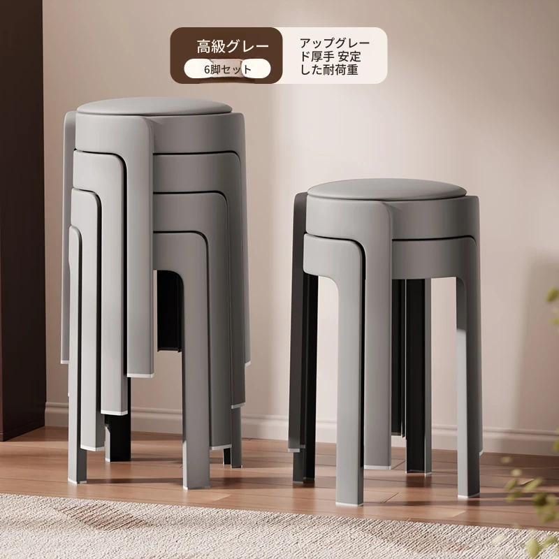 メラードソフトパック旋風プラスチックスツール|スタッキング可能で家庭用に最適!丈夫で耐久性抜群のダイニングチェア、寝室用の補助スツールとしても大活躍!