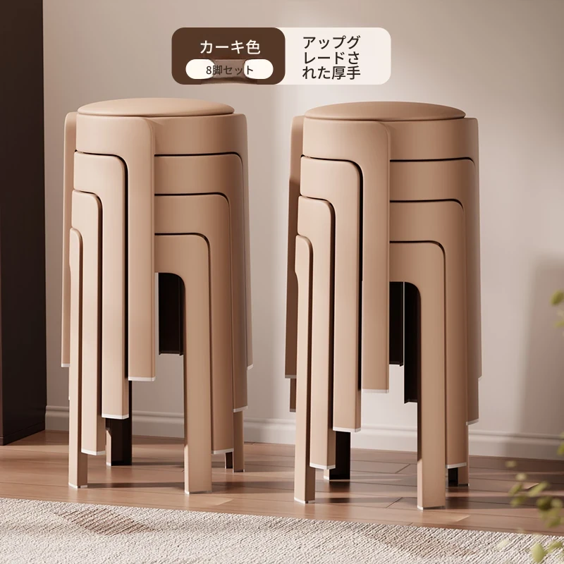 重量1.45KG⭐8個セット・ライトカーキ【厚めのソフトパッドクッション お尻がとても快適】