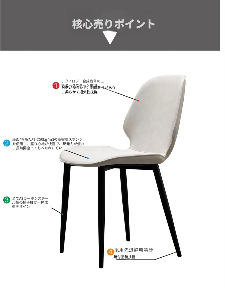 魅力溢れる軽奢食卓椅子!後現代的でミニマルなデザイン、北欧スタイルのダイニングにぴったり。シェルレザーを使用した快適な背もたれで、カフェや家庭での食事を一層特別に。