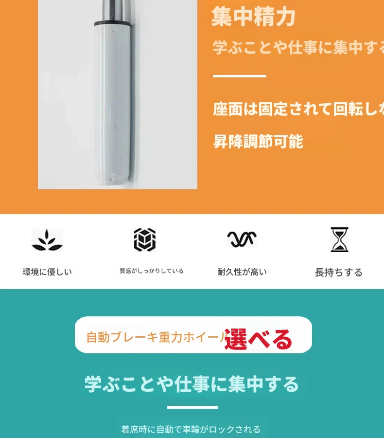 カラー選択可-キャットスクラッチ皮(オートブレーキキャスター+回転しない昇降棒+防爆ホワイト脚)