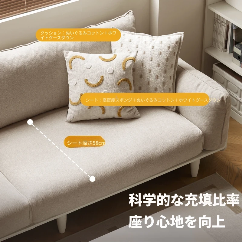 【魅力新品】源氏木语xウィサ全無垢材ソファー - クリーム風ホワイトファブリック♪ モダンな4人掛けの直線配置で、上品で快適な空間を演出!