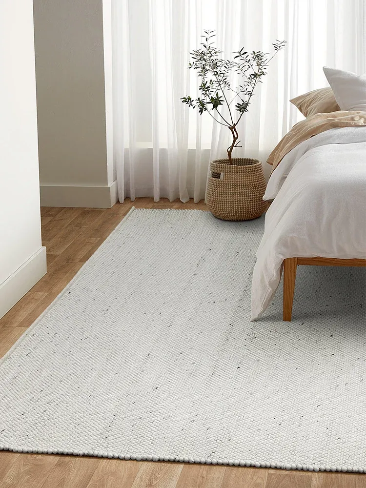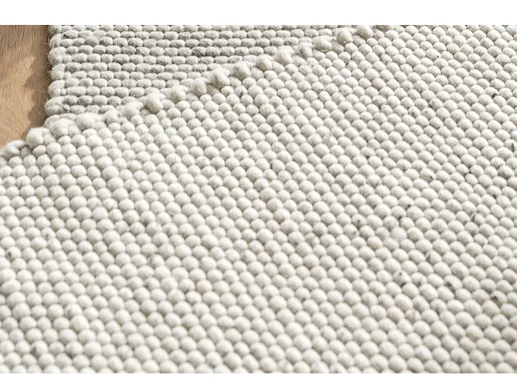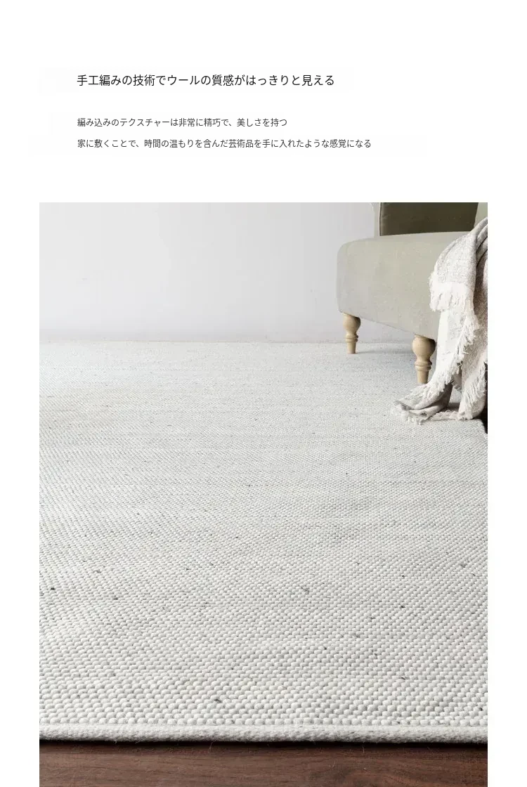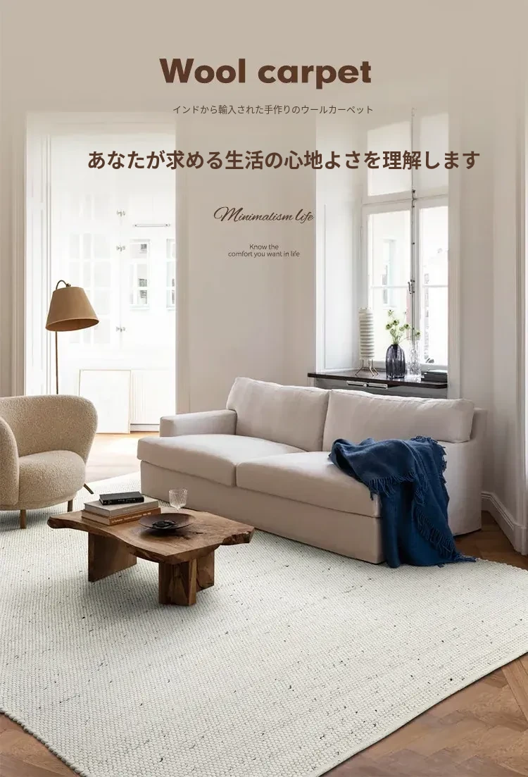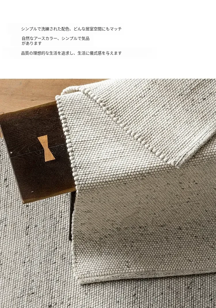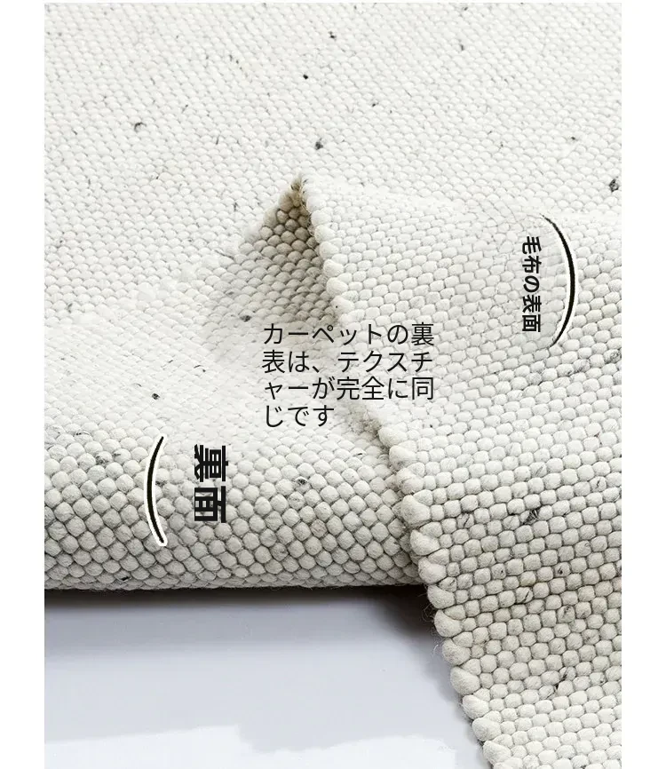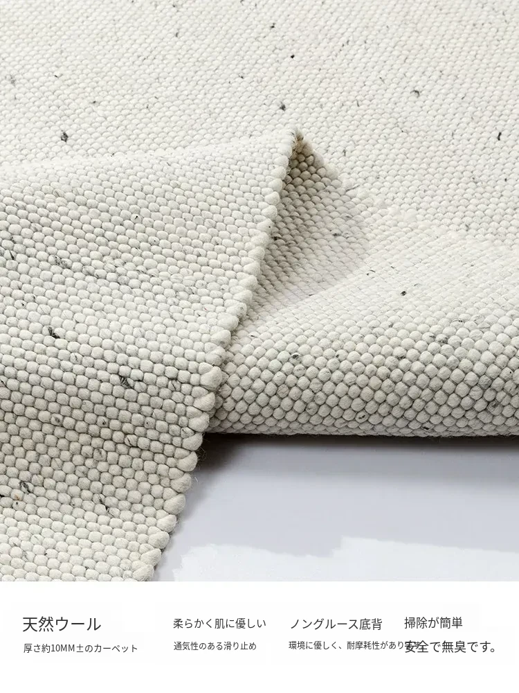 視覚と味覚を刺激するノーグルーのホワイトカーペット!モダンなウール製、手作りの和風デザイン。おしゃれなリビングや寝室にぴったりなインスタ映えするクリーム色のベッドサイドマット。