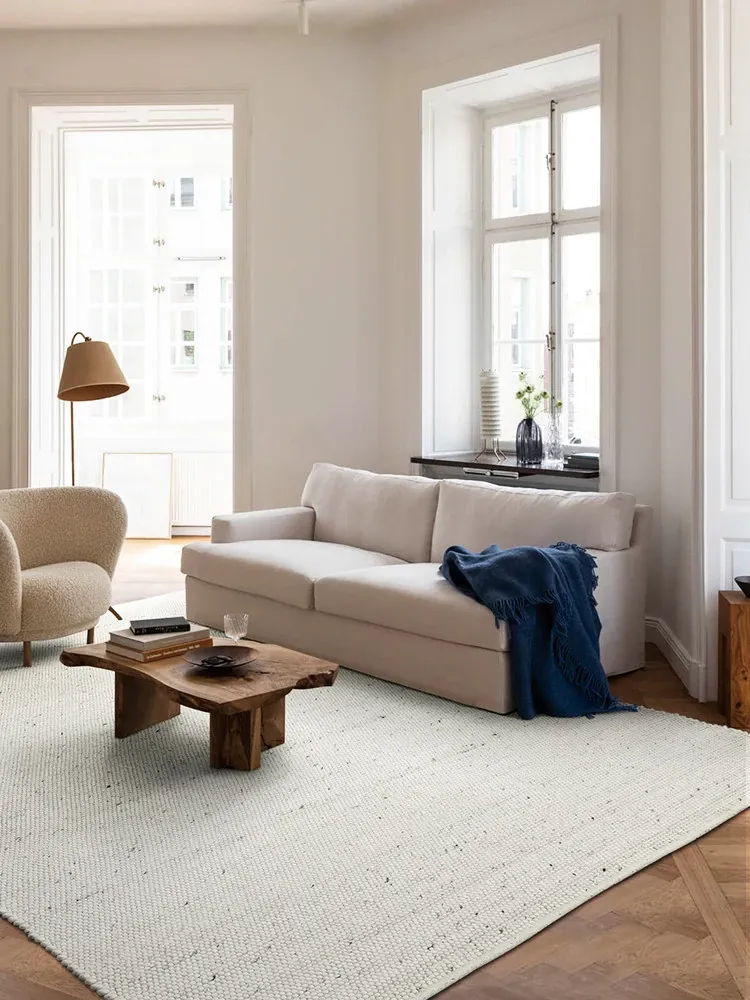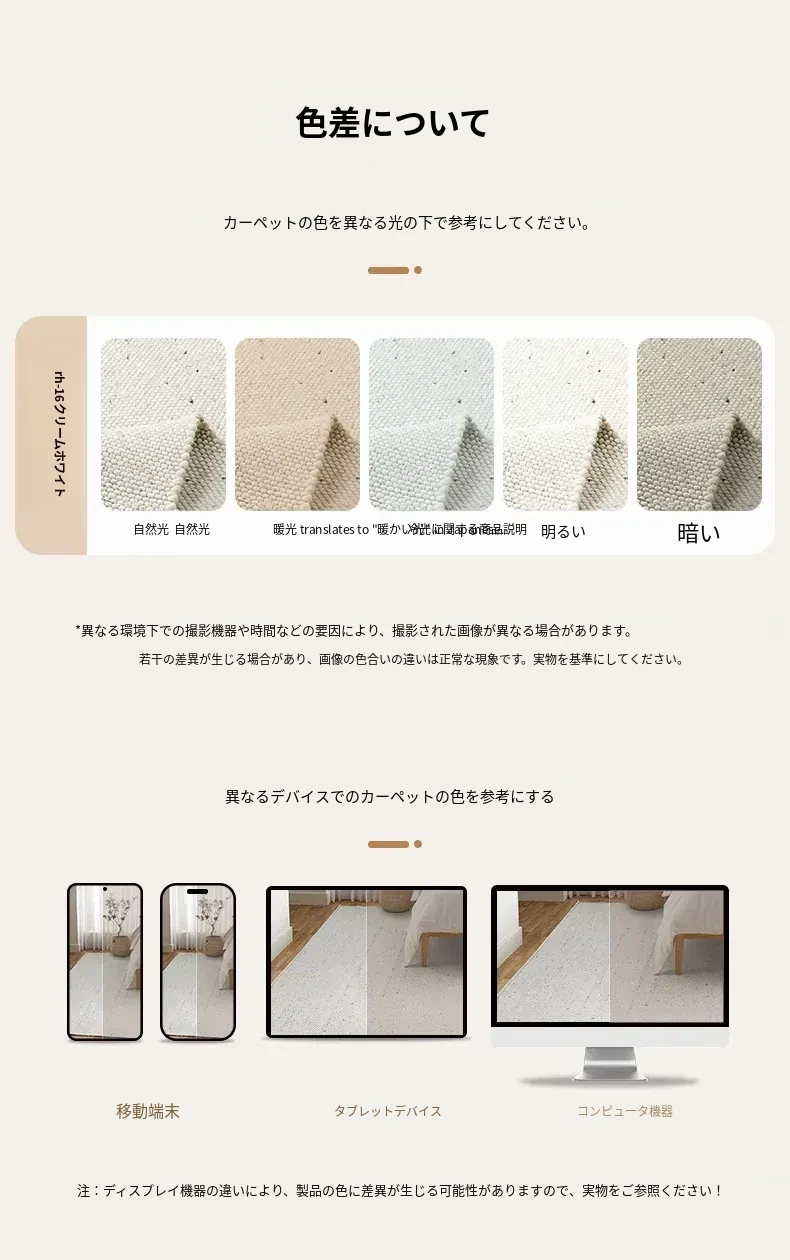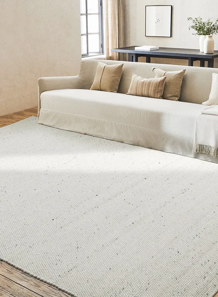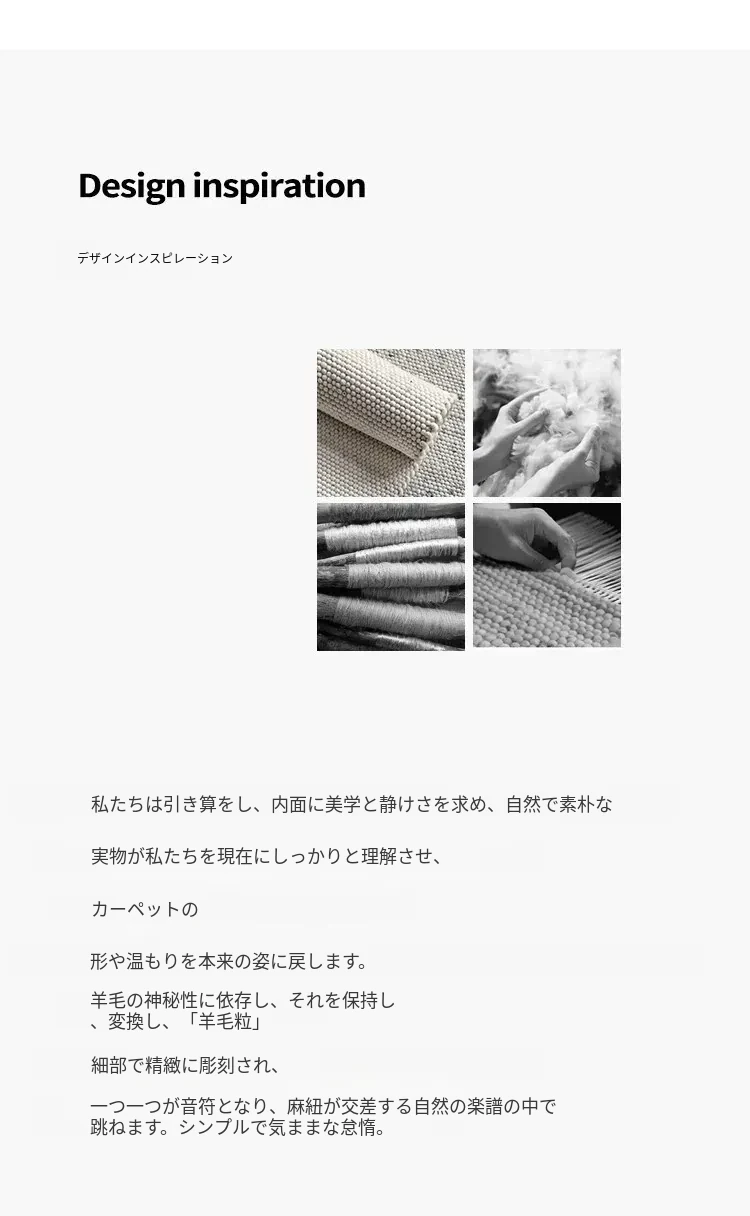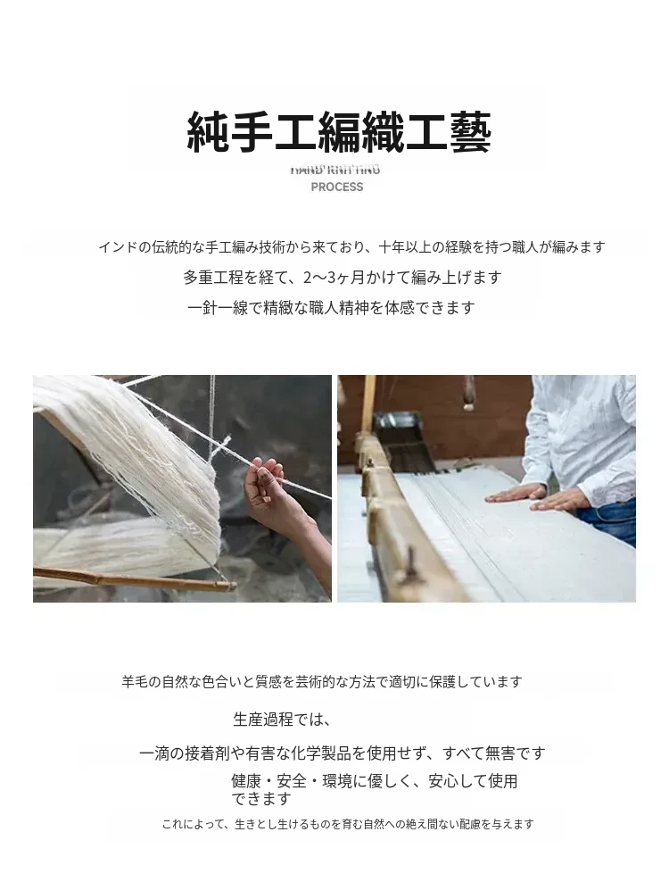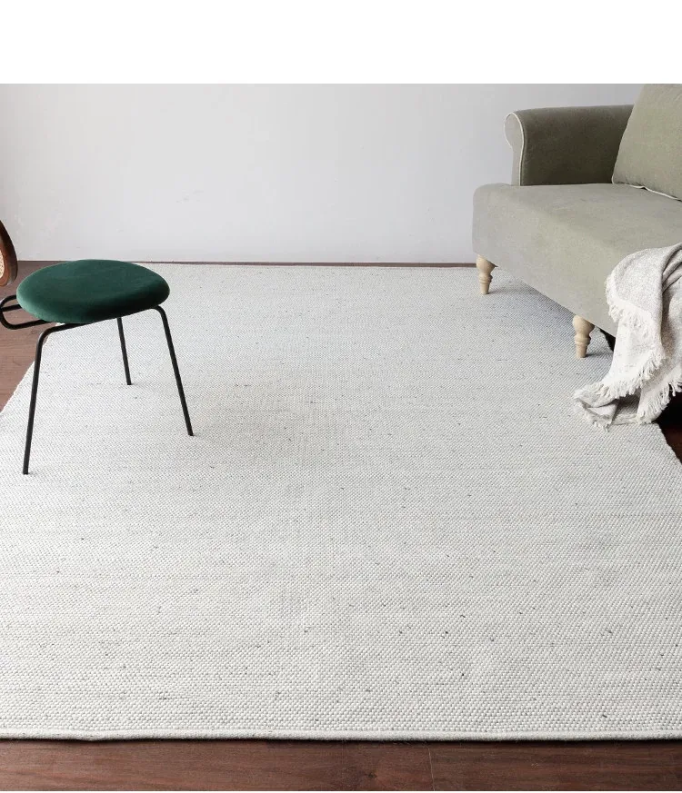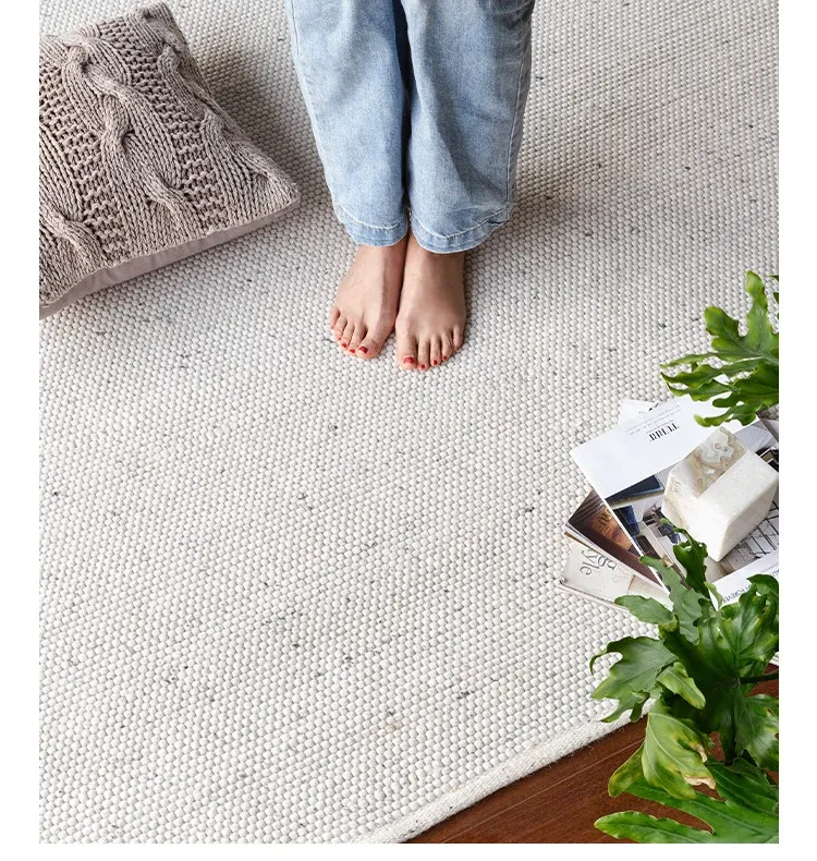 視覚と味覚を刺激するノーグルーのホワイトカーペット!モダンなウール製、手作りの和風デザイン。おしゃれなリビングや寝室にぴったりなインスタ映えするクリーム色のベッドサイドマット。