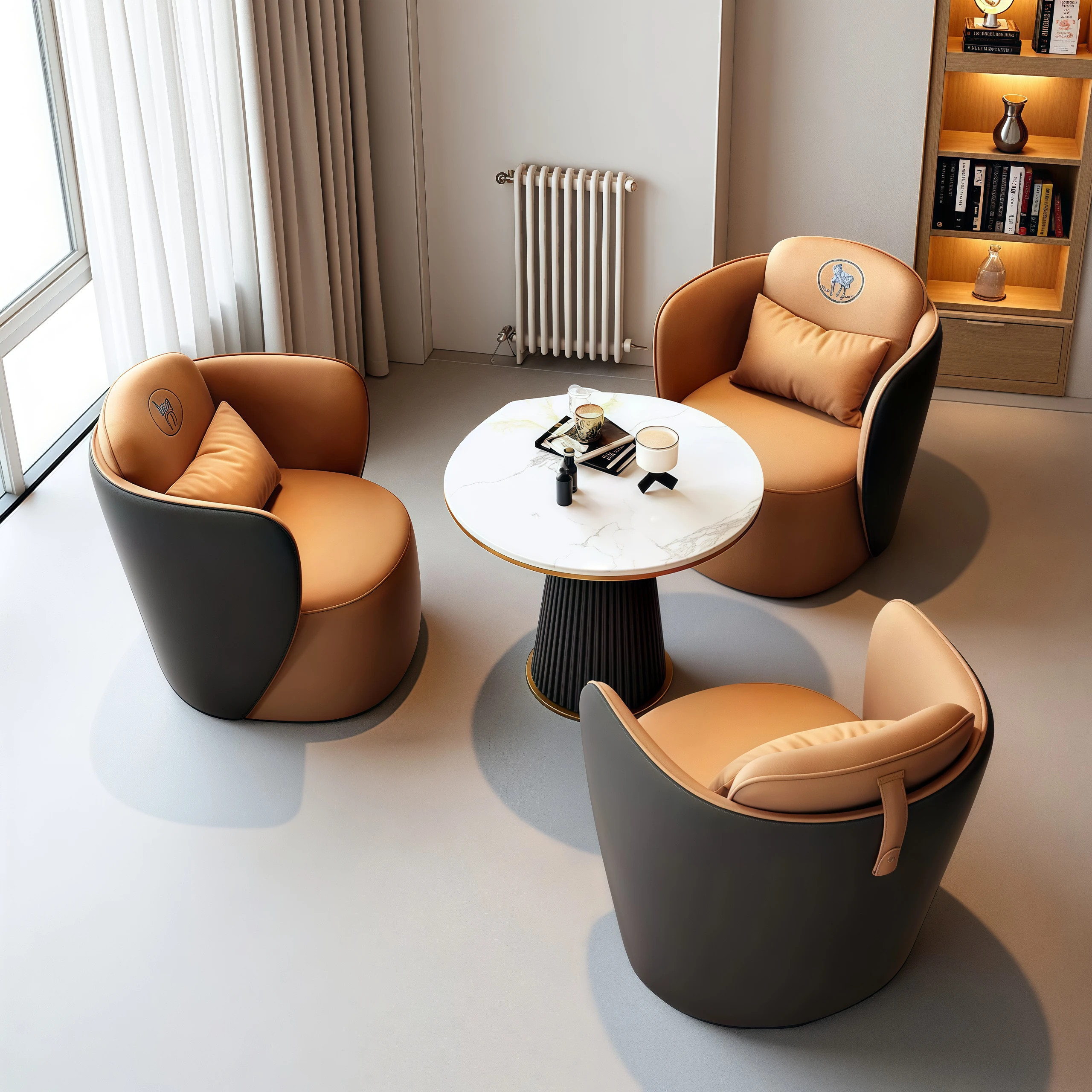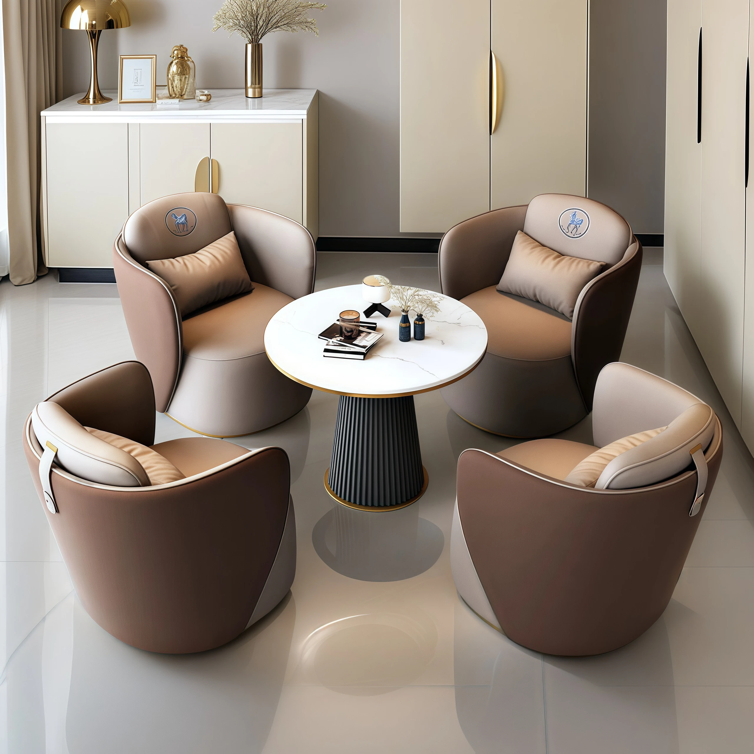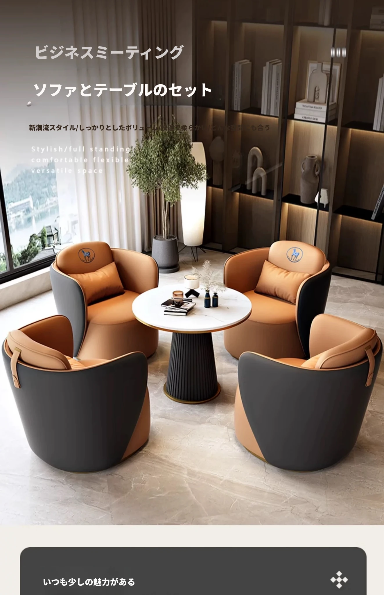 現代的なホテルロビーにぴったり!高級感あふれる接客ソファとテーブルセット、商談やミーティングに最適な一卓四椅子のコンビネーション。おしゃれで快適な空間を演出します!