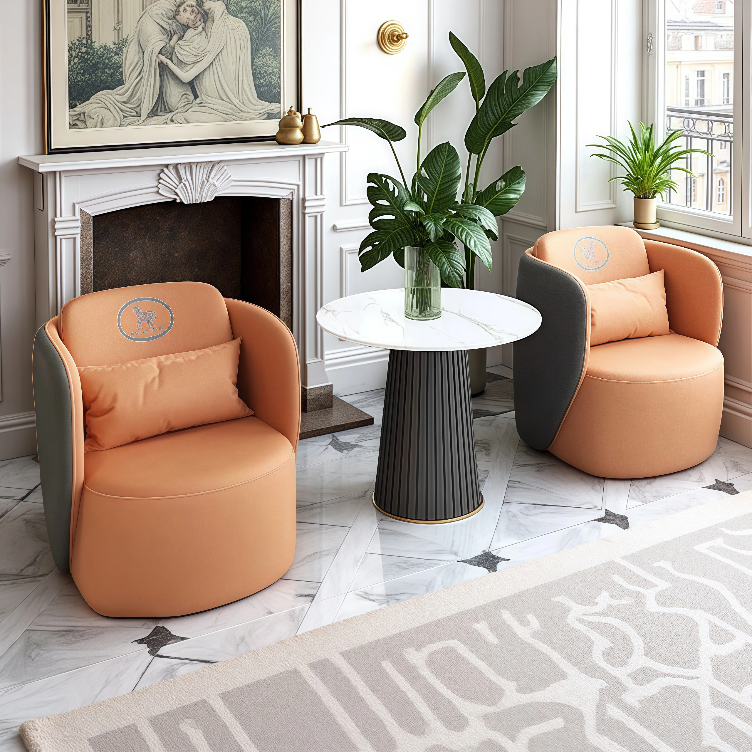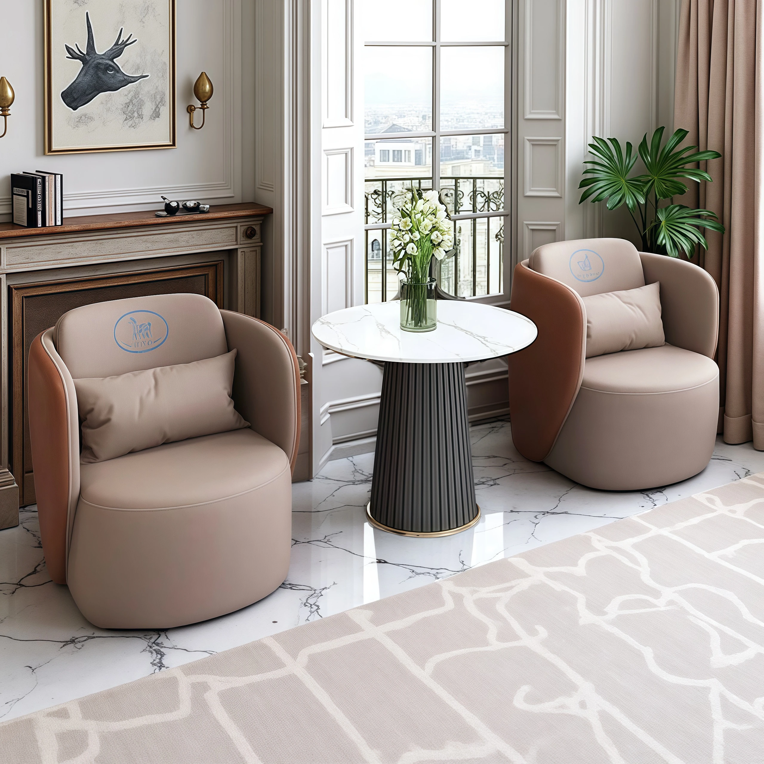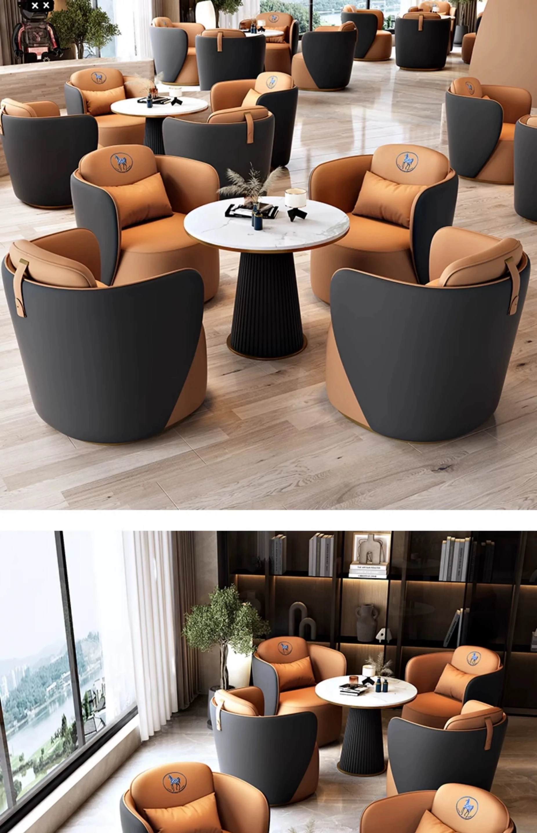 現代的なホテルロビーにぴったり!高級感あふれる接客ソファとテーブルセット、商談やミーティングに最適な一卓四椅子のコンビネーション。おしゃれで快適な空間を演出します!