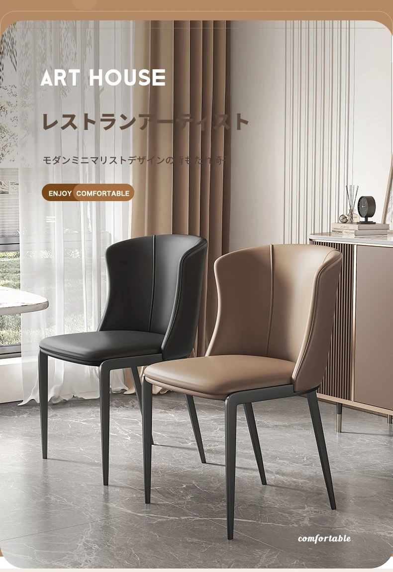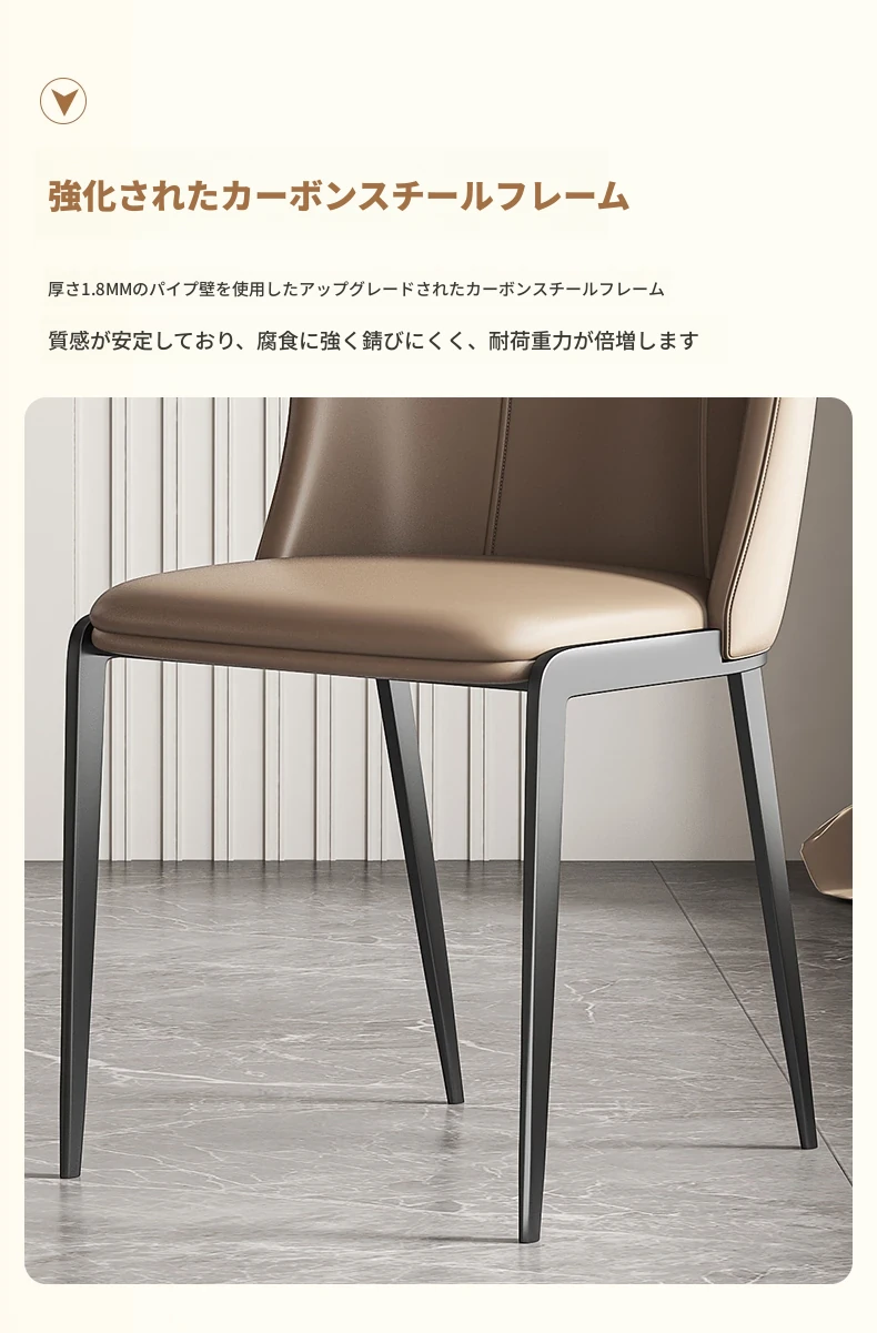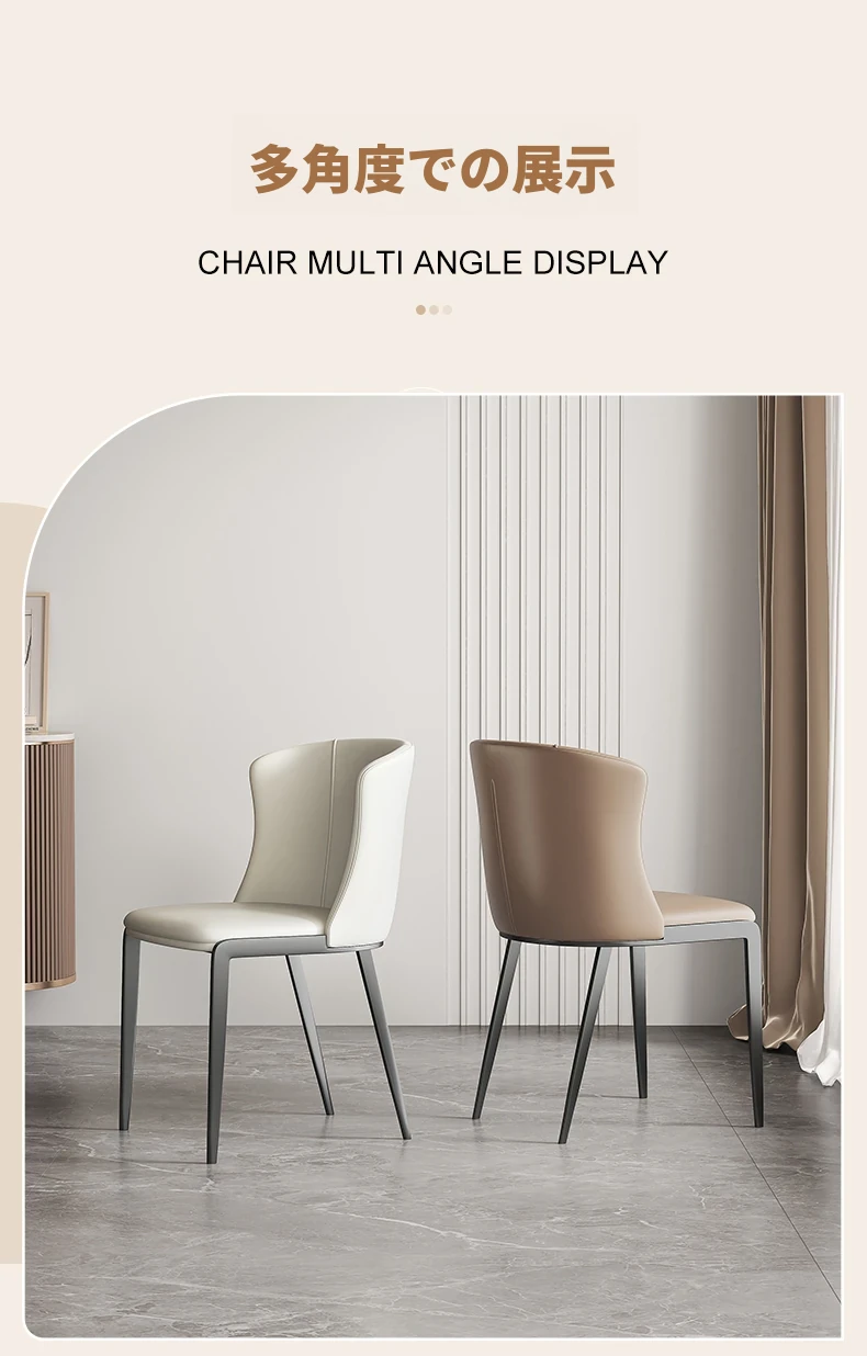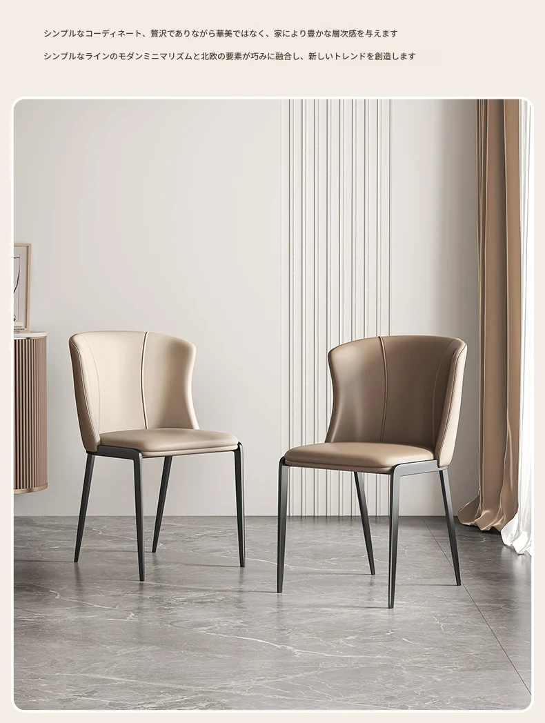 シンプルでモダンなデザインのダイニングチェア|家庭用高級レザーソフトパック|イタリアンミニマリズムの背もたれ椅子|優雅さと快適さを兼ね備えた、理想的な食卓のパートナー!
