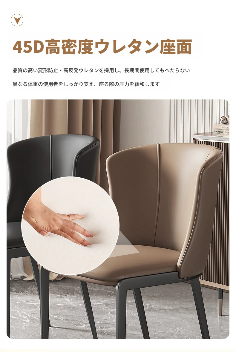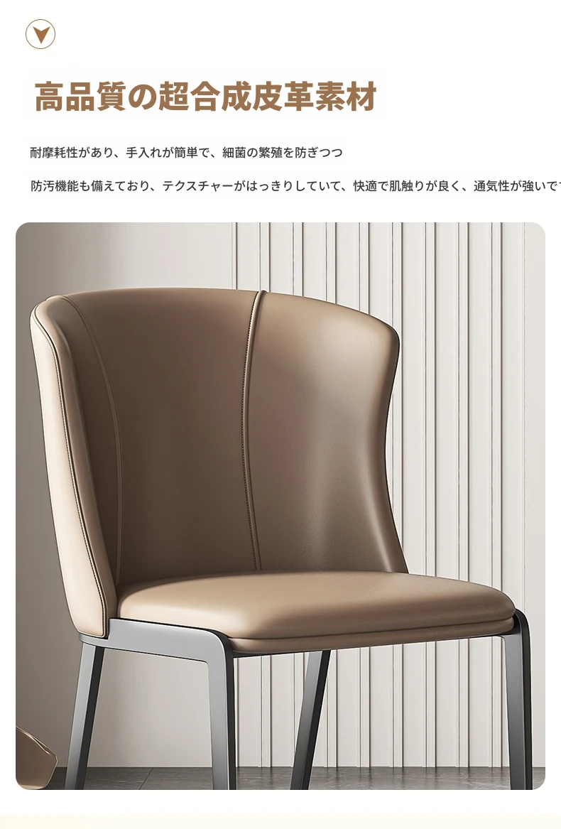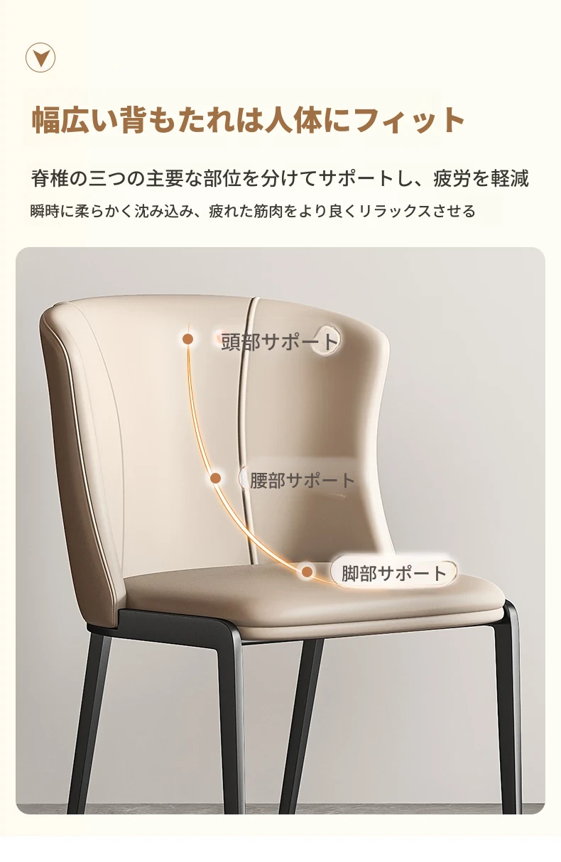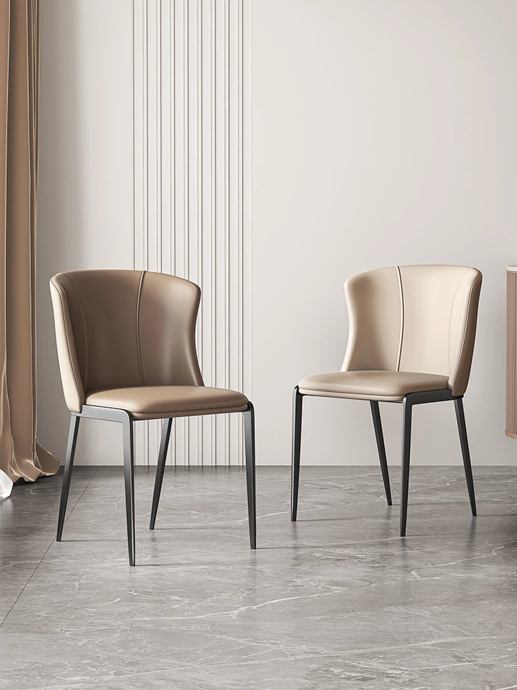 シンプルでモダンなデザインのダイニングチェア|家庭用高級レザーソフトパック|イタリアンミニマリズムの背もたれ椅子|優雅さと快適さを兼ね備えた、理想的な食卓のパートナー!