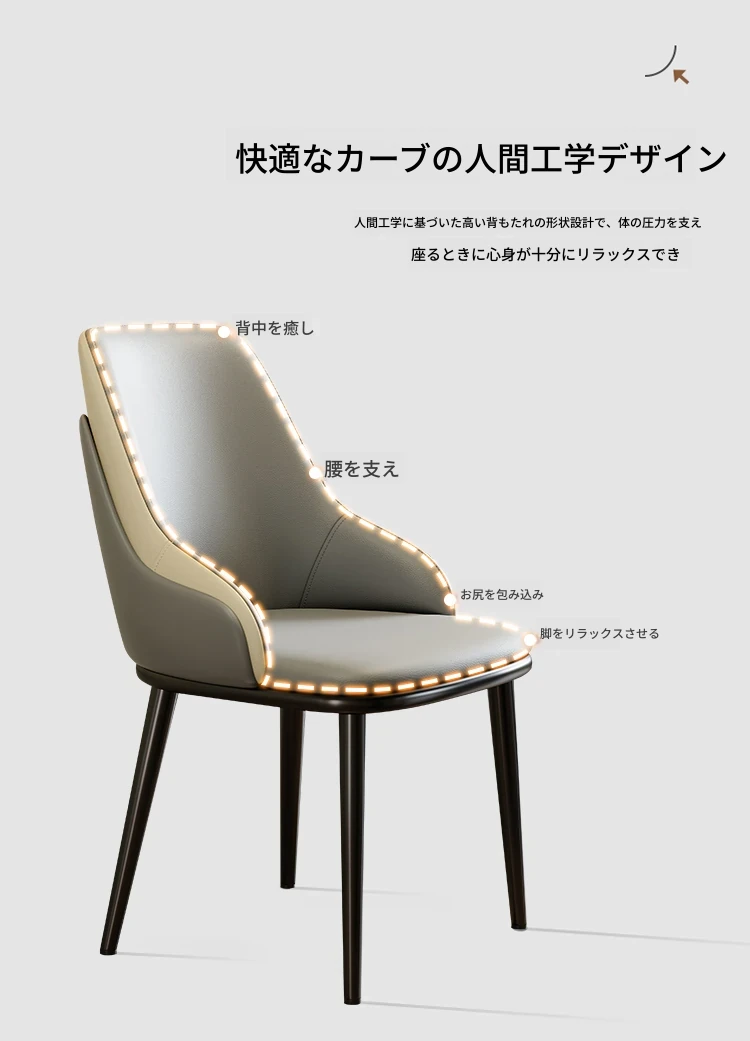 現代的シンプルで洗練されたデザインのダイニングチェア|高級感溢れるイタリアンスタイル|家庭用・ホテル用にも最適|2025年モデルの背もたれ付きダイニングチェア!