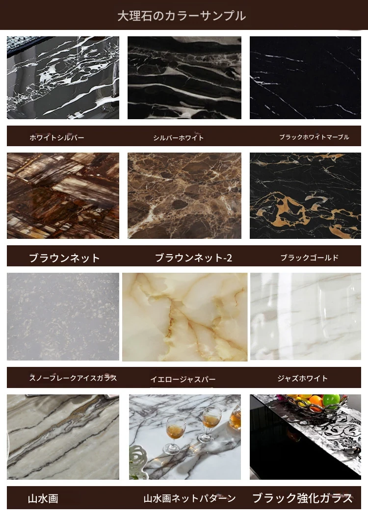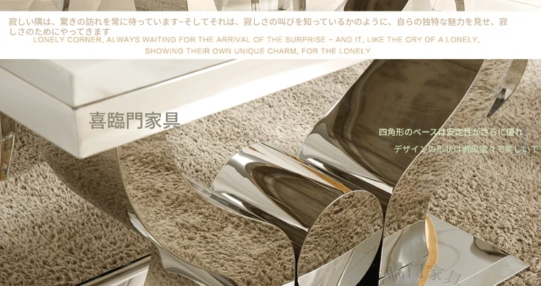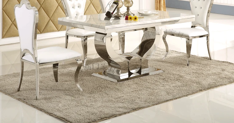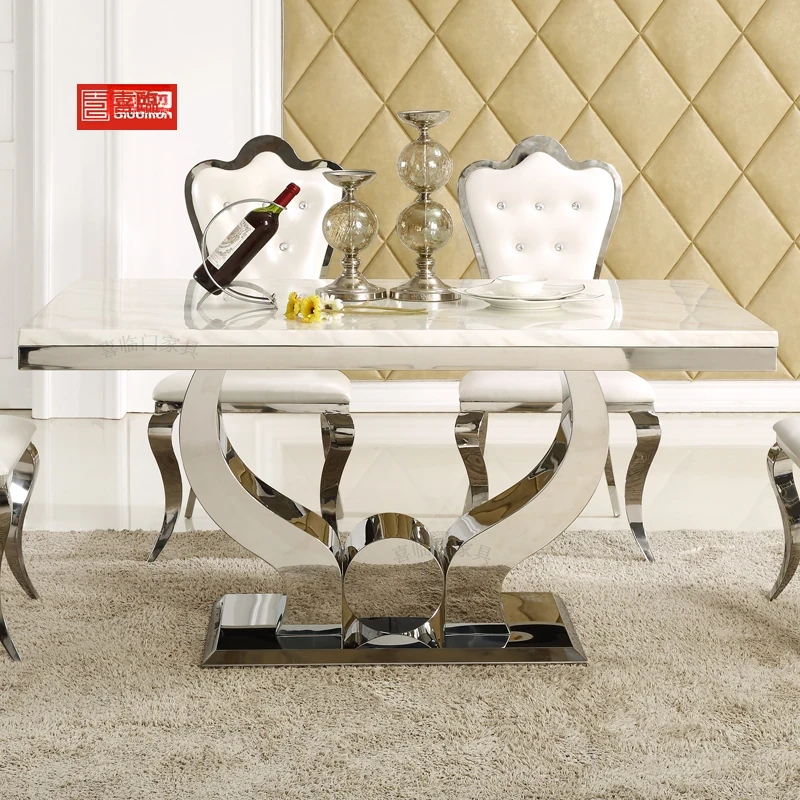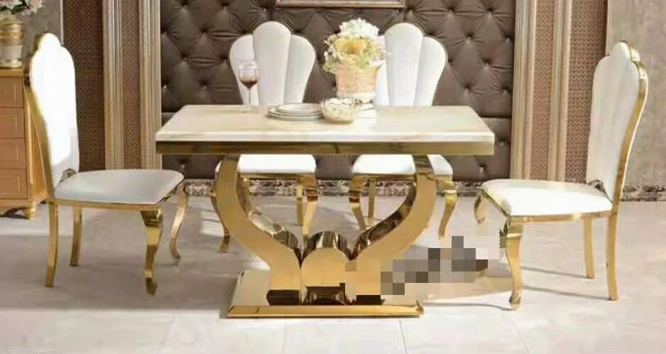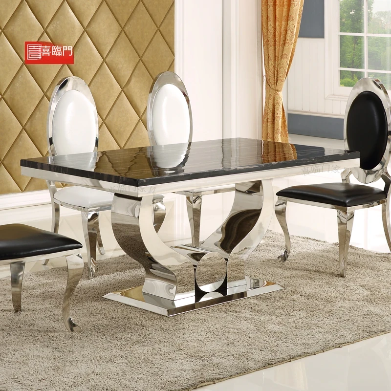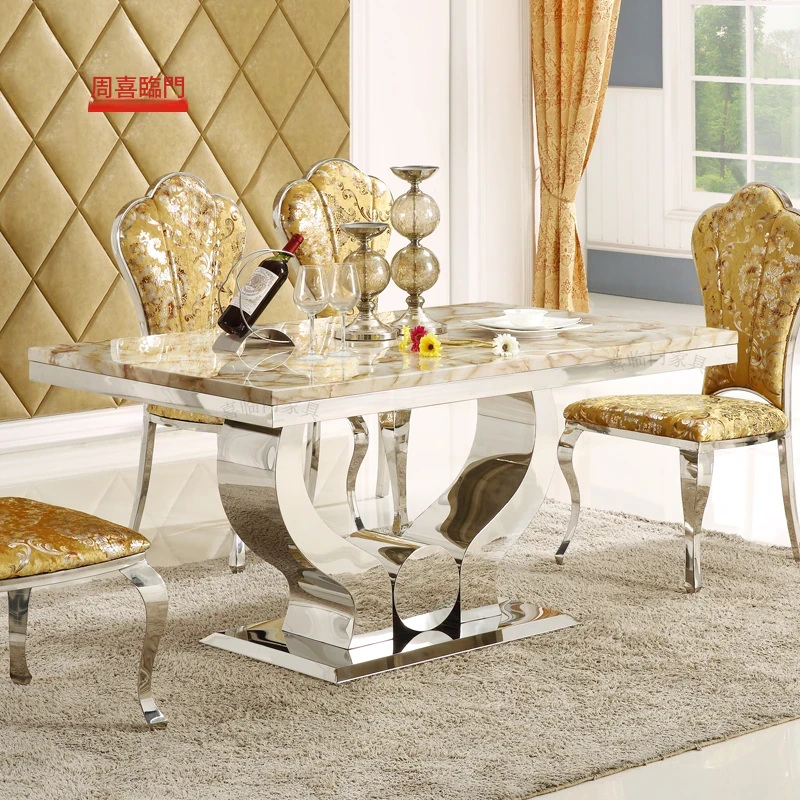 シンプルでモダンな大理石の長方形ダイニングテーブルセット - 6人・4人用、ホテルや家庭にぴったり!北欧スタイルのステンレス製、食事が楽しくなるデザイン!