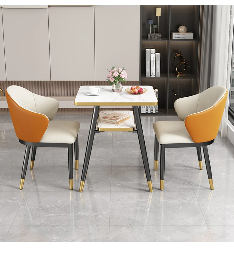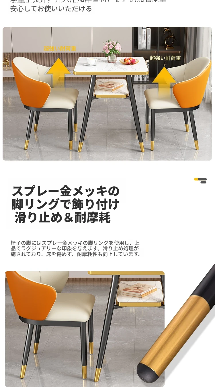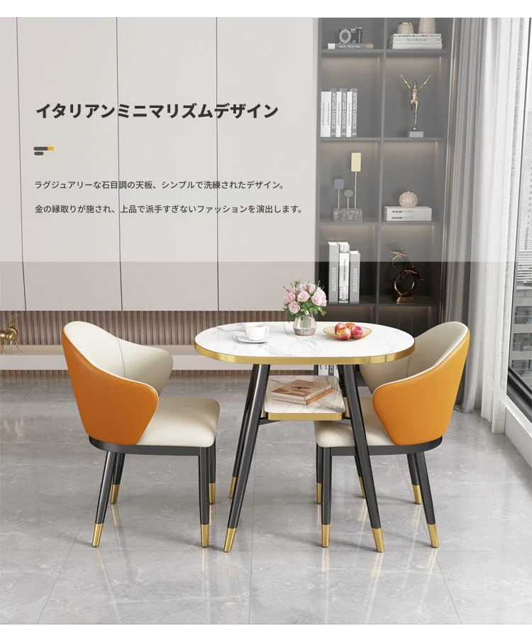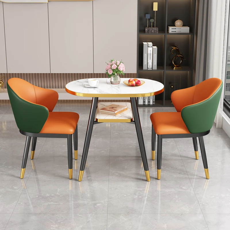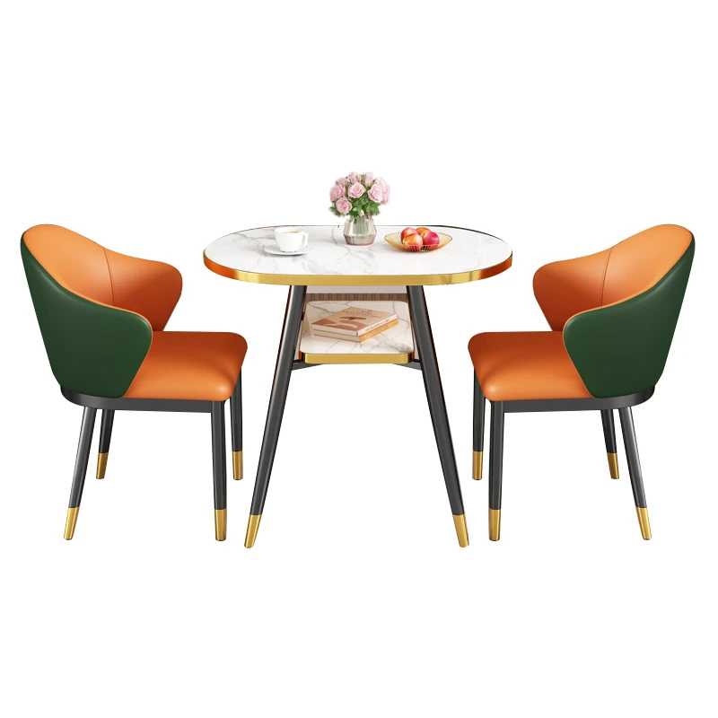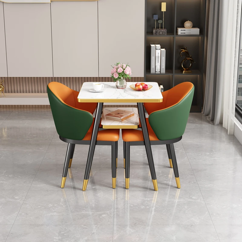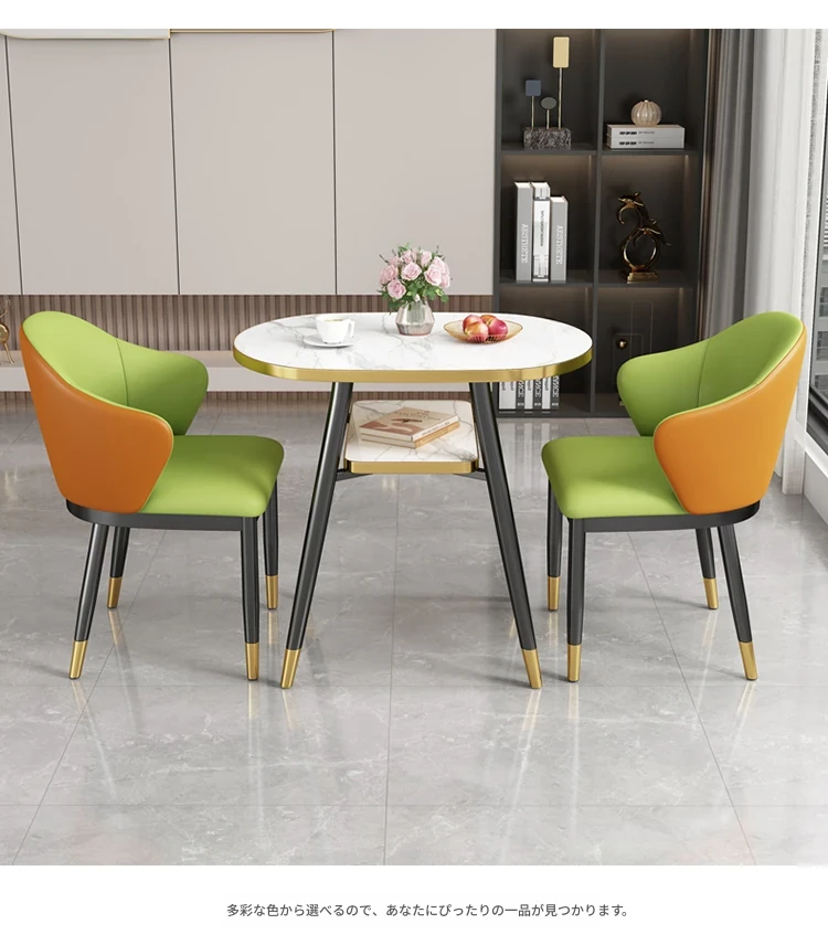 グリーンオレンジ 80*60 岩板テーブル + 2 レザー椅子