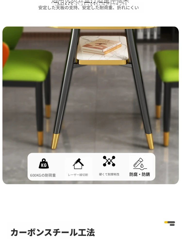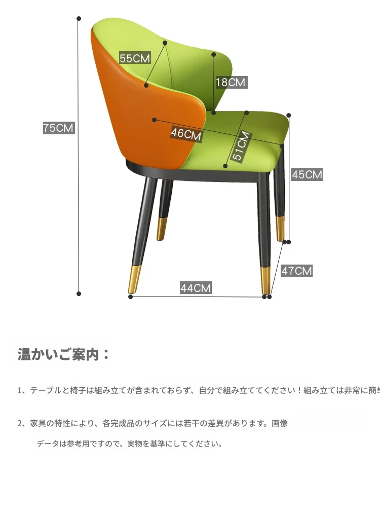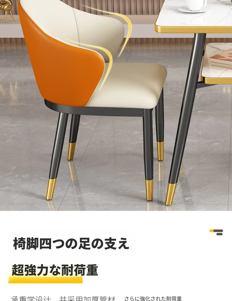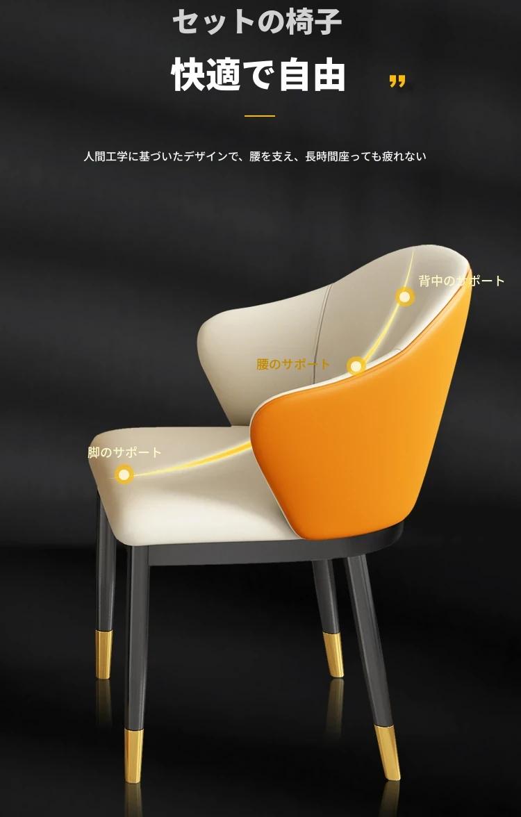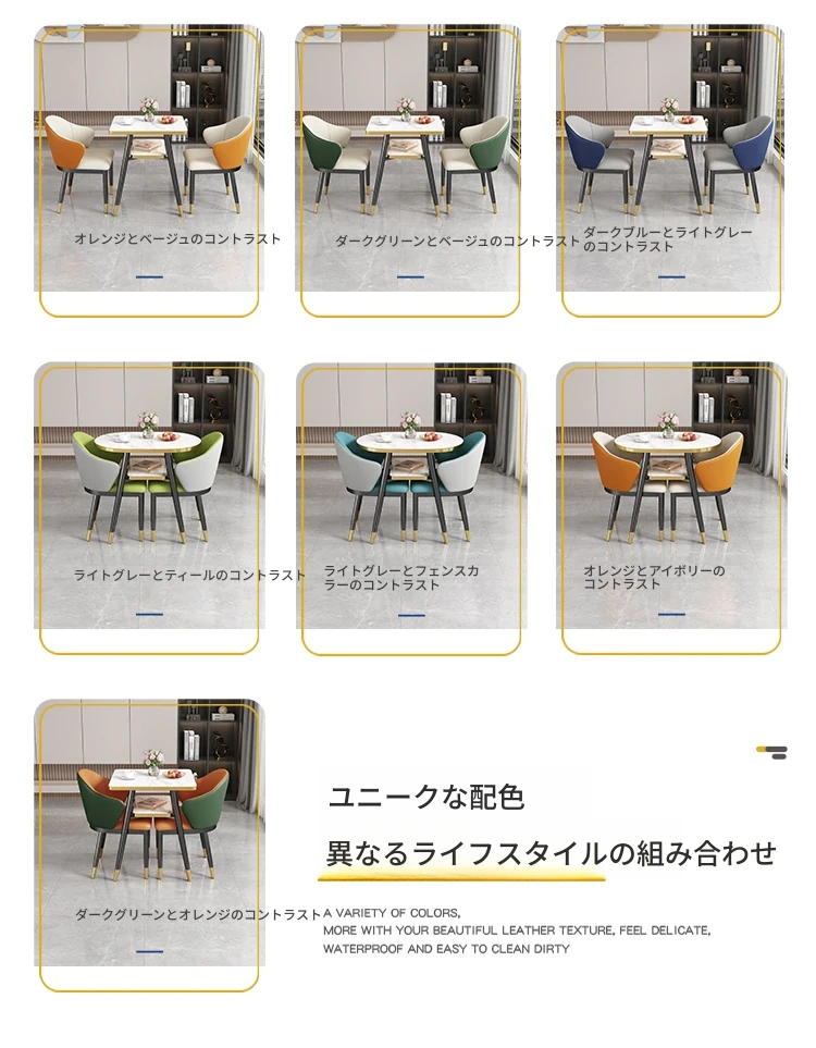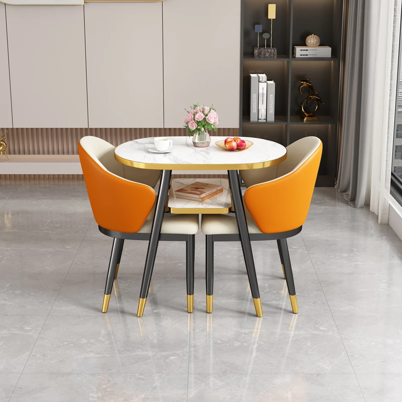 グリーンオレンジ 80*60 岩板テーブル + 2 レザー椅子