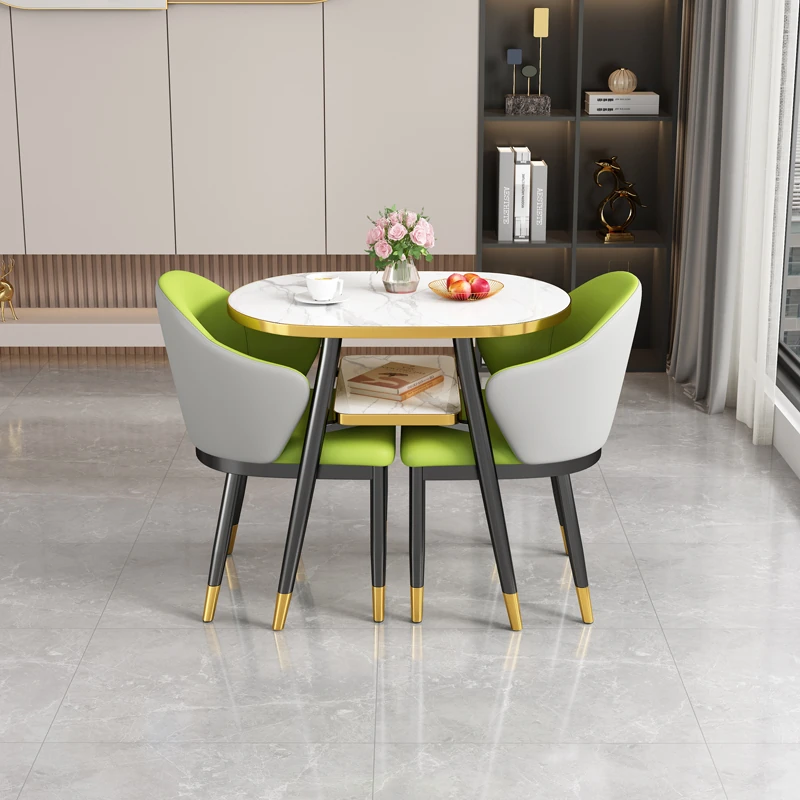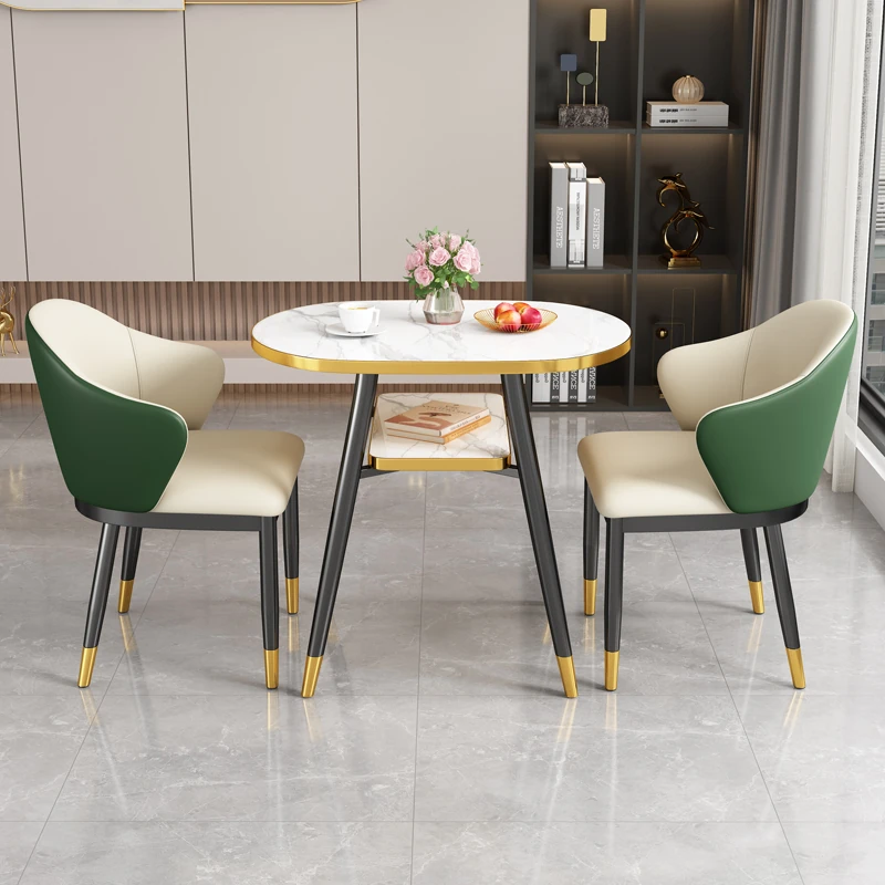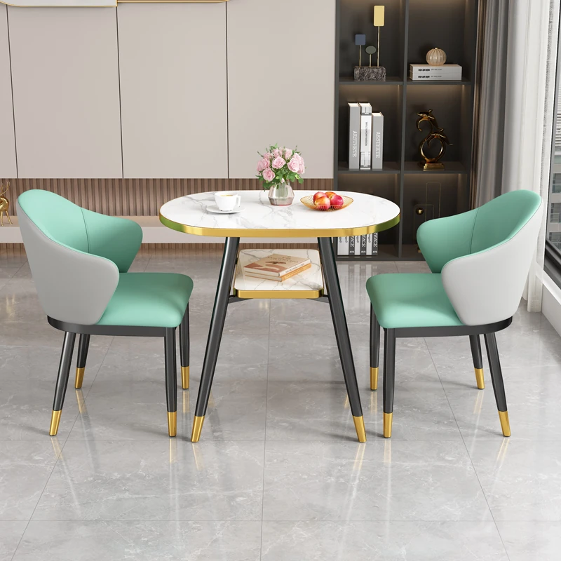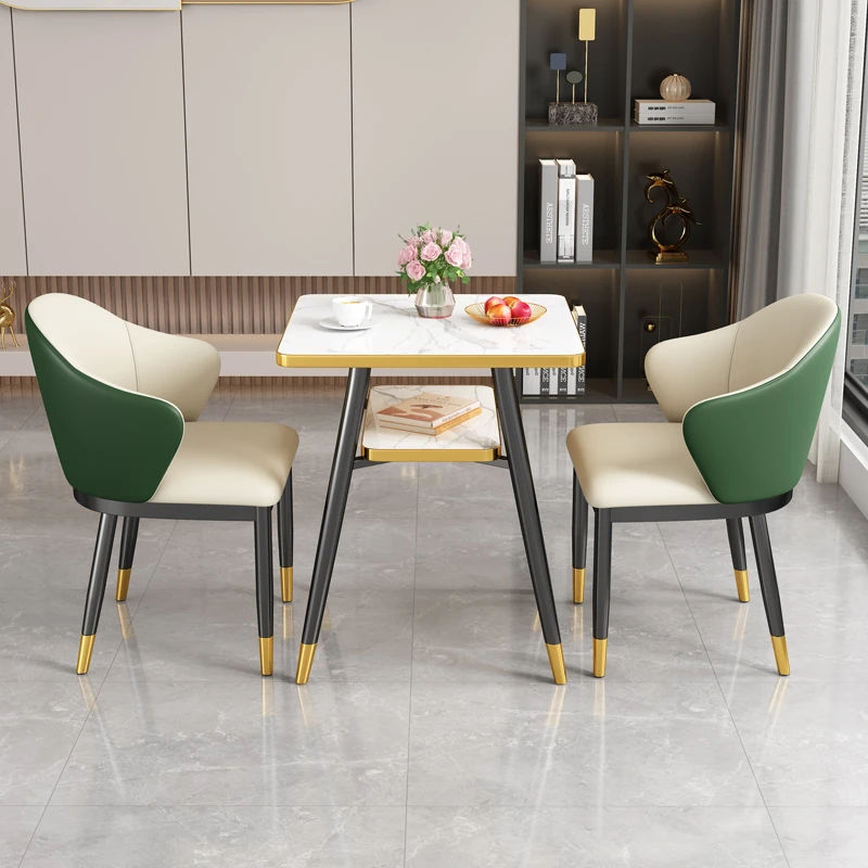 グリーンミント 80*60 岩板テーブル + 2 レザー椅子