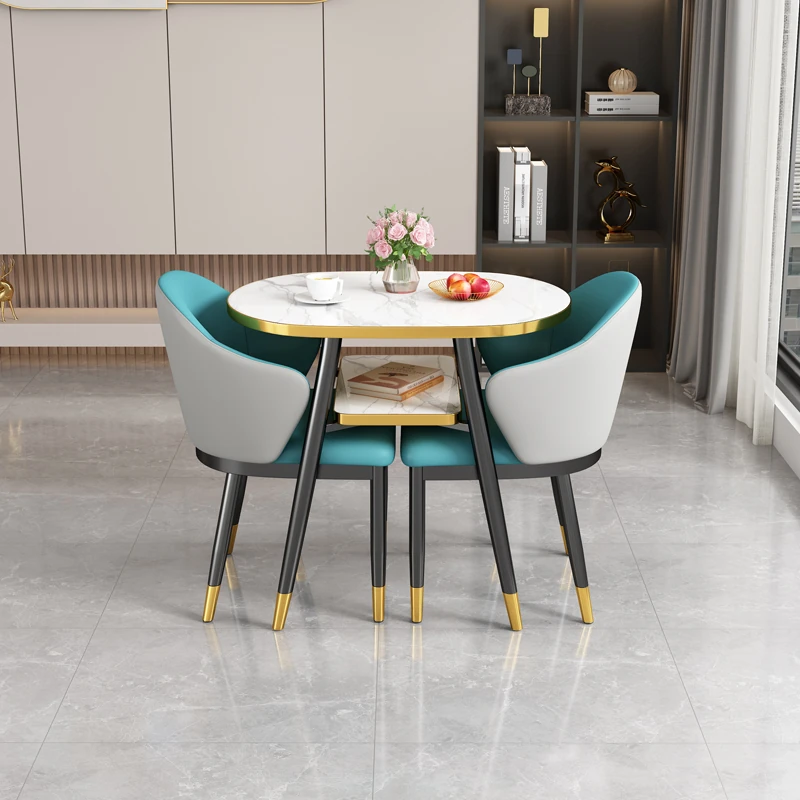 グレー湖ブルー 80*60 岩板テーブル + 2 レザー椅子
