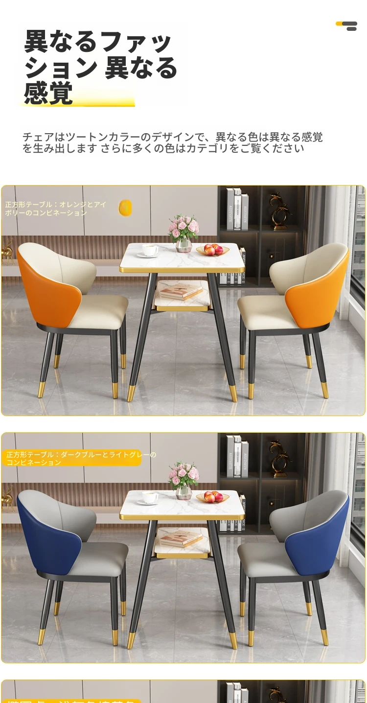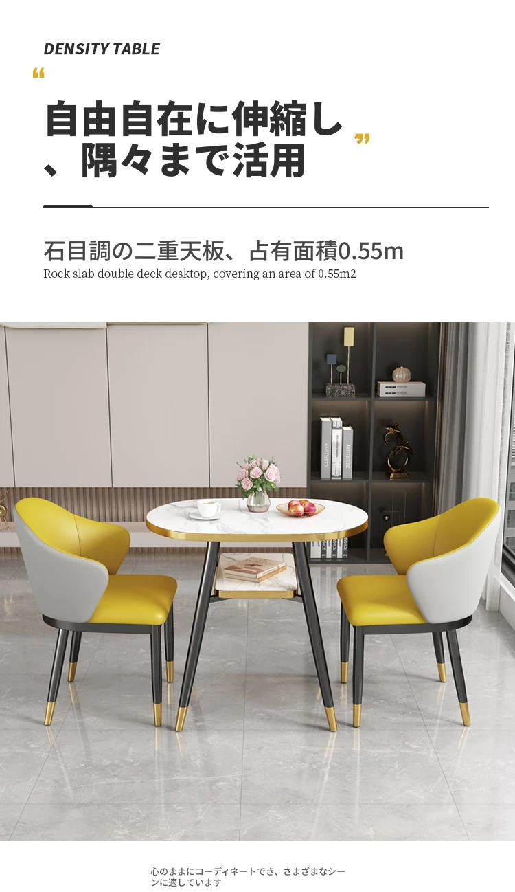 グレーイエロー 80*60 岩板テーブル + 2 レザー椅子